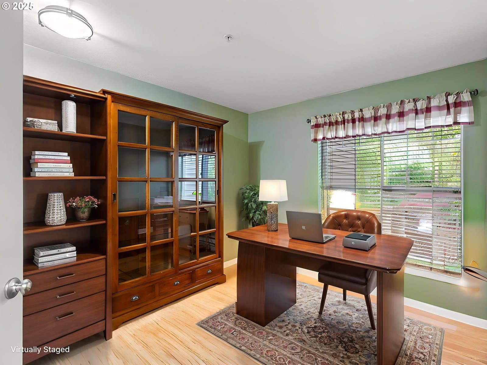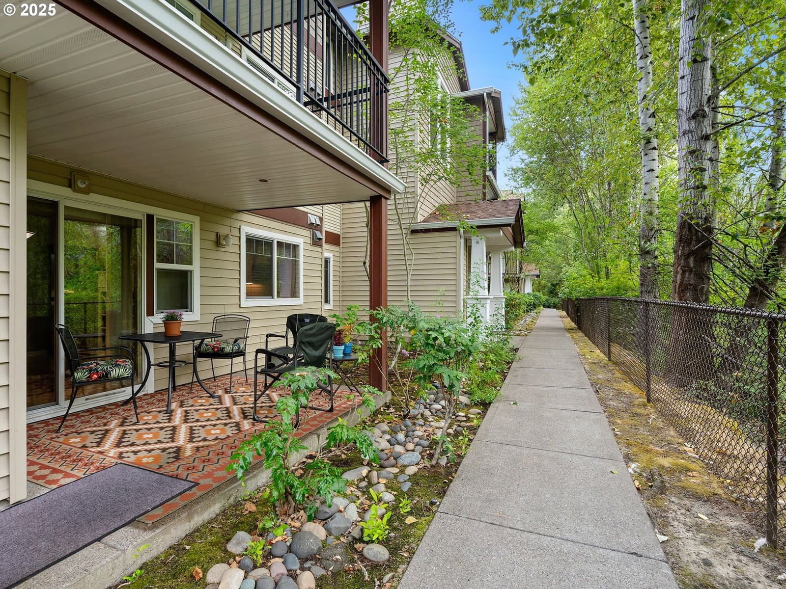 OPEN SAT 1/31 12-2PM! This elegant, original model home at the Crossings at Tansbourne Condos is beckoning you home! The kitchen features all newer stainless-steel appliances, ceramic tile countertops, deep sink, under-cabinet lighting, and an eating bar peninsula. Bamboo floors connect the open concept layout great room (kitchen/dining/living). Electric fireplace, recently serviced heaters, and wall A/C units keep the home cozy year-round. Garage with additional parking space in front. The primary bedroom suite has a double closet and a soothing refinished garden tub. The flexible second bedroom is privately located away from the primary. Spacious hallway bathroom has nice shower surround. New light fixtures, custom blinds, and indoor sprinkler for safety. Large covered patio has deep storage closet with shelving. Rare nature view of wooded area with paths and a peaceful bridge leading to a picturesque neighborhood. One-level first-story unit is great for wheelchair accessibility. New roof, no pet restrictions. Washer, dryer, and main appliances included. HOA pays for water, sewer, garbage, and exterior maintenance. Close to Tanasbourne shopping, MAX, TriMet bus lines 47, 52, 59, and all Beaverton has to offer! Check Matterport 3-D Tour!!