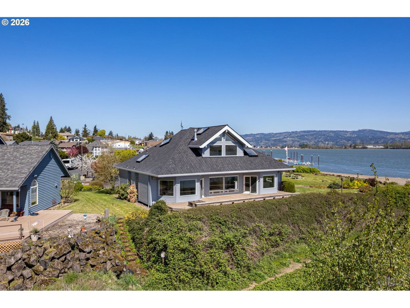 Some homes have an address. This one has a history.Built in 1992 by the family who designed River Club Estates itself, this home has been in one family's care from the day it was finished until today. They knew every lot in the subdivision, they drew the plans, and they chose this one. Thirty-two years later, it is easy to see why. Set on the Columbia River with private beach access & walking trail access to Dalton Lake directly from the property, this 2,420 square foot open beam home was designed for exactly where it sits. The great room & open kitchen flow together the way a riverfront home should, with the Columbia framing the windows at every turn. A butler's pantry off the main kitchen functions as a full second workspace — extra prep space, additional storage, and real capacity when the home is full. The primary bedroom with fireplace, & deck access makes it a room designed to begin & end every day on the water. The home offers generous bedrooms, two full bathrooms, & one-half bath. Tucked above the great room, the open loft overlooks the living space & straight to the river — a perch that feels both connected to the home & quietly apart from it. Built-ins line the walls, & a Murphy bed keeps guests well accommodated without sacrificing the room's purpose. For the buyer who works from home most of the week and makes the short drive into Portland on Fridays, this is the kind of dedicated space that changes how a home truly works — productive by day, flexible by night, the river always in view. A new 50-year roof, fresh interior and exterior paint, & new flooring throughout mean the important work is already done.What cannot be overstated is the land. There are no remaining vacant riverfront lots in Columbia City where This position on the Columbia River, the beach, the trails, the views,is not something that comes available again. Most riverfront homes offer a view. This one offers eagles, sea lions, salmon, and ships — a living river, right outside your door.