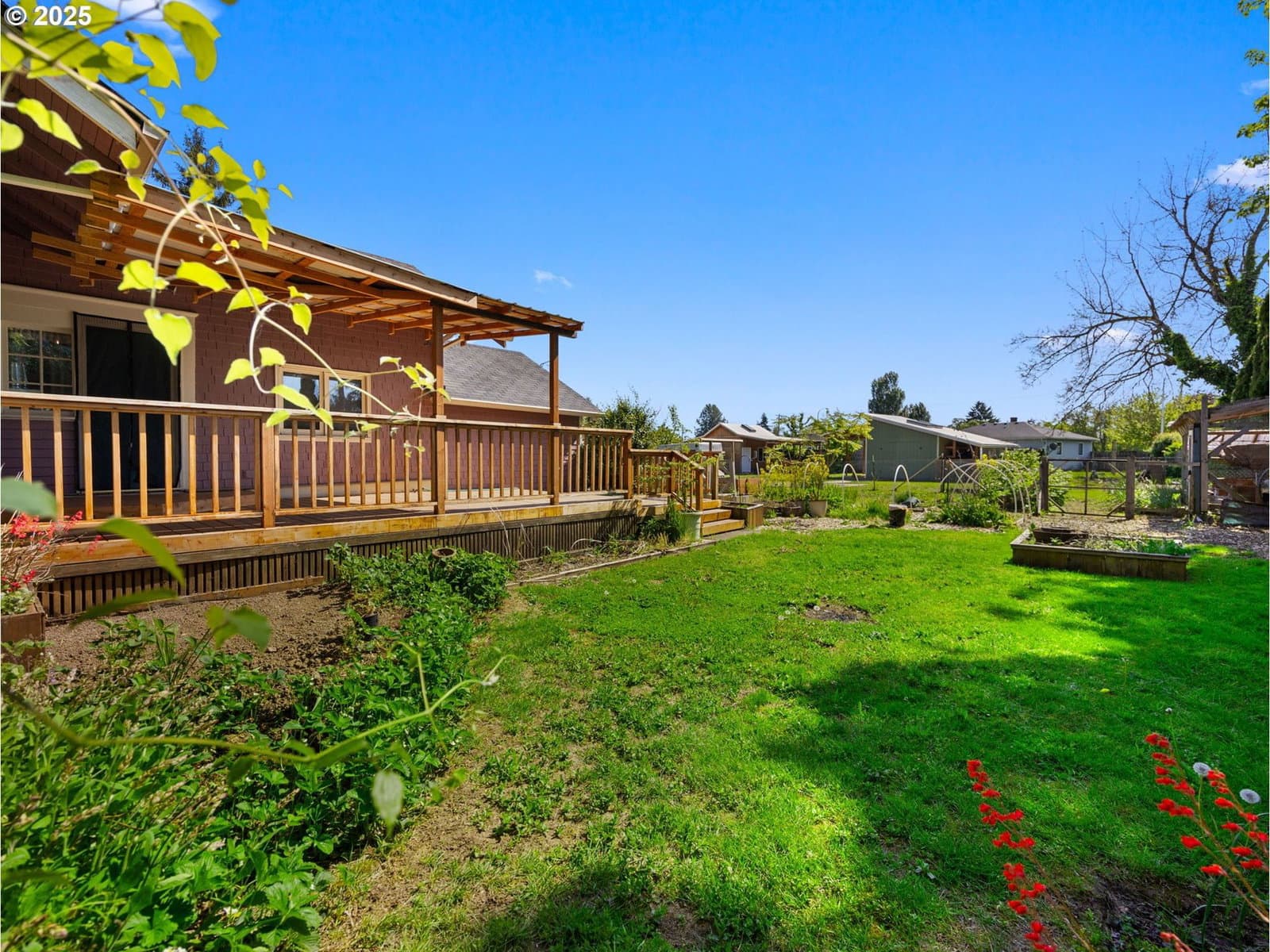 Step onto the wide covered porch of this classic 1913 Craftsman in Woodburn’s historic district and discover timeless charm blended with smart updates. Original wood floors, built-ins, and a pass-through from the kitchen to the living room add warmth and functionality, while a secret upstairs room offers a fun twist. The 4-bedroom, 1.1-bath layout includes a half bath off the primary, skylight, solar tubes, and ceiling fan for year-round comfort. Mature landscaping surrounds both covered and uncovered portions of the expansive deck—ideal for entertaining or relaxing.