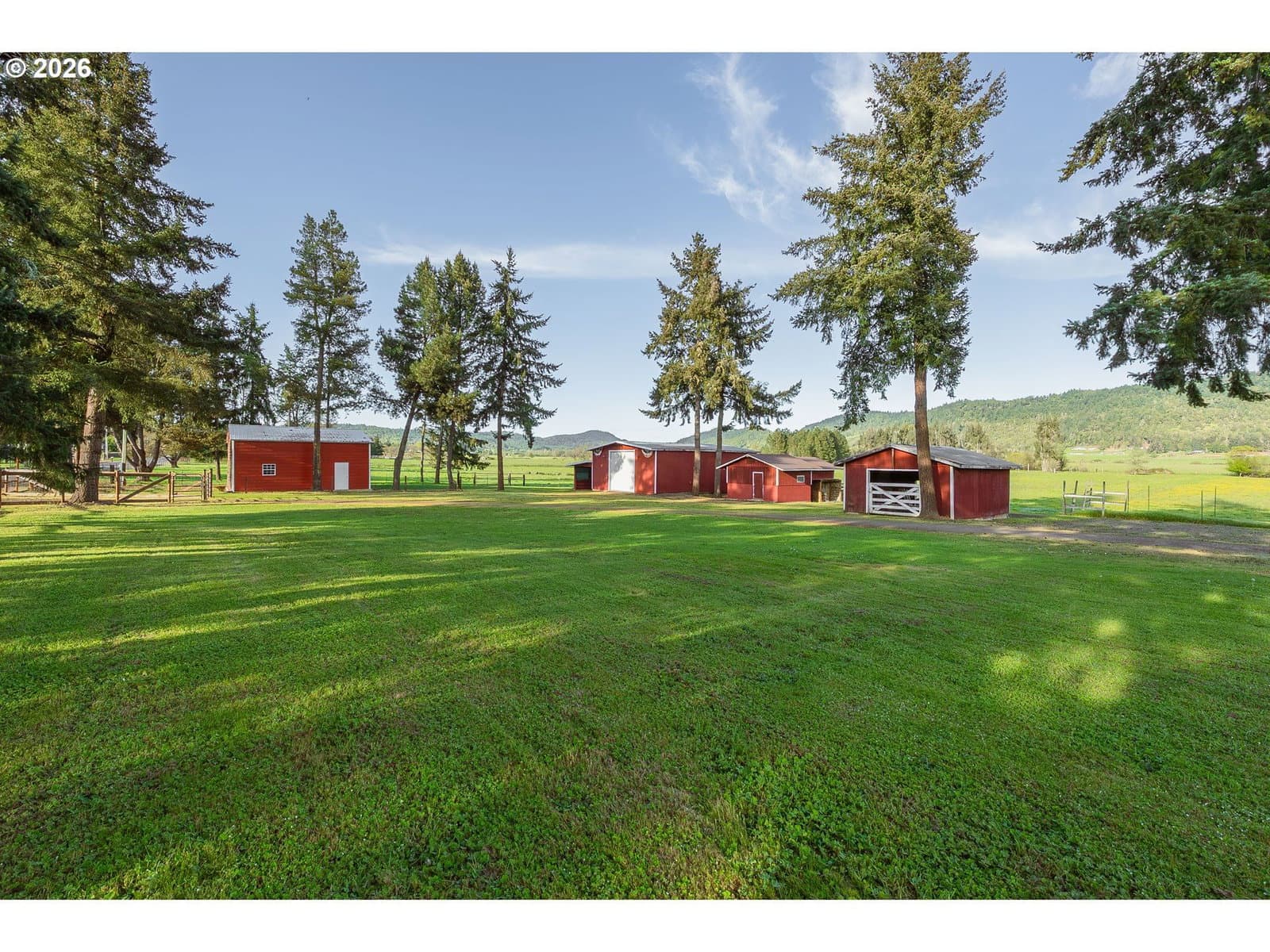 Ranch-style home on almost 17 acres in the desirable Lookingglass area with a pond, shops, and usable land! This property has everything you need in one beautiful place. Inside, the single-level home features a split-bedroom design, built-ins, and ample storage throughout. The kitchen is equipped with stainless steel appliances (including a gas range) and offers plenty of counter space, while the dining area connects to a rustic walk-in pantry and additional cooler storage space that is rare to find. The primary suite includes double sinks, a shower, and access to its own private covered deck. The living room is open and comfortable with a pellet stove and slider to the back deck, creating an easy connection to the outdoors. A spacious laundry room gives you extra room to work with, and the covered entry makes everyday coming and going easy. Outside, the land is set up for a variety of uses with pasture space, fencing, a pond, and multiple outbuildings, including two large shops and additional storage areas. The 3-car garage offers a large upper-level space with flexibility for an office, game room, or bonus area, ready for your finishing touches. Country living at its finest! Shown by appointment only.