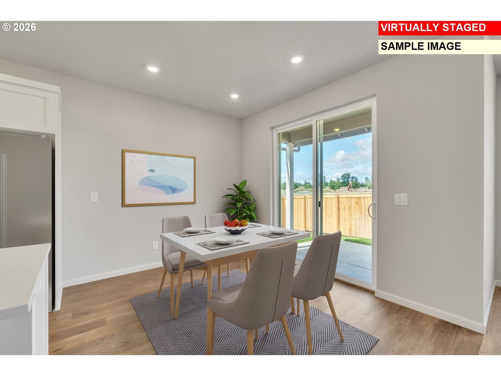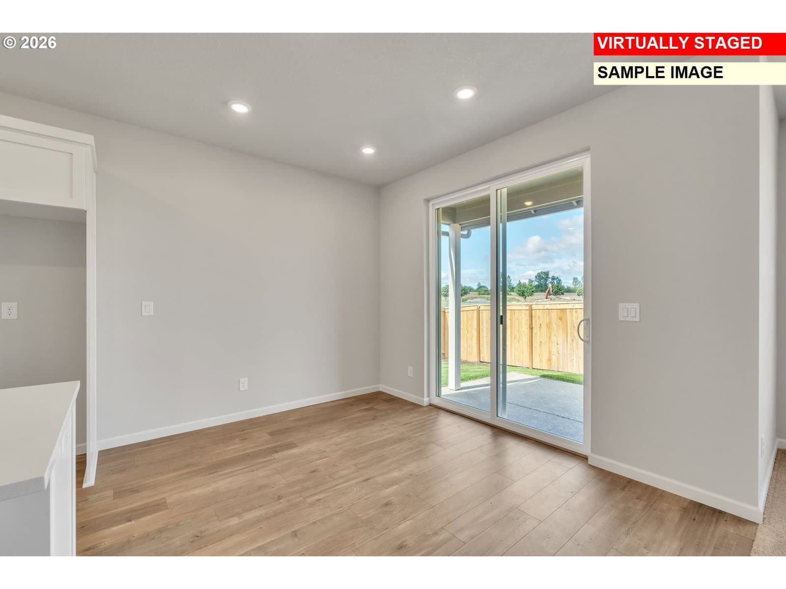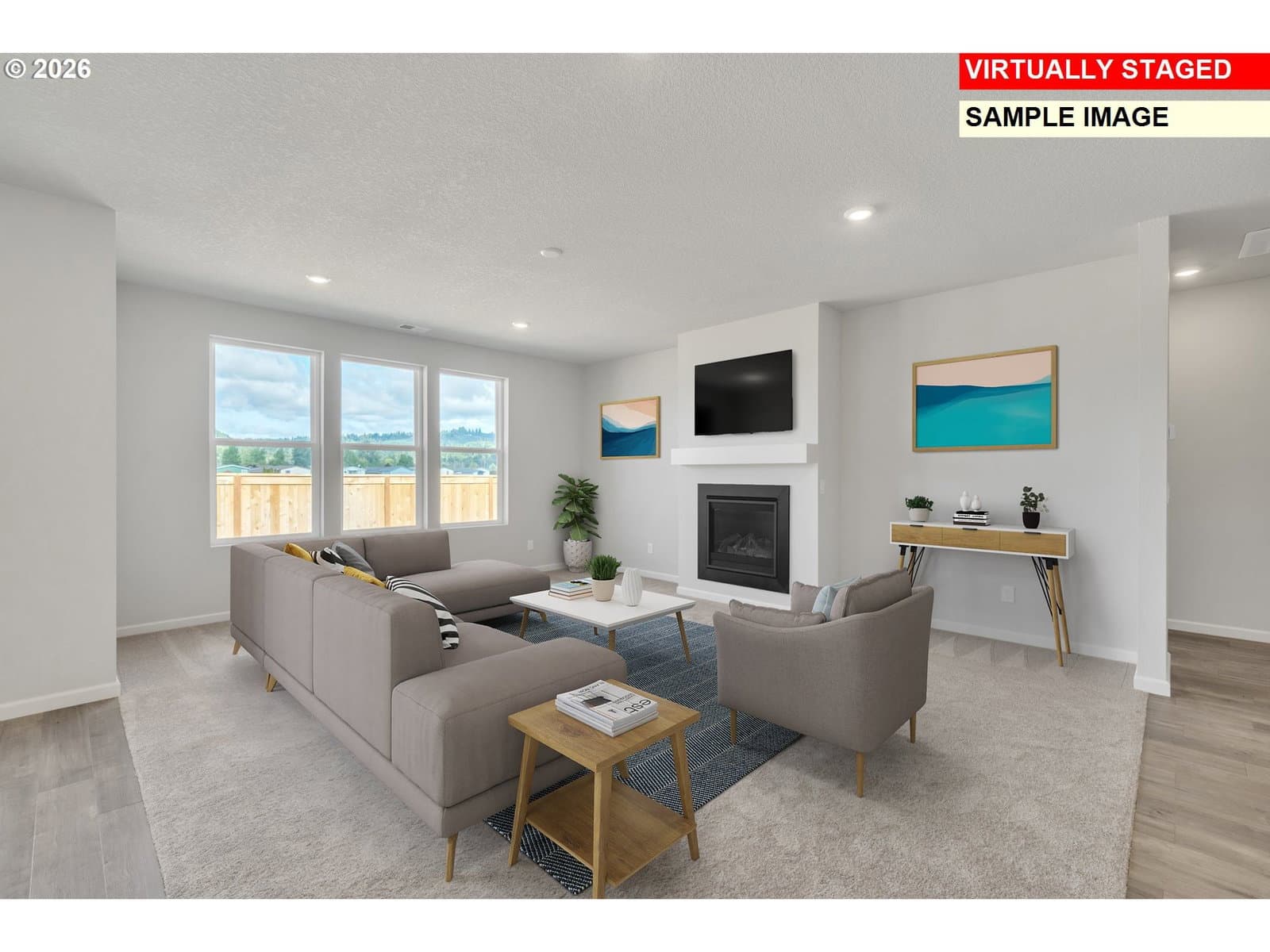 This new construction home is part of Brandis Estates, a community surrounded by greenspace with walking trails and close to local parks and shopping. The Elmhurst plan is a single-level design featuring an open great room that connects the kitchen and dining area, extending outdoors to a patio with a fully fenced and landscaped backyard. All three bedrooms surround the living space, including a well-appointed primary suite with a private bathroom and walk-in closet. Set on a cul-de-sac homesite, this home also offers a three-car garage for added storage and convenience. Interior highlights include quartz countertops, Shaker-style cabinets, and a gas fireplace. Other upgraded premium features include a separate tub and shower in the primary bath and two-tone interior paint. This home also includes central air conditioning, a refrigerator, washer and dryer, and blinds—all at no extra cost! Located on homesite 14, this home is currently being used as the Welcome Home Center, so the garage has not yet been converted. Photos are of a similar home, features and finishes will vary. Flex credit/closing cost incentive available when financing with preferred lender! Use towards rate buydown and closing costs.