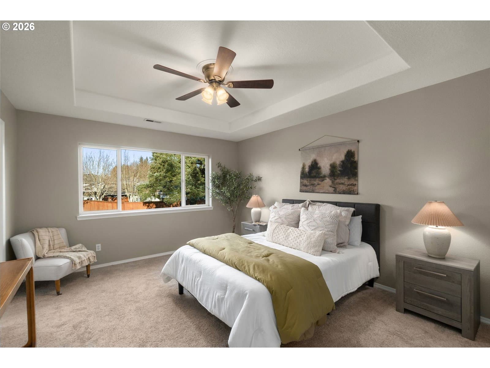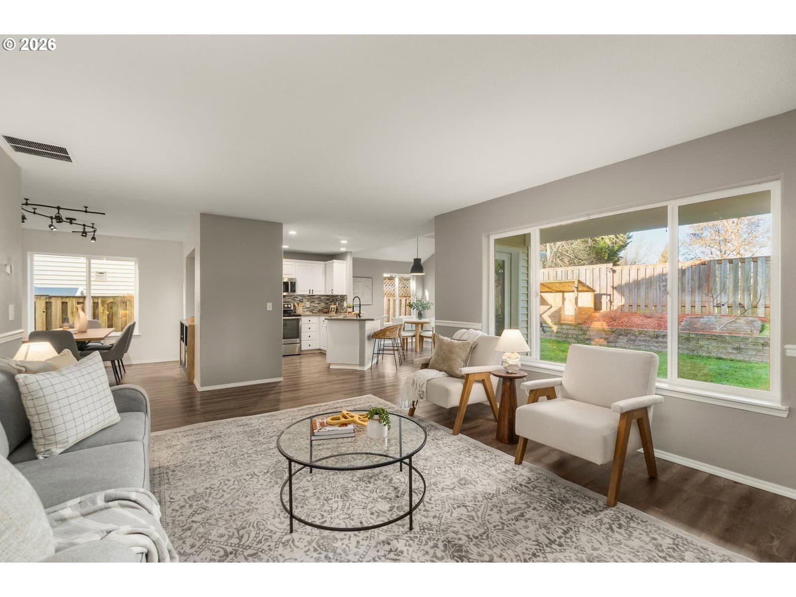 Move in ready and well maintained in the highly sought after Jackson School neighborhood, this home offers recent major system updates and a functional layout for everyday living. The main level features luxury vinyl plank flooring throughout, a dedicated office with built-in desk and storage, and a formal dining space with built in cabinetry. A spacious living room with gas fireplace flows seamlessly into the kitchen, while an adjacent vaulted dining nook offers flexible use as a sitting area or secondary living space. Thoughtful built in features and plenty of storage space throughout the house. The primary suite is a peaceful retreat with a walk in closet, double sink vanity, and walk in shower. The upper level also includes a laundry room, a full hallway bathroom, and three additional bedrooms offering flexibility for guests, family, or work from home needs. The fully fenced backyard features raised garden bed and a covered patio, backing to peaceful greenspace and a walking path, with a private gate offering direct access to outdoor trails while maintaining a sense of privacy and connection to the neighborhood. Recent Home Updates include: New roof 2023, New Furnace 2026 and New back gutters 2026. All kitchen appliances, washer and dryer included! Enjoy access to exceptional community amenities including two swimming pools, a clubhouse, newly renovated park with playground & tennis/pickleball courts and walking paths, creating a true neighborhood lifestyle. If you want a home that is dialed in and well cared for, this is it! [Home Energy Score = 4. HES Report at https://rpt.greenbuildingregistry.com/hes/OR10243844] The community offers trails and walking paths, a nature park, two swimming pools, tennis courts, a schoolhouse-style clubhouse, and year-round events including Easter egg hunts, garage sales, summer programs, barbecues, and hayrides.