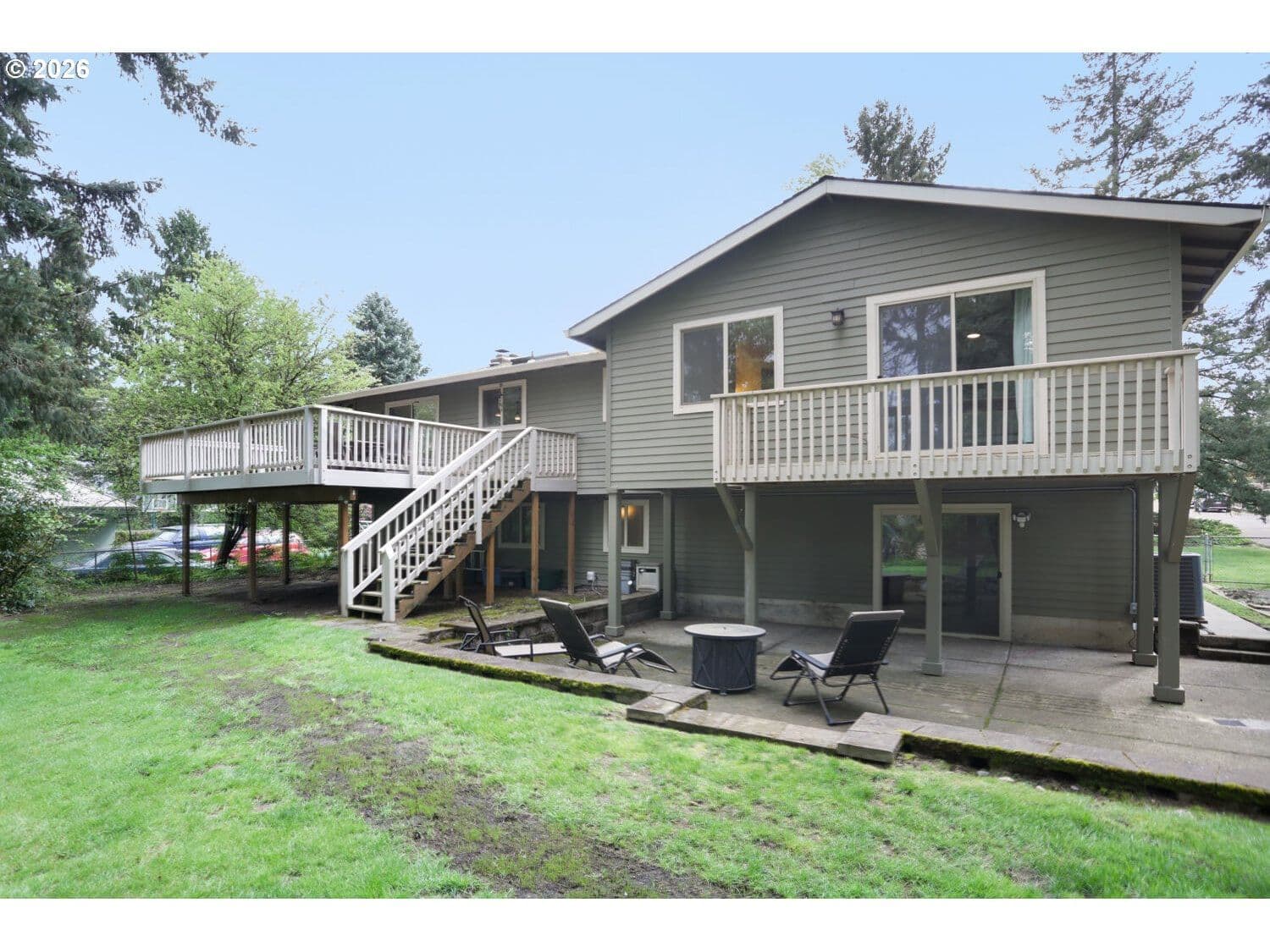 4days on marketLarge windows open to the serenity of this private .43 acre lot where the fawns wander through and bird songs welcome the new day. The home has been beautifully updated and maintained, and major systems were replaced in the last 5 years: electrical panel, furnace, AC, water heater, water filtration in kitchen, deck, fridge, dishwasher, new 4" Cured in place "sewer" pipe liner with a 45-year warranty, and a 22kw Whole Home Generac generator plumbed in for peace of mind. Two living spaces offer family flexibility and privacy. Lower level: large game room with bar, family room with wood burning fireplace, dedicated laundry room, bedroom and full bath. Upper level: Primary with walk- in closet, ensuite bathroom with soaking tub and a view to this peaceful back yard, 2 additional bedrooms and full bath, family room with wodd burning fireplace, kitchen, and dining area. RV or boat parking, plus ample space for more vehicles. The neighborhood offers multiple parks, swimming pools (membership required), a nearby public boat launch on the Willamette River is located close to major expressways, downtown PDX, and shopping. If you are looking for serenity and convenience, this is it!