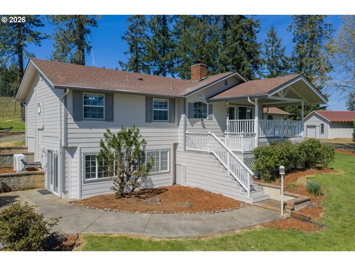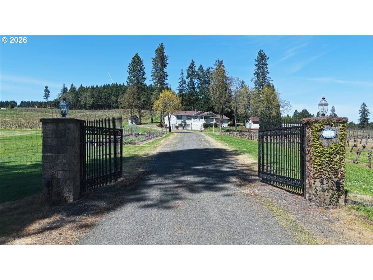 Absolutely stunning remodel on this beautiful home perched in the heart of a 30-acre vineyard, tucked at the end of a long gated private driveway. Enjoy sweeping views over mature Pinot Gris and Pinot Noir vines and the valley below. A peaceful, private setting perfect for entertaining and gatherings. This could be a great equestrian property with plenty of usable land for horses or your other critters. Ideal location with convenient access to both Eugene and Corvallis for your occasional urban needs. See Associated Documents for Important Details.