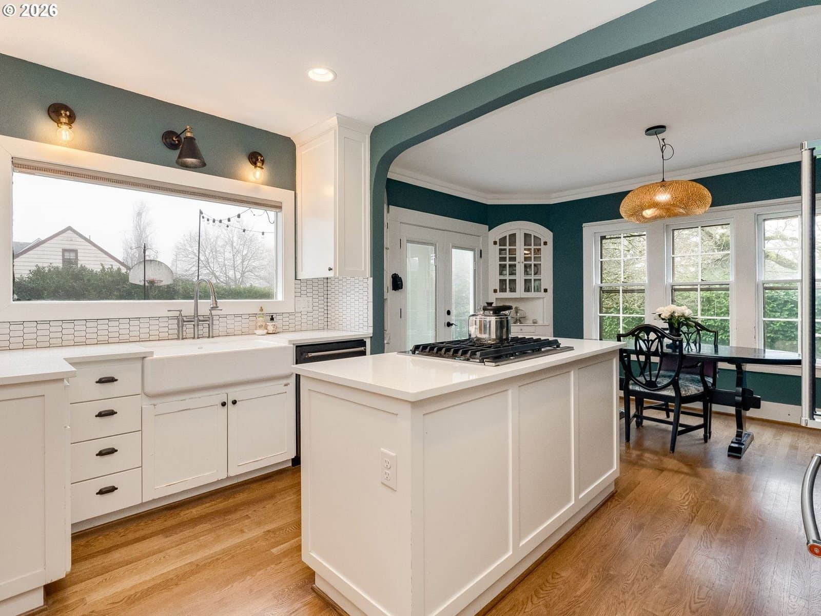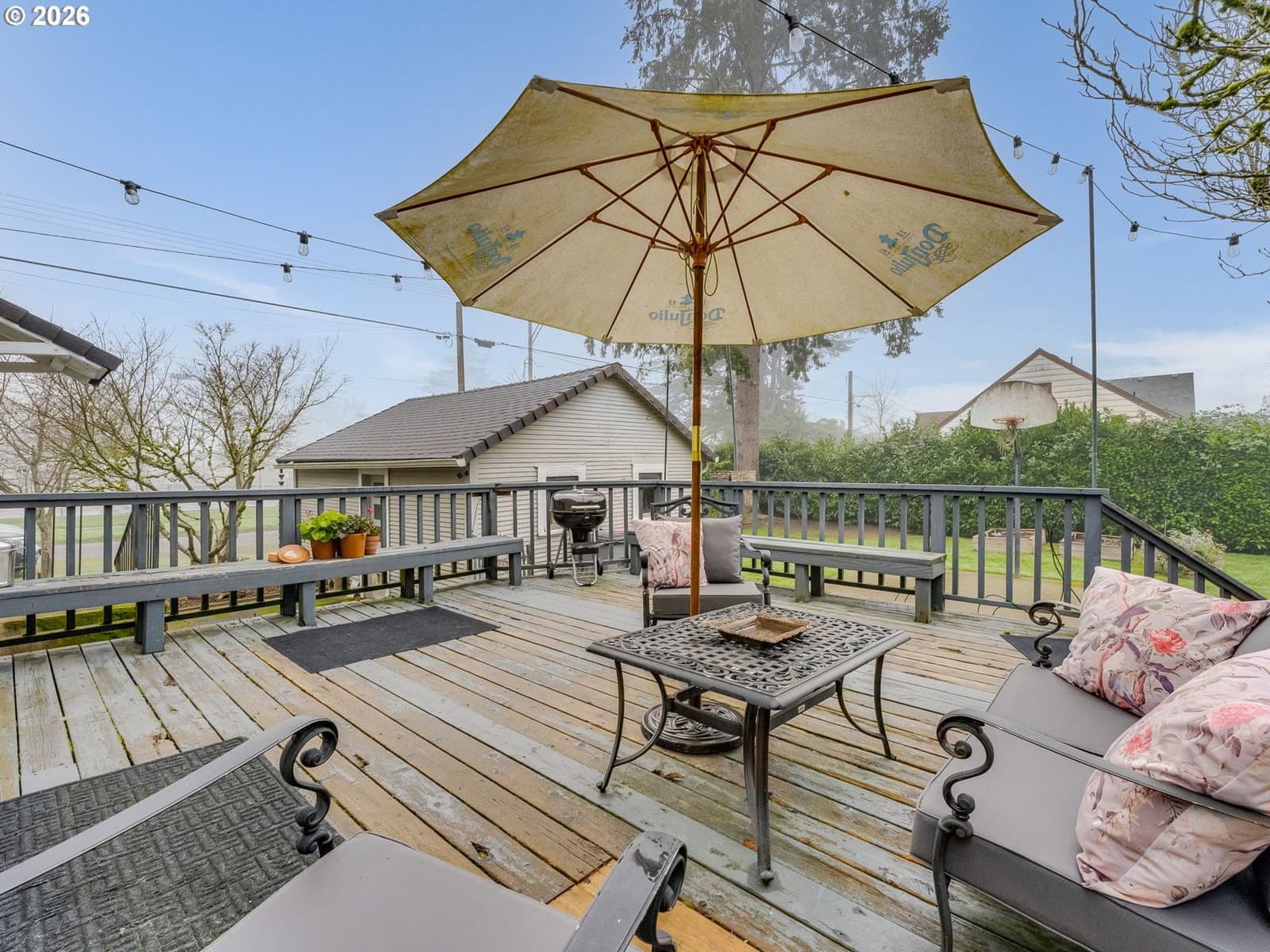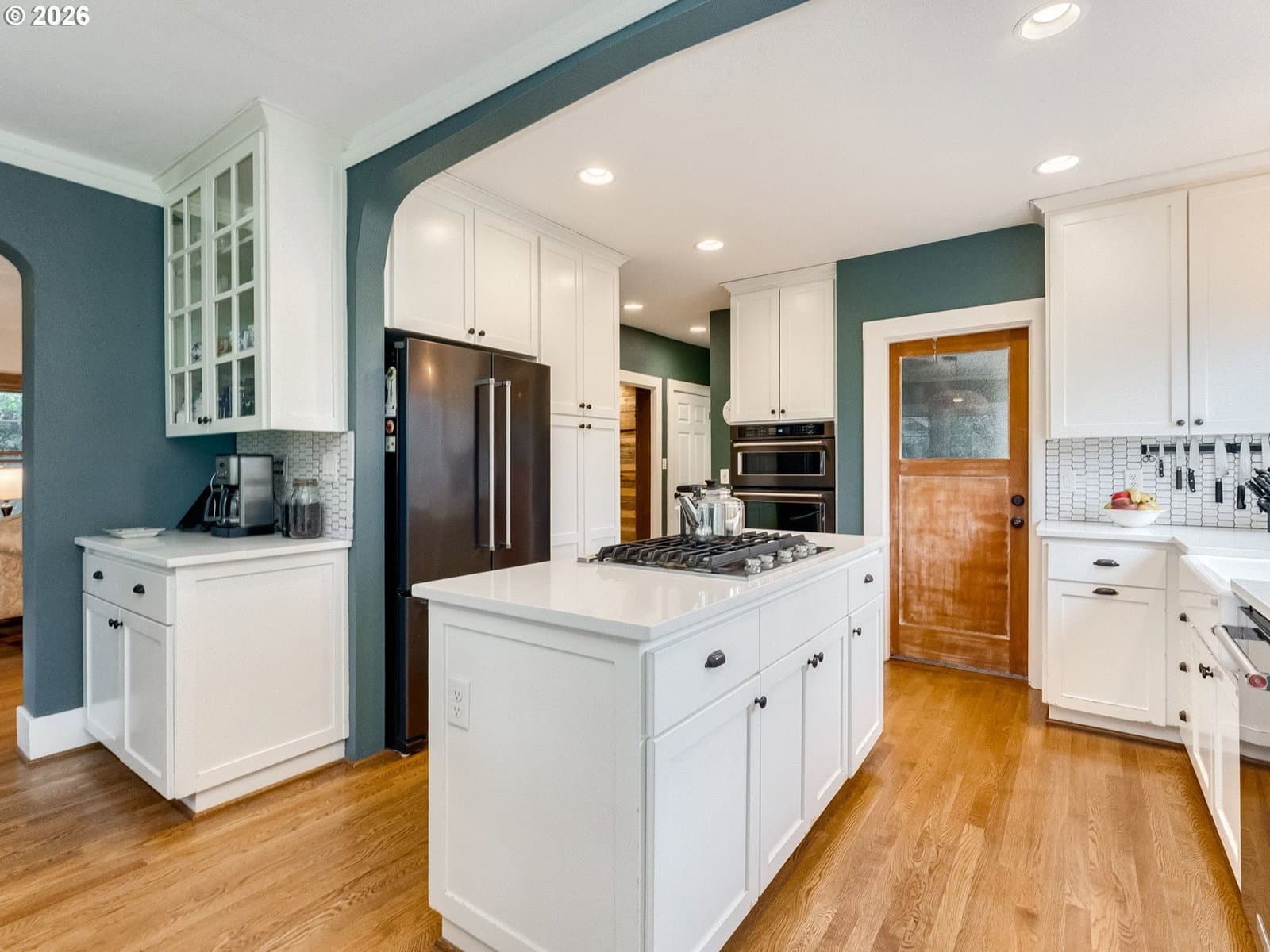 Step into timeless charm with modern comfort in this beautifully updated 1929 home, perfectly situated on a generous .28-acre lot just a short stroll from historic downtown McMinnville. From the moment you enter the charming front foyer, you’ll feel the warmth and character that make this home so special.The spacious living room is filled with natural light and features a cozy wood-burning fireplace, classic corner built-ins, and large windows that create an inviting gathering space. The remodeled chef’s kitchen and dining area are true showstoppers, blending vintage character with today’s style—complete with quartz countertops, a full subway tile backsplash, apron-front sink, KitchenAid black stainless appliances, a propane cooktop with downdraft in the island, abundant storage, and a delightful coffee bar. French doors open to an expansive deck and private backyard, offering endless room to relax, entertain, or garden.Convenience meets design with a laundry room located just off the kitchen. Upstairs, you’ll find a stunningly remodeled bathroom featuring a full tile shower with skylights, dual rain heads plus a shower head, a double cement vanity, built-ins, and tile flooring. Three generously sized bedrooms with wood floors and ample closet space complete the upper level.The finished basement adds even more versatility with a large flex or family room, an additional bedroom, and a full bathroom—ideal for guests, hobbies, or multi-generational living.This is a home where classic character shines, thoughtfully updated for modern living. A rare blend of history, style, space, and location—ready to welcome you home!