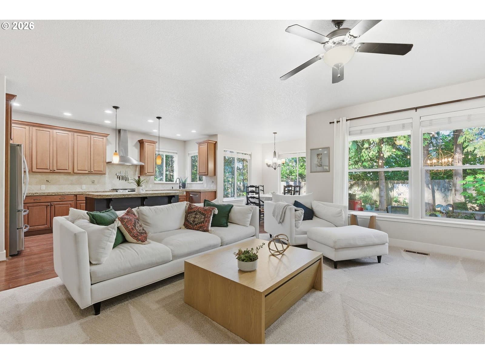 A rare blend of privacy, park views, and timeless quality awaits in this Timberland-built home at the end of a quiet cul-de-sac. Backing directly to King City Community Park with no neighbor on one side, this is a setting you don’t often find. Thoughtfully updated and impeccably maintained, it’s a home that truly lives well. The chef’s kitchen features generous storage, a walk-in pantry, stainless steel appliances, a new refrigerator, and a new gas range. A large center island opens seamlessly to the great room, making it ideal for effortless entertaining. The stone fireplace anchors the space, while a main-level office with built-ins and a full bathroom adds flexibility. Upstairs, you’ll find three bedrooms, two full bathrooms, a home theatre room with a new projector, and a convenient laundry room with a new washer and dryer. The spacious primary suite is a true retreat, offering an oversized bedroom, a spa-like bathroom with a jacuzzi tub, dual sinks, and a walk-in closet. Recent updates include new premium carpet throughout, central A/C, updated upstairs bathroom flooring, fresh interior and exterior paint, new window treatments, and an upgraded backyard. Step outside to a beautifully landscaped backyard oasis—perfect for relaxing or entertaining. Enjoy close proximity to the golf course, walking trails, shopping, dining, and top-rated schools. A rare opportunity that blends privacy, comfort, and an exceptional location in the heart of King City.