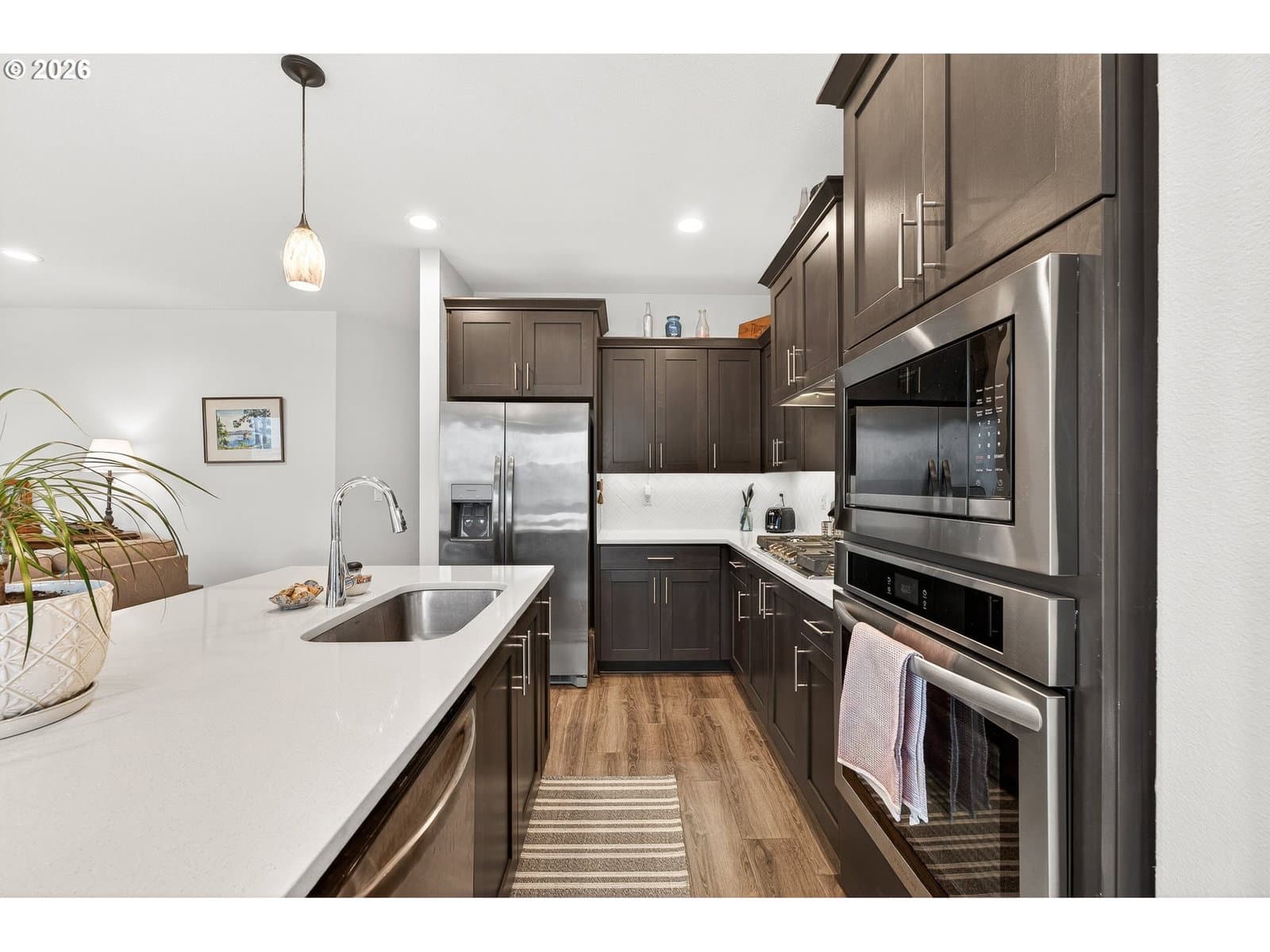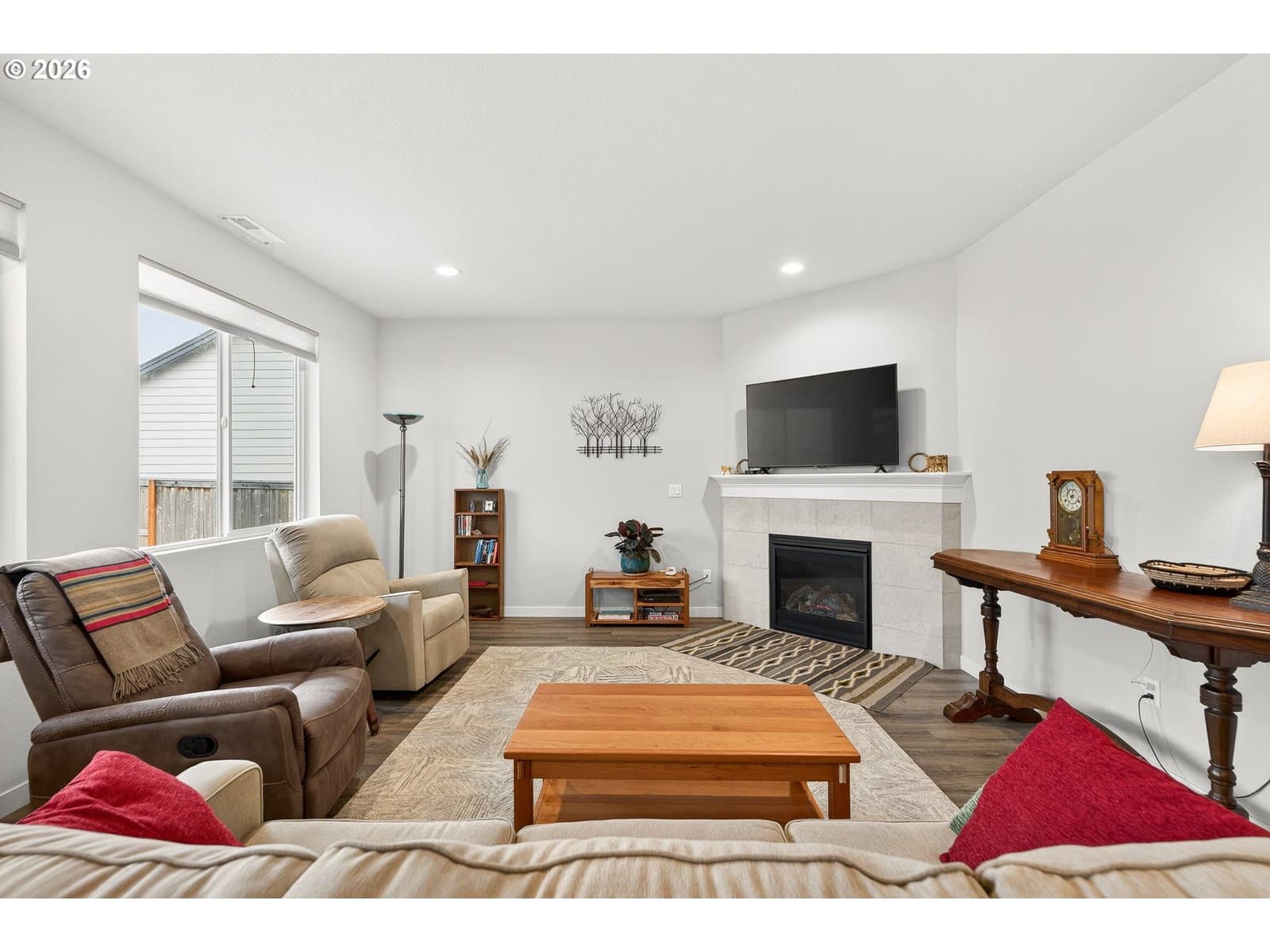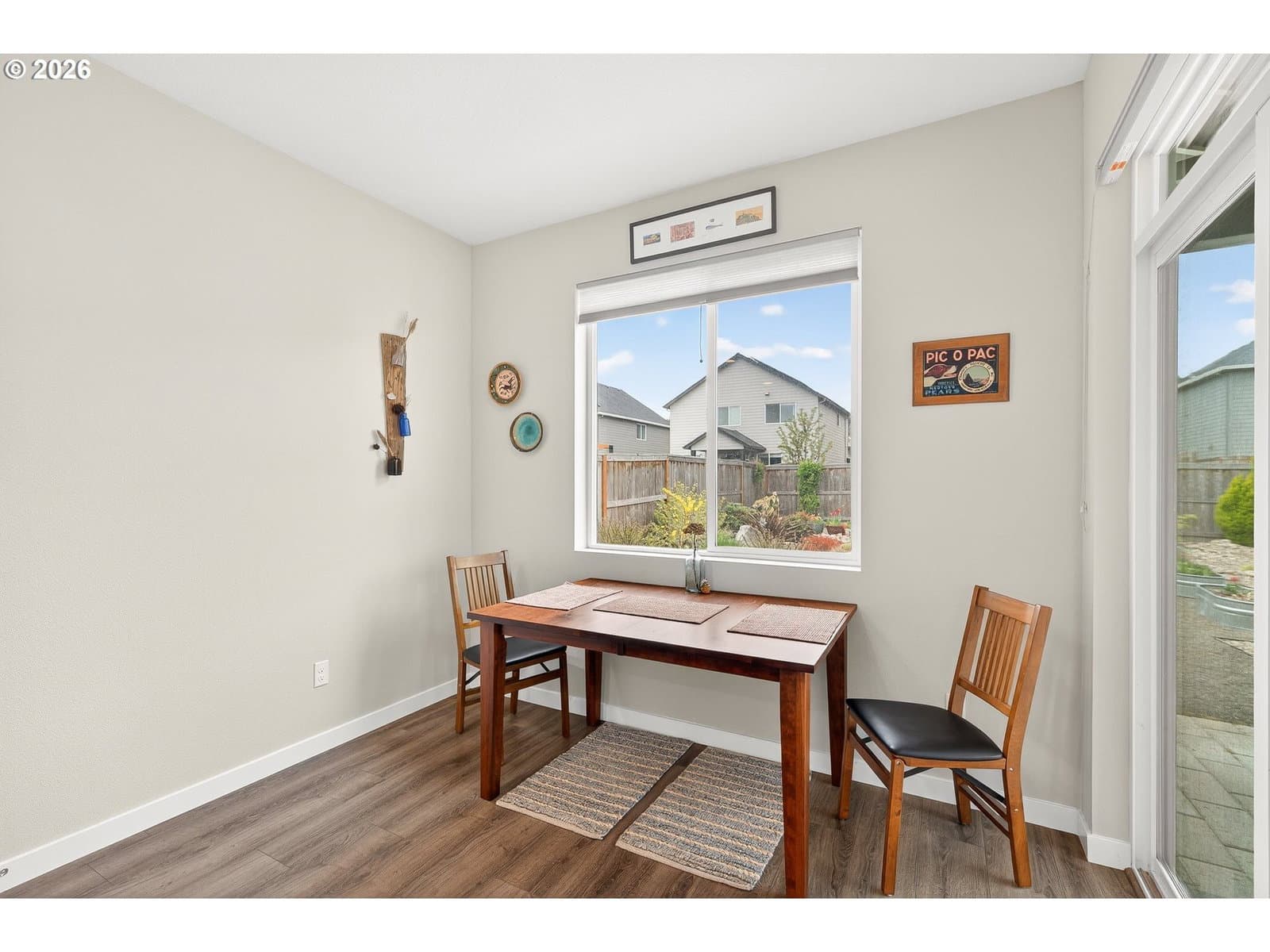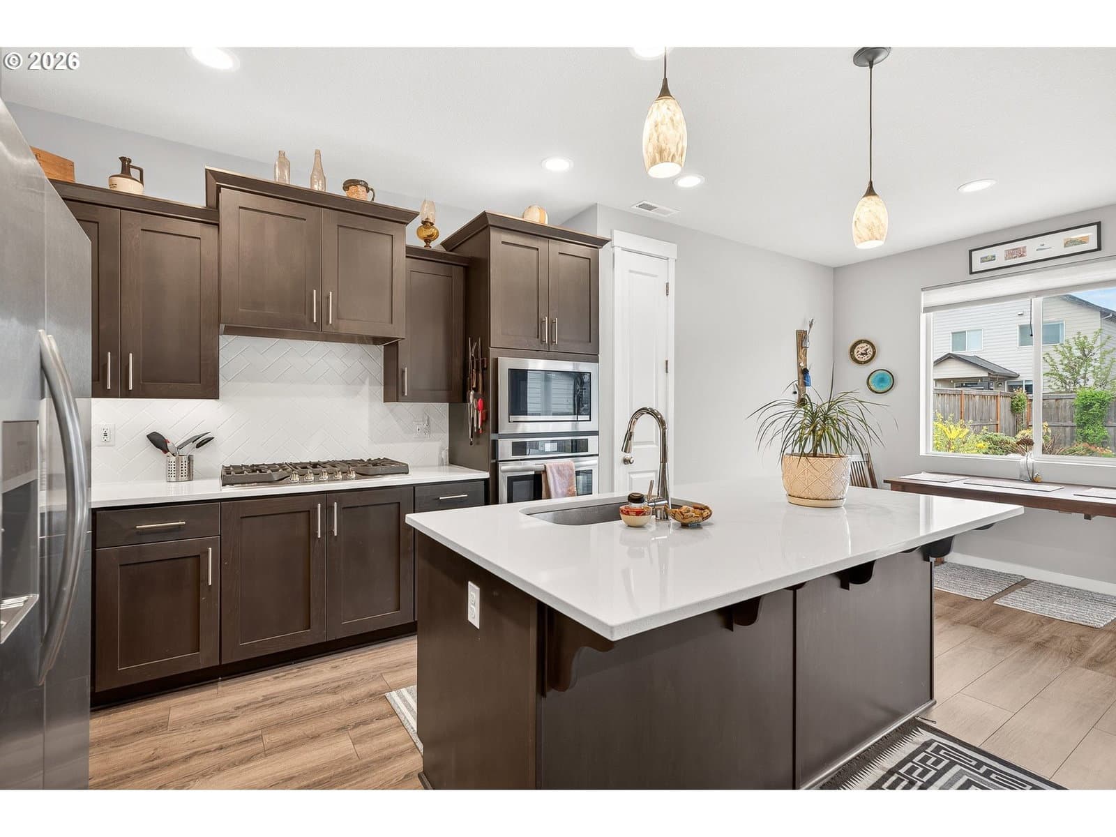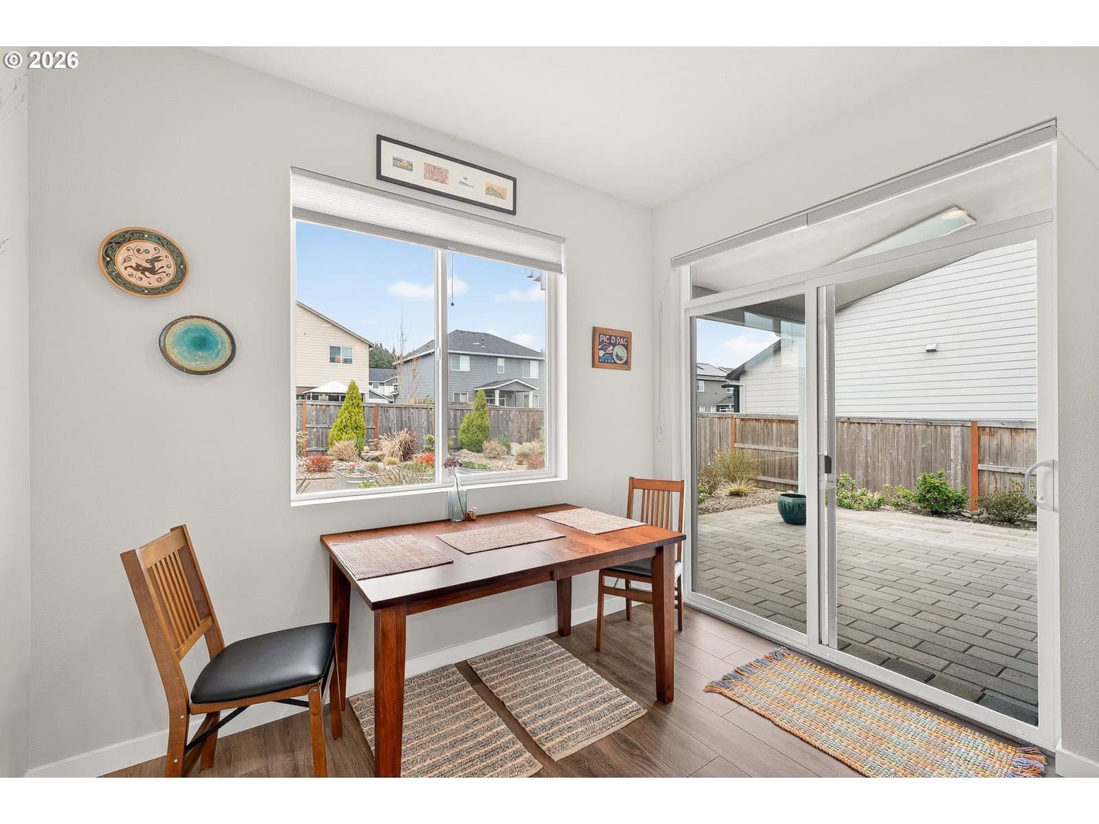 Welcome to this beautiful 2023 home, where thoughtful upgrades make it a standout in the community! Featuring 3 bedrooms and 2.5 bathrooms, this move-in ready property shines with enhancements throughout. The main level is finished with durable luxury vinyl plank flooring, making things look sharp without all the upkeep. The kitchen is equipped with gas appliances, quartz counters, and under-cabinet lighting. It opens into the living area, where a cozy gas fireplace adds both charm and comfort. Upstairs, you’ll find three light & bright bedrooms and a functional layout including an upstairs laundry room. Washer and dryer included! Outside, the low-maintenance backyard is truly a standout feature. Enjoy beautifully planned landscaping with individual drip irrigation for each plant. The upgraded awning over the new paver patio is built to last, with a more substantial feel than standard options and two skylight-style openings for natural light. Located in a desirable new community by Holt Homes, this property offers the perks of new construction along with improvements you won’t find in comparable homes.