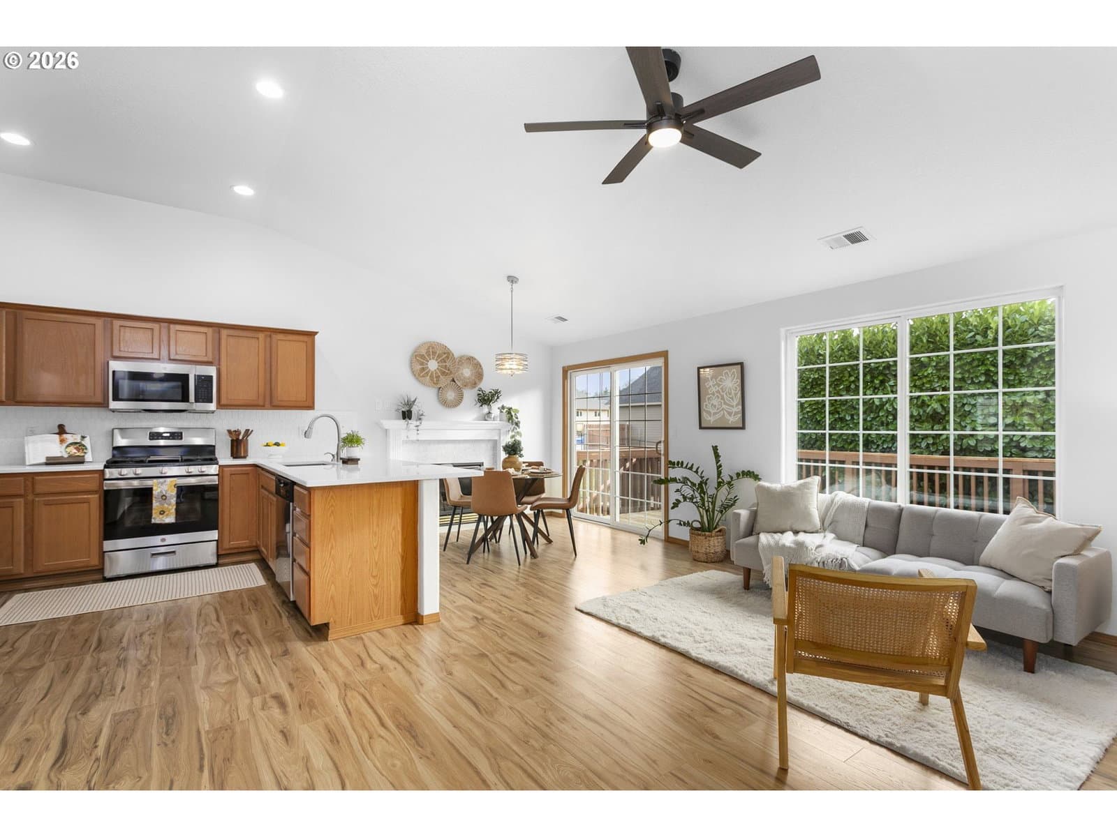 Freshly Updated & Move-In Ready! Welcome home to this beautifully refreshed one-level home with a 3-car garage, offering comfort, style, and convenience. Step inside to discover abundant natural light streaming through large windows, highlighting the brand new wood laminate flooring and fresh interior paint throughout. All new light fixtures for a bright, welcoming feel. The recently updated kitchen features stunning quartz countertops, full tile backsplash, a new stainless steel gas range and new microwave, and a new sink and garbage disposal. Both bathrooms shine with new quartz counters, new fixtures and finishes. Two of the bedrooms feature brand new carpet, adding a cozy touch. Enjoy easy indoor-outdoor living — step out onto your spacious deck, perfect for entertaining or relaxing. The fenced backyard includes a dog run, a large shed, and a sprinkler system to keep everything lush and green. Plenty of room for your RV or boat storage, plus extra storage under the house. New roof in summer of 2023. Located close to the golf course, this turn-key home truly has it all. Don’t wait — this one won’t last long!
