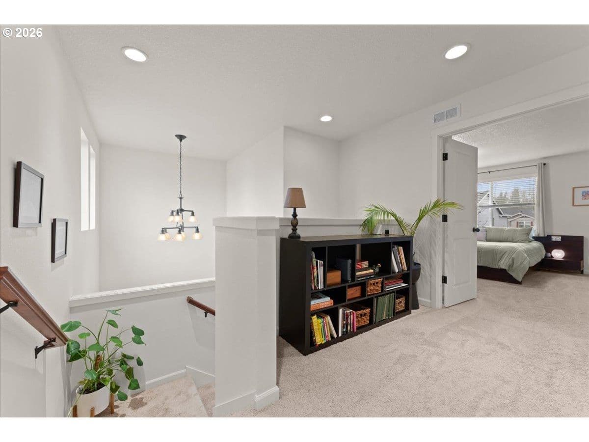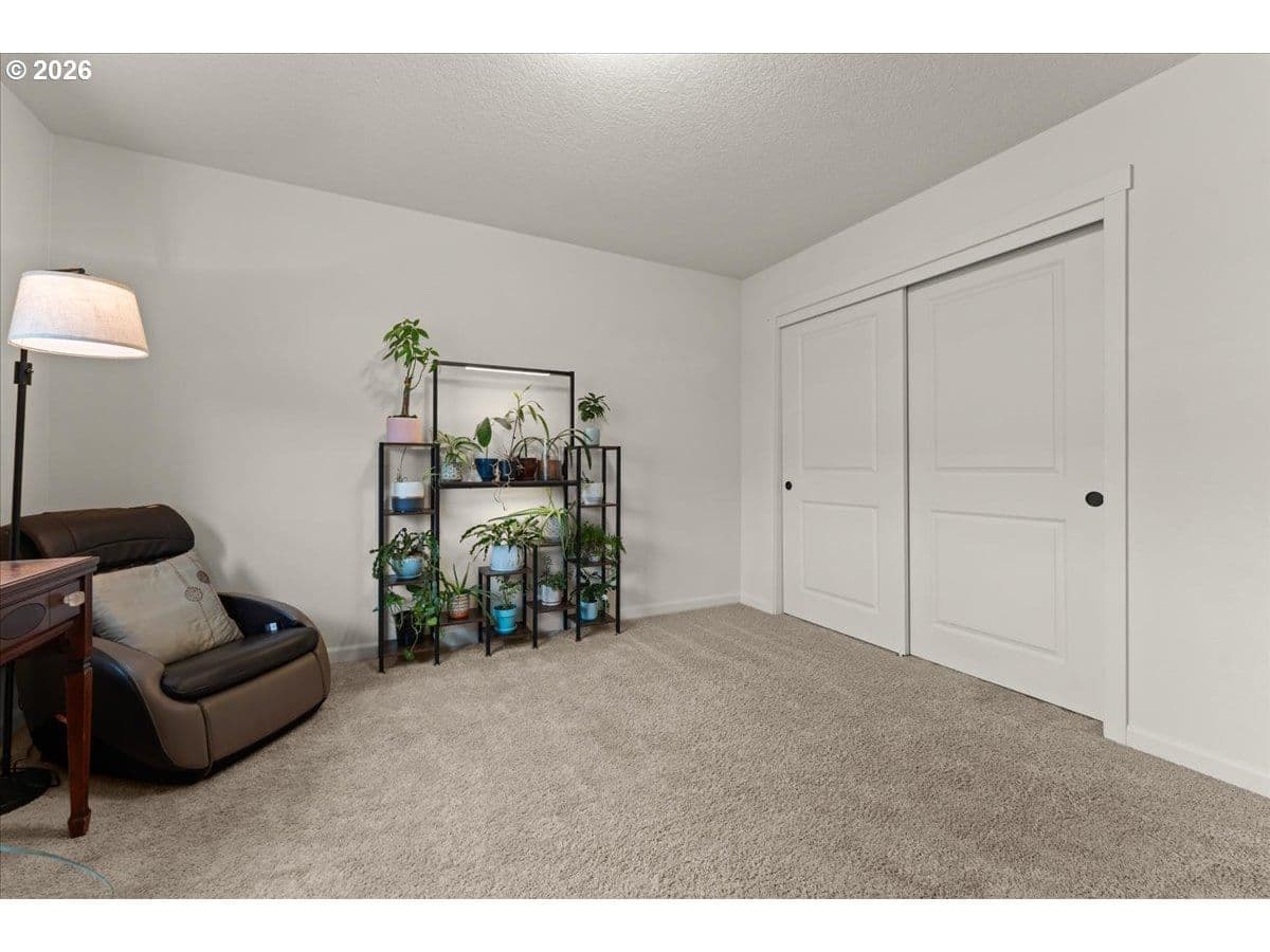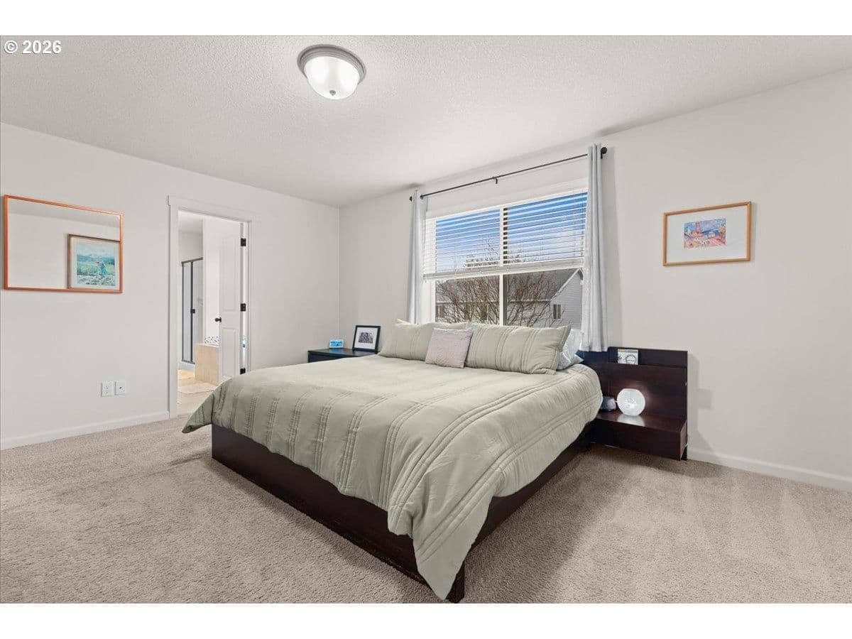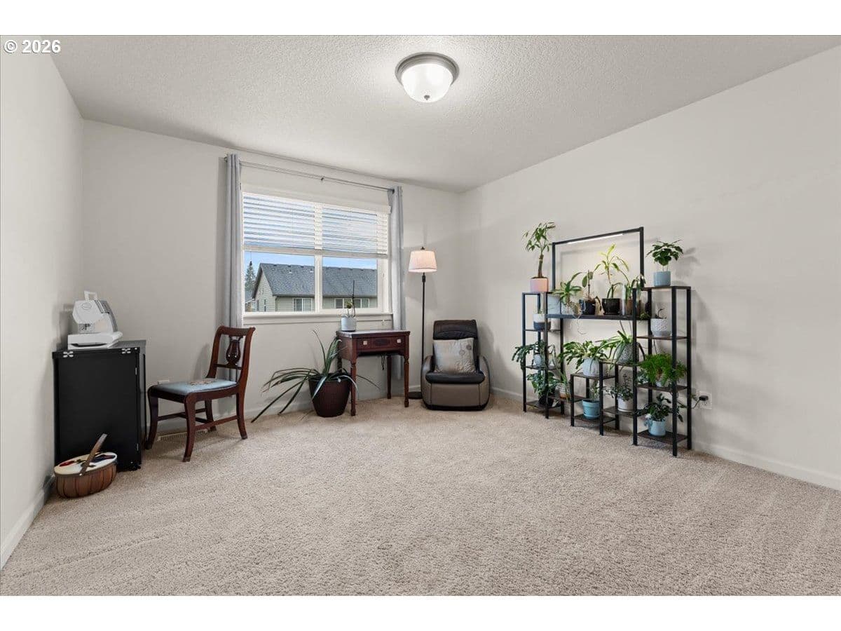 Beautifully maintained and designed for modern living, this 3 bed/2.1 bath home offers a smart layout and standout features including 9’ ceilings and a double-height entry. Thoughtfully crafted with an open concept design, the home features an inviting great room with a cozy gas fireplace, dining area, and a well-equipped kitchen with solid surface countertops, stainless steel gas appliances, full-height backsplash, pantry, and a dedicated coffee nook. Upstairs, the primary suite includes a sitting area, large walk-in closet, and an en-suite bath with dual sinks and a walk-in shower, plus two additional bedrooms, a full bathroom, and a conveniently located laundry room with built-ins. Out back, enjoy an arbor-covered patio with a water misting system, built-in firepit, and raised garden beds with established plantings including herbs, blueberries, and strawberries, fig tree and more. The home includes forced-air gas heat, central A/C, a tankless water heater, smart home lighting and thermostat, and the garage has been upgraded with EV charging. Front yard landscaping is included in the low HOA for easy living. Conveniently located near multiple parks and trails, with shopping nearby including Fred Meyer, WinCo, Safeway, Walmart, and Costco, plus straightforward access to I-205 via Padden Parkway, and PDX is approximately a 15-minute drive.