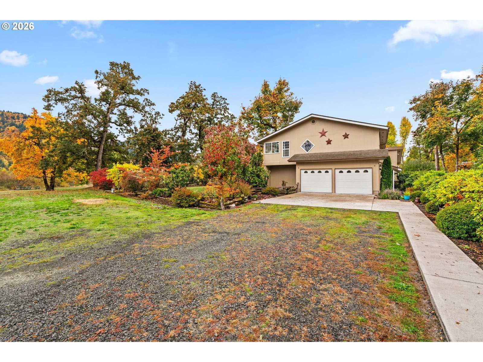 Located on over 6 level acres, this private riverfront property borders the Coast Fork Willamette River along the entire east side. The land offers a mix of open fields and trees, with a flag lot layout that provides a very private setting at the end of the driveway.With usable acreage, privacy, and river frontage, this is a special property. The home features large rooms, oversized windows, two living areas, a fireplace, a formal dining room, and a spacious breakfast nook. A large attached shop adds excellent functionality for storage, hobbies, or workspace. Come see this gem for yourself.