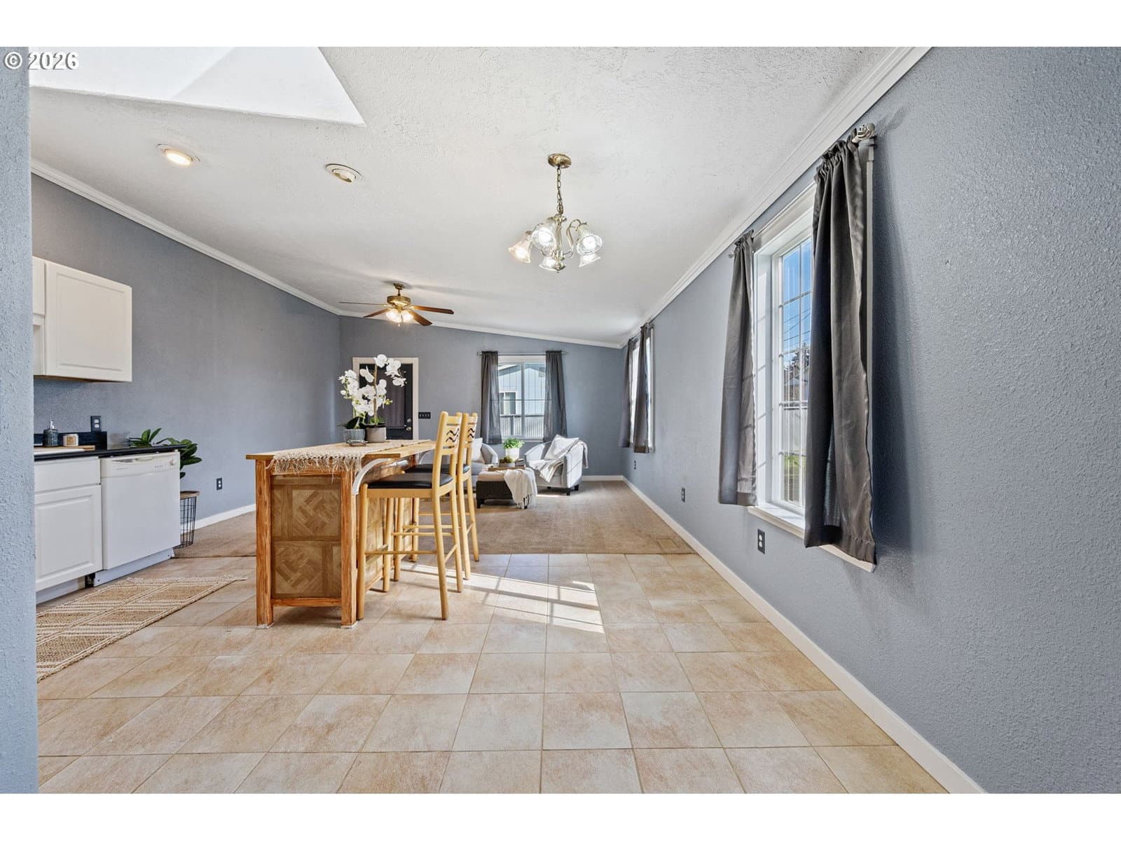 OPEN Sunday 4/19 10am-noon. Located in a cul-de-sac in Sweet Home, this 3-bedroom, 2-bath home offers 1,476 square feet with a functional layout and great potential for a buyer ready to make it their own. Vaulted ceilings run through the living room, kitchen, dining, and family room, creating an open feel across the main living spaces. The kitchen includes quartz countertops, tile flooring, and an island with an eat bar, and connects directly to the dining and family room in a great room-style layout. The dining area has a skylight for added natural light, and the family room has direct access to the backyard. The vaulted primary bedroom includes a walk-in closet and full bathroom with a skylight. Additional features include indoor laundry, a two-car garage, wood flooring in the living room, a covered front porch, fenced yard, and back deck. Roof and fence new in 2023. A strong opportunity for buyers looking to build equity and make it their own.