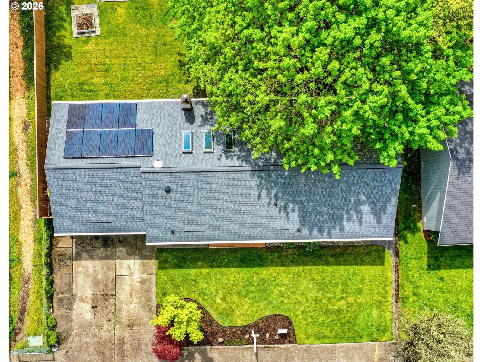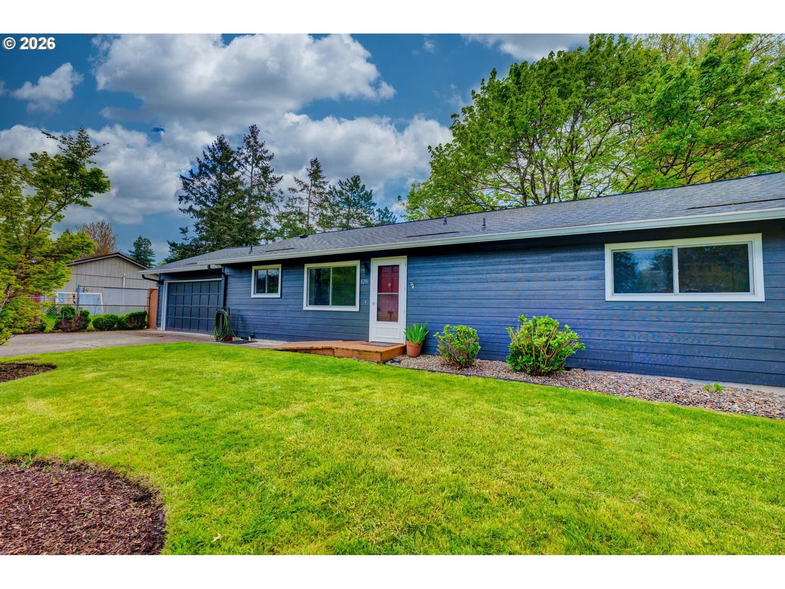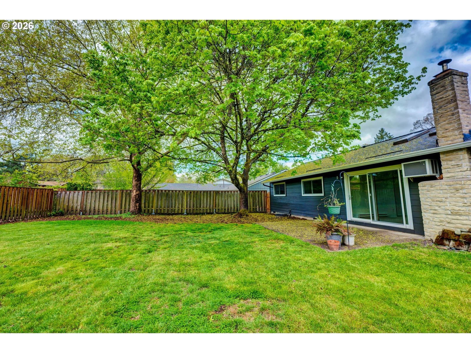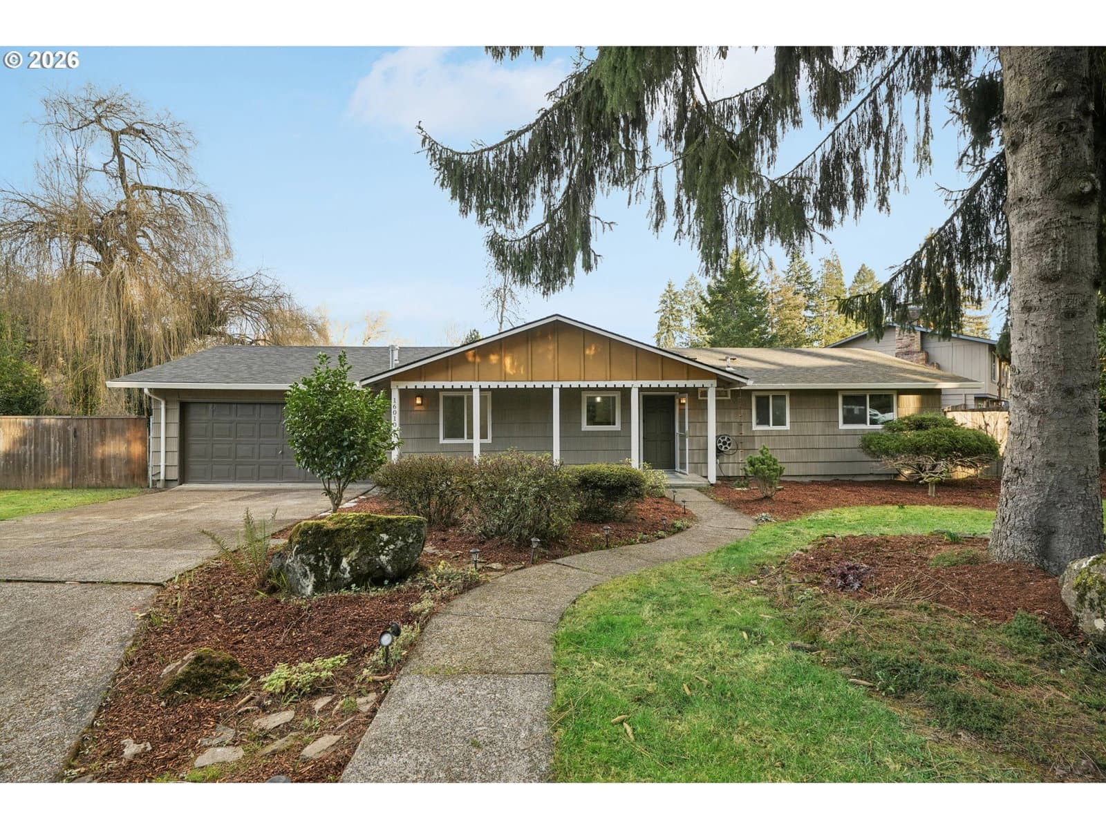 Step into this charming one-story ranch where comfort, convenience, and easy living come together. Tucked on a quiet street yet moments from shopping, restaurants, and everyday essentials, this home offers the best of both worlds. Owned solar panels help keep energy costs down, and thoughtful accessible features make the layout welcoming for all. The vaulted living room with a ceiling fan, dramatic height and three skylights provide abundant natural light. A cozy pellet stove provides additional warmth, and a large Andersen sliding door opens to an expansive backyard and patio. The updated kitchen features granite counters, subway tile backsplash, gas range with convection oven, refrigerator, stainless steel appliances, and a newer Bosch dishwasher. The vaulted dining area room off the kitchen includes a picture window overlooking the front yard. This home offers three comfortable bedrooms, including one with its own attached half bath—ideal for a private retreat. The half bath adjoins the full bath which also has a door to the hallway. The large, level, fully fenced backyard is perfect for play, pets and entertaining, with a patio for outdoor dining and three raised garden beds ready for your veggies, herbs, or flowers. Practical features include a two-car attached garage with storage, washer and dryer included, double-pane vinyl windows,mroof installed in 2019, durable fiber-cement siding, and an accessible layout with minimal steps and a ramp to the front door. Easy freeway access and just minutes to Costco, Walmart, Winco and Fred Meyer and Washington Square, Highway 217 and I-5.