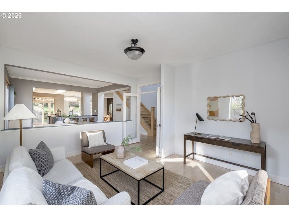 Secret yourself away from society in a beautiful green landscape, with parklands in every direction. Light-filled, modern, spacious, meticulous, with high ceilings, beautiful built-ins, and thoughtful storage solutions, throughout. A smartly articulated floor plan creates two levels of easy living: a generously sized primary bedroom with ensuite bath and walk-in closet on the main, a half bath, bonus office space, and laundry for convenience. The open confluence of contemporary kitchen, dining, and warmly illuminated great room provides social spaces for connection, with stylish floor to ceiling gas fireplace setting a scene. Contemporary appliances, a kitchen island, and room to groove welcomes gourmet gatherings. Upstairs, three additional bedrooms are afforded territorial views and uncommon privacy by clever design. A second full bath completes this level. There's RV parking for checking off road trip wish lists, a large 2-car garage providing secure parking, and there's an separate workshop structure with electricity for weekend tinkering. A covered patio overlooks an exterior that feels serene and secluded. Set out in any direction and you'll find yourself embraced by nature: parks, dog parks, creeks, and forests. Shops and schools nearby - from elementary all the way up to Portland Community and Lewis & Clark colleges - and easy commuting, as well. This beautiful home has much to offer, and is ready for you to turn the key.