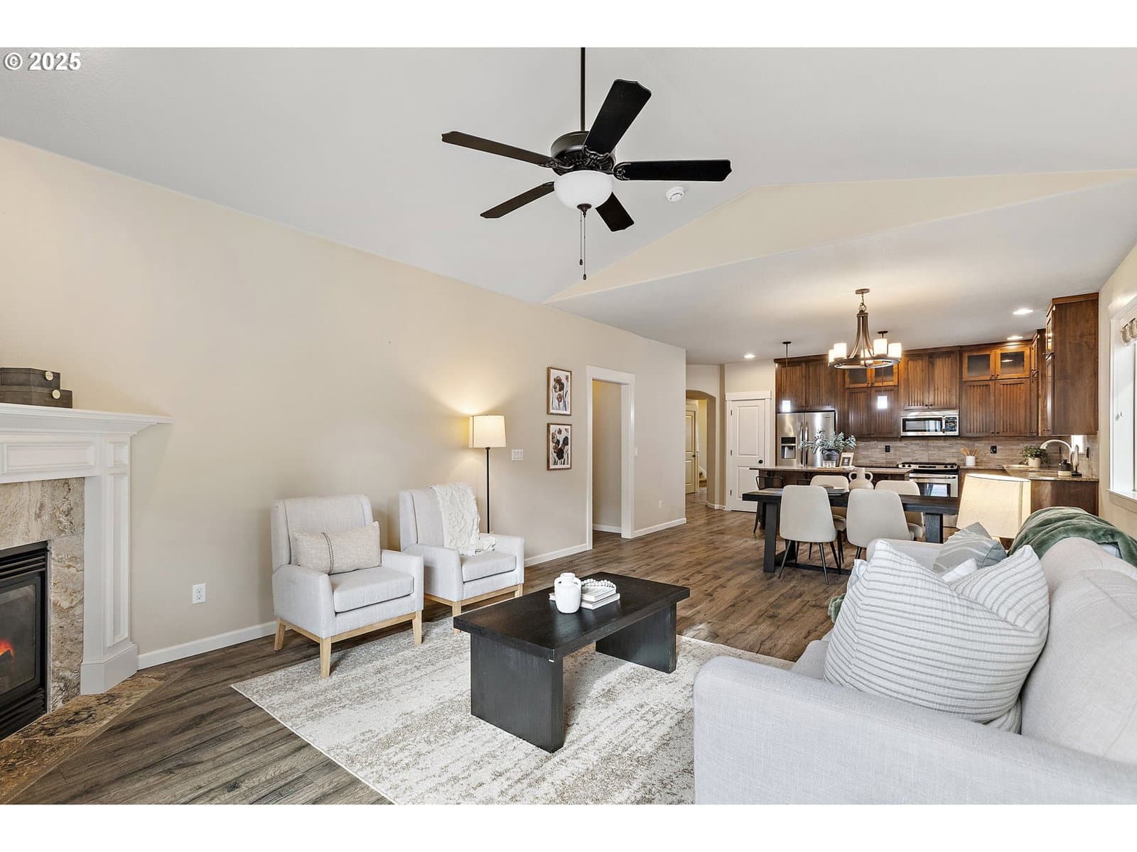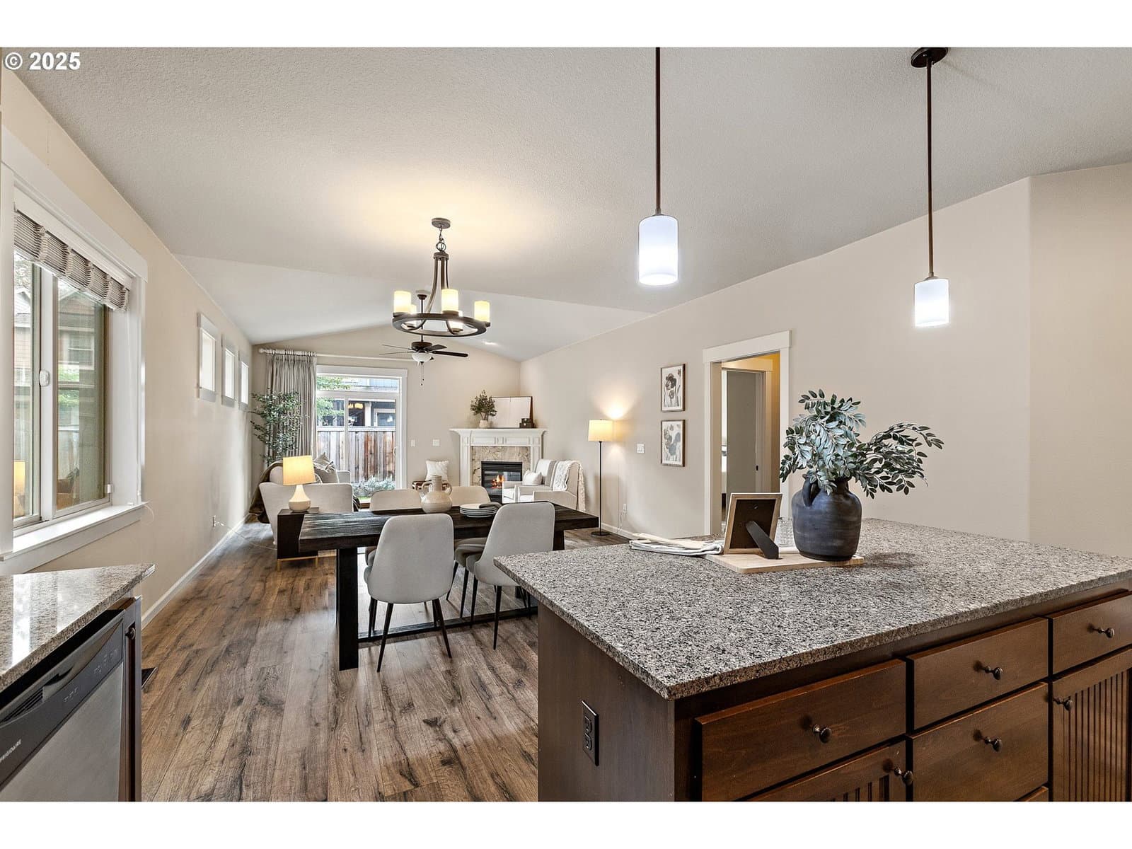 Welcome home to this beautifully designed 4-bedroom home featuring an open great-room floor plan perfect for modern living. The spacious kitchen is a chef's dream with stainless steel appliances, slab granite counters, undermount kitchen sink and a large island ideal for gathering and entertaining. Coveted main-floor primary suite offers comfort and convenience, while the cozy gas fireplace adds warmth and charm to the family room. Upstairs, a vaulted bonus room provides endless possibilities—home theater, playroom, or office. Enjoy outdoor living in the fully fenced backyard, perfect for pets, play, or relaxing evenings. Ideally located near Nike, Intel, shopping and dining. Stylish, comfortable, and move-in ready—this home truly has it all!