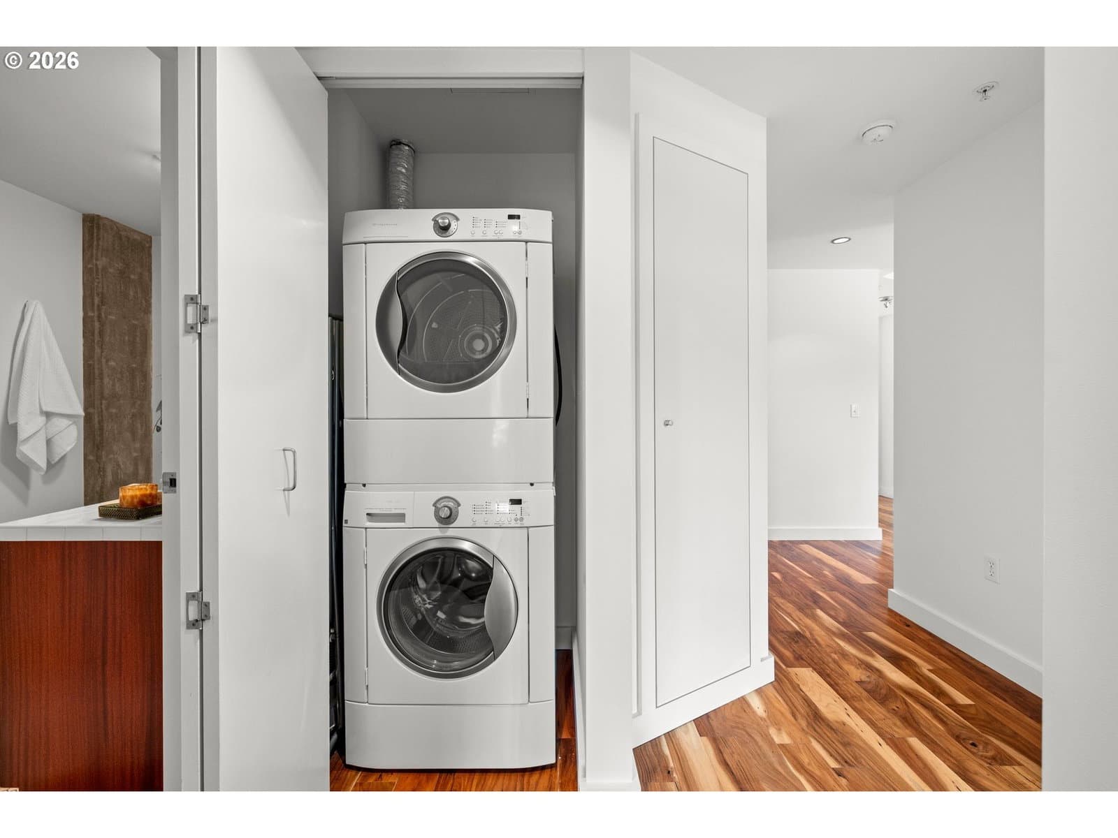 Stunning views from the 10th floor overlooking PGE Park, the city & the West Hills! Unique & desirable corner unit with walls of windows, tons of natural light, private balcony & views from every room. Upgraded hardwood floors throughout, open great room floorplan with island kitchen, eat-bar, nook & large living room, 2 spacious bedrooms & bonus storage closet area of entry. Stackable washer/dryer & linen closet. 2 assigned parking spots, assigned storage unit. Secure entry plus on site concierge. All appliances included. Move in ready, so hip & so cool!