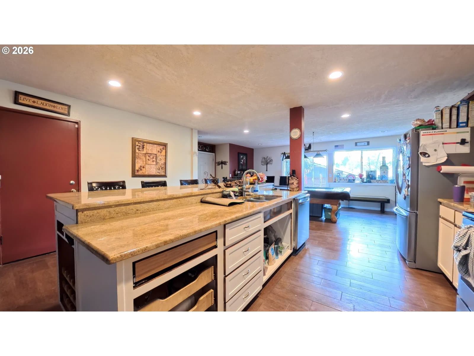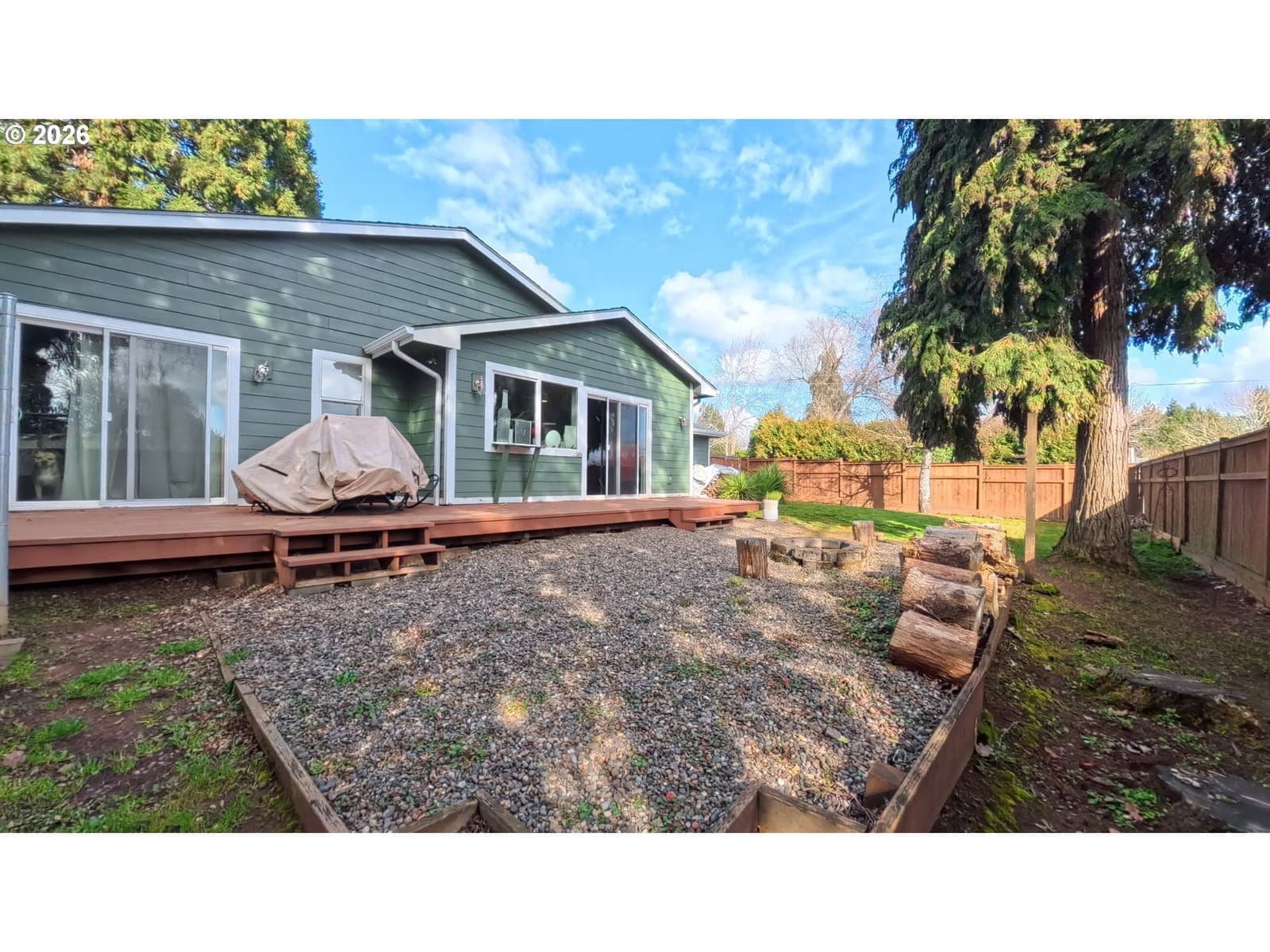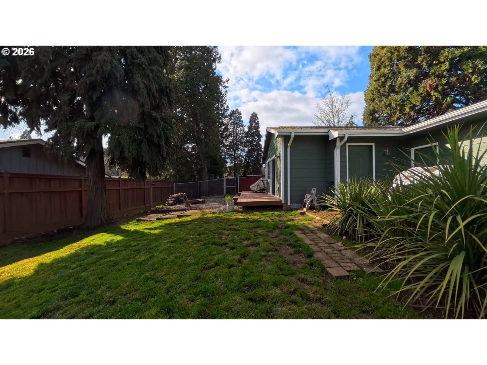 South Salem corner-lot gem! This inviting home features a spacious primary suite with a large walk-in closet and full bath with slider to the backyard deck. Enjoy a generous backyard with firepit area, dog kennel space, and room to play. Kitchen boasts a large custom island, perfect for gathering. Deep garage with abundant built-ins for storage. New sewer line in 2025 plus newer siding and fencing add peace of mind!