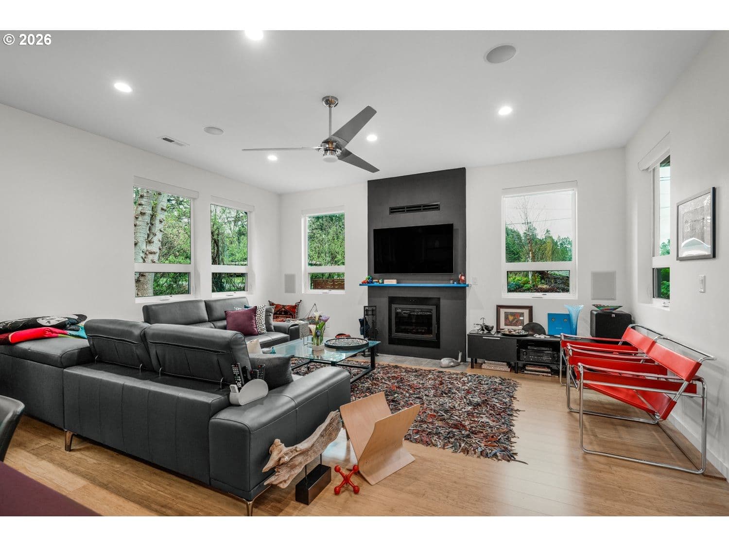 Discover a one-of-a-kind retreat where refined design meets the tranquility of a private, wooded acre just minutes from Bandon. Thoughtfully reimagined through the lens of a creative designer and engineered for both performance and livability, this property stands apart in both form and function. Inside, the home opens to a light-filled living space anchored by a floor-to-ceiling fireplace and expansive windows that bring the surrounding landscape indoors. Clean lines, intentional material selection, and seamless flow define the space, with stranded bamboo flooring throughout the main living areas, undyed wool carpet from black sheep in bedrooms, and a warm, modern aesthetic. The kitchen is designed for both everyday living and entertaining, featuring quartz countertops, stainless steel appliances, soft-close cabinetry, and an eat bar that connects effortlessly to the dining area and prep space. The primary suite offers a private retreat with a walk-in closet and spa-inspired bath with dual vanities, soaking tub, and walk-in shower. Additional bedrooms provide flexibility for guests or home office use. Exceptional outbuildings elevate the property, including a 24x30 shop with 100-amp service and 220V, an oversized 20x24 insulated garage with built-ins and water to the refrigerator for ice maker, a climate-controlled greenhouse and a horse barn. Raised beds, RV parking with septic hookup, and a private setting with a natural spring complete the package. A rare opportunity to own a property where design, functionality, and setting come together in a way that is rarely seen in the Bandon market.