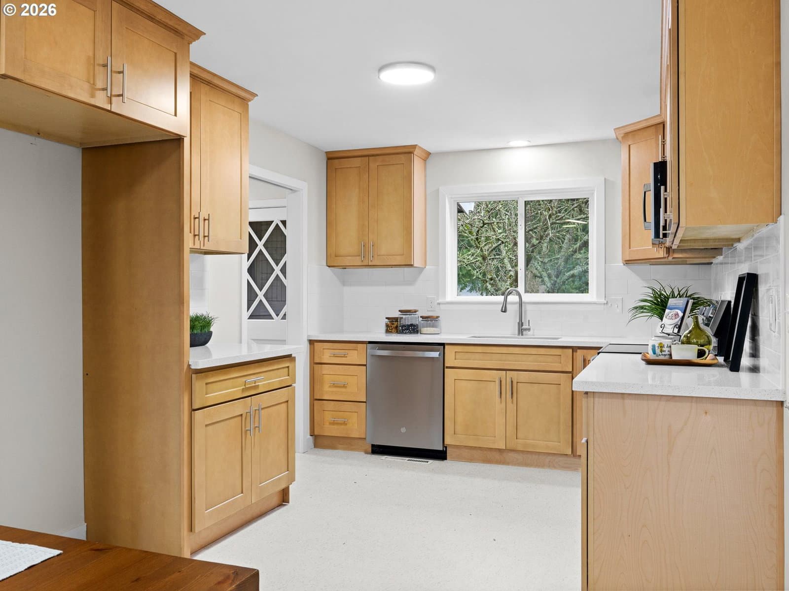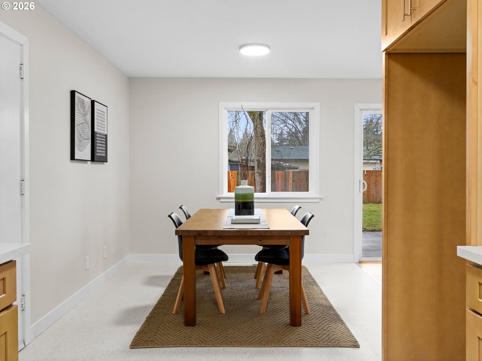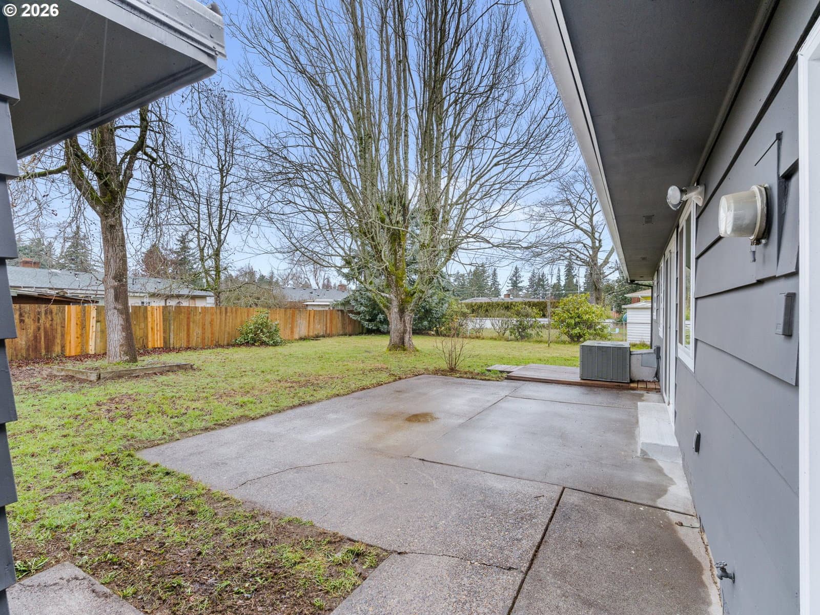 Welcome home to this renovated single-level Ranch-style residence offering 1,118 square feet, 3 bedrooms, and 2 full bathrooms, thoughtfully designed for those seeking true ground-level living with no stairs. Recent renovations enhance both style and functionality, including refinished interior surfaces, new lighting throughout, updated plumbing fixtures, new stainless steel appliances, and solid surface countertops, creating a fresh and move-in-ready feel. The efficient, easy-flow floor plan supports comfortable everyday living all on one level, with the living room featuring a slider that opens to a backyard patio and fully fenced yard, ideal for relaxing, entertaining, or everyday use. Year-round comfort is provided by forced-air heating and central air conditioning. An attached oversized two-car garage adds excellent utility with built-in shelving and convenient pull-down attic storage, perfect for tools, hobbies, or seasonal items. Situated in the Rockwood neighborhood, this home offers close proximity to a variety of outdoor and everyday amenities. Enjoy easy access to the Springwater Corridor Trail (approximately 1 mile), a popular paved path for walking, running, and biking. Vance Park is about 1.5 miles away, providing open green space and recreation. Shopping, dining, and services at Gresham Station—including Safeway, Target, restaurants, and MAX light rail—are within 1.5–2 miles, offering convenient connectivity throughout East Portland and the surrounding area. With its renovated interior, private outdoor space, practical storage, and accessible single-level layout in a well-connected Rockwood location, this home offers comfortable and convenient living.