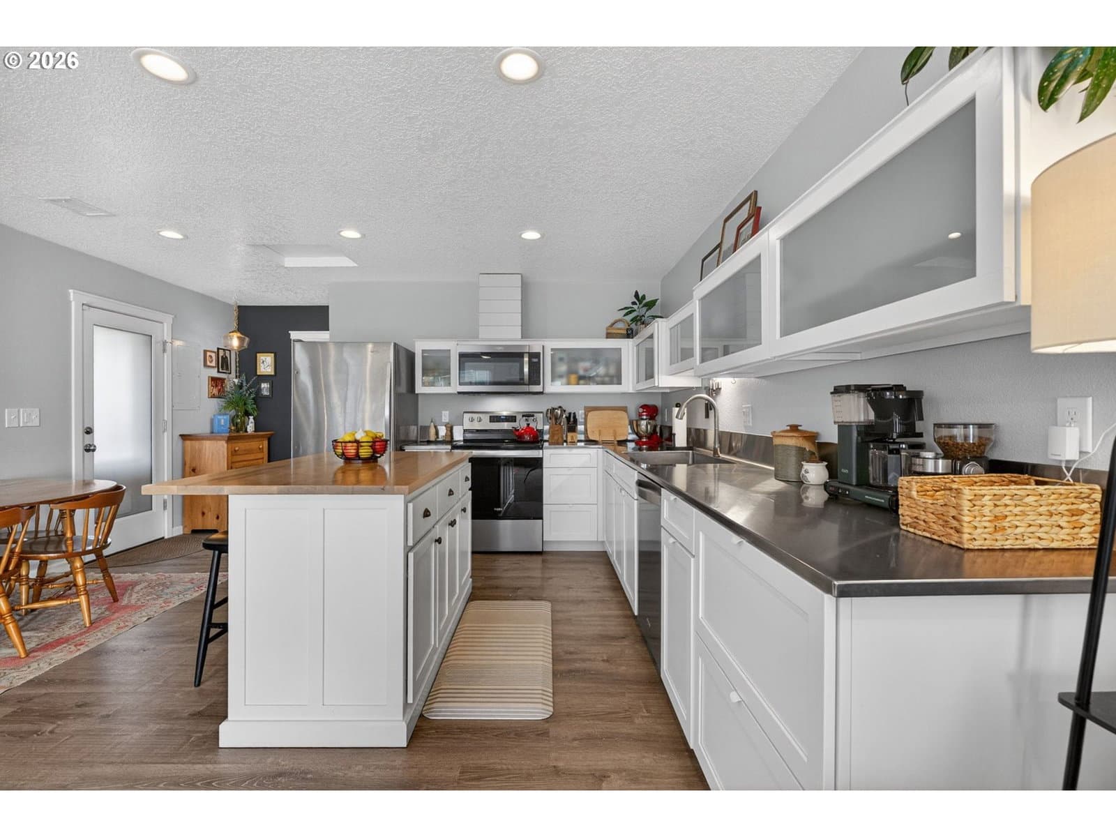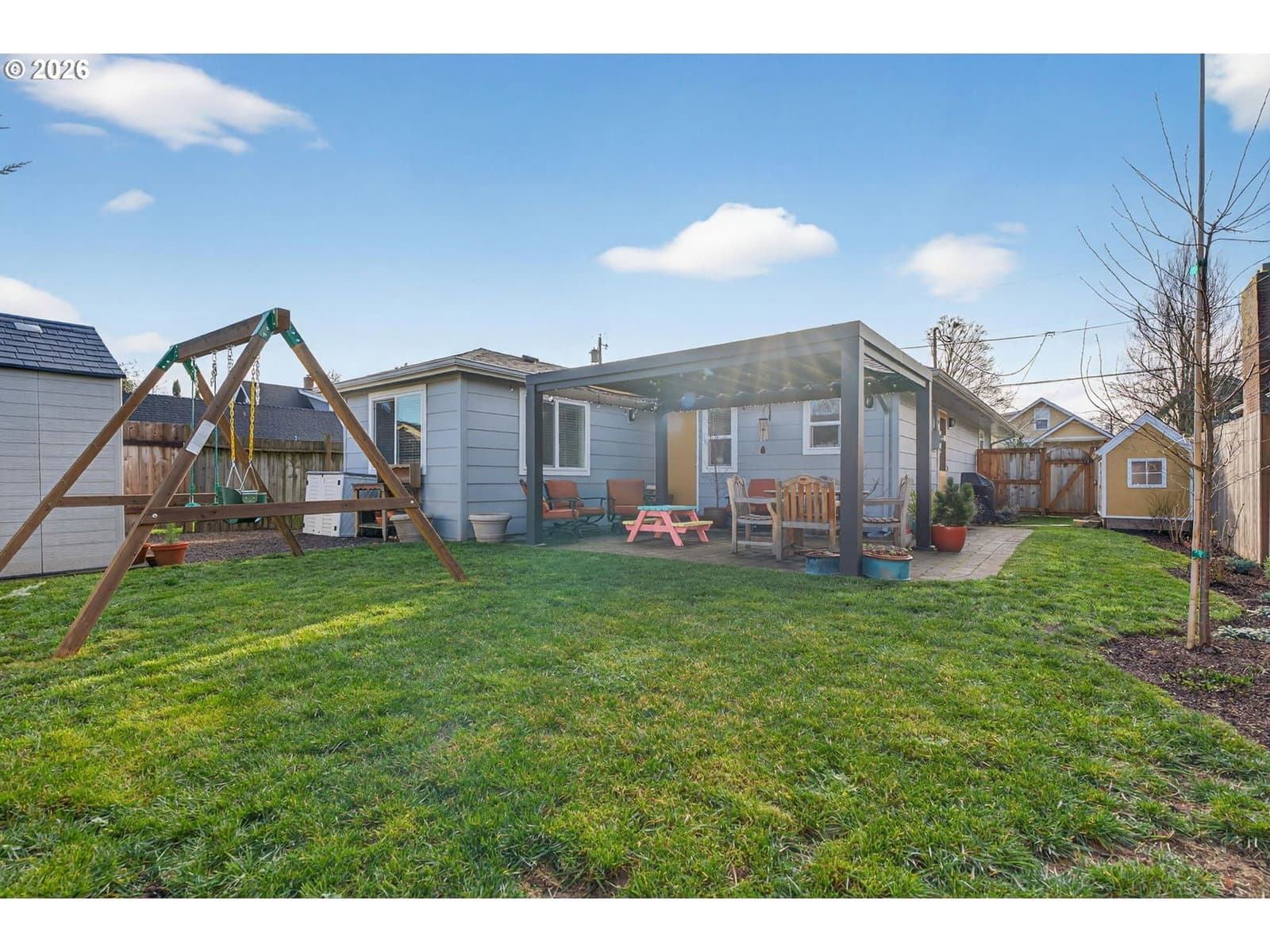 Open Sat 1/8 11am-1pm! This single level cutie patootie checks all the boxes for an open concept lifestyle with all the right spaces! Step into the spacious living room that flows effortlessly into the dining area and updated kitchen—a rare open floor plan ideal for everyday living and easy entertaining! Remodeled in 2020, this 3 bed, 1.5 bath layout shines with stylish and practical updates throughout! The kitchen features stainless steel appliances and counters, LVP flooring, modern cabinets, and extra deep sink. A butcher block island adds storage and extra seating; perfect for casual meals or hosting friends! All three bedrooms are bright and inviting, with oversized windows, wall to wall carpeting and roomy closets. The updated full bathroom feels like a retreat, complete with subway tiled shower/tub combo, heated tile floors, and generous vanity with storage. The convenient half bathroom features tile floors, updated finishes and is plumbed for a shower for future expansion! The front bedroom is an ideal flex space that could be used as an office, nursery or playroom! You’ll love the separate laundry room -hard to find in smaller homes - offering tile floors, additional storage and a large window for tons of natural light! Out back, enjoy the fully fenced, landscaped level yard - ideal for play, pets or gardening. The newer paver patio sets the stage for summer BBQs and relaxed summer afternoons in the shade the pergola! Outdoor shed offers additional great storage for bikes & recreational toys! This home is as functional as it is stylish, with all new electrical and plumbing, insulated interior walls and vinyl windows (2020), central A/C (2021). Living room plumbed to add fireplace. All this on a quiet street with low traffic, yet just minutes to Mt. Tabor, and popular Foster/Powell coffee/bars/restaurants! Easy commute into downtown Portland or airport! [Home Energy Score = 5. HES Report at https://rpt.greenbuildingregistry.com/hes/OR10243370]