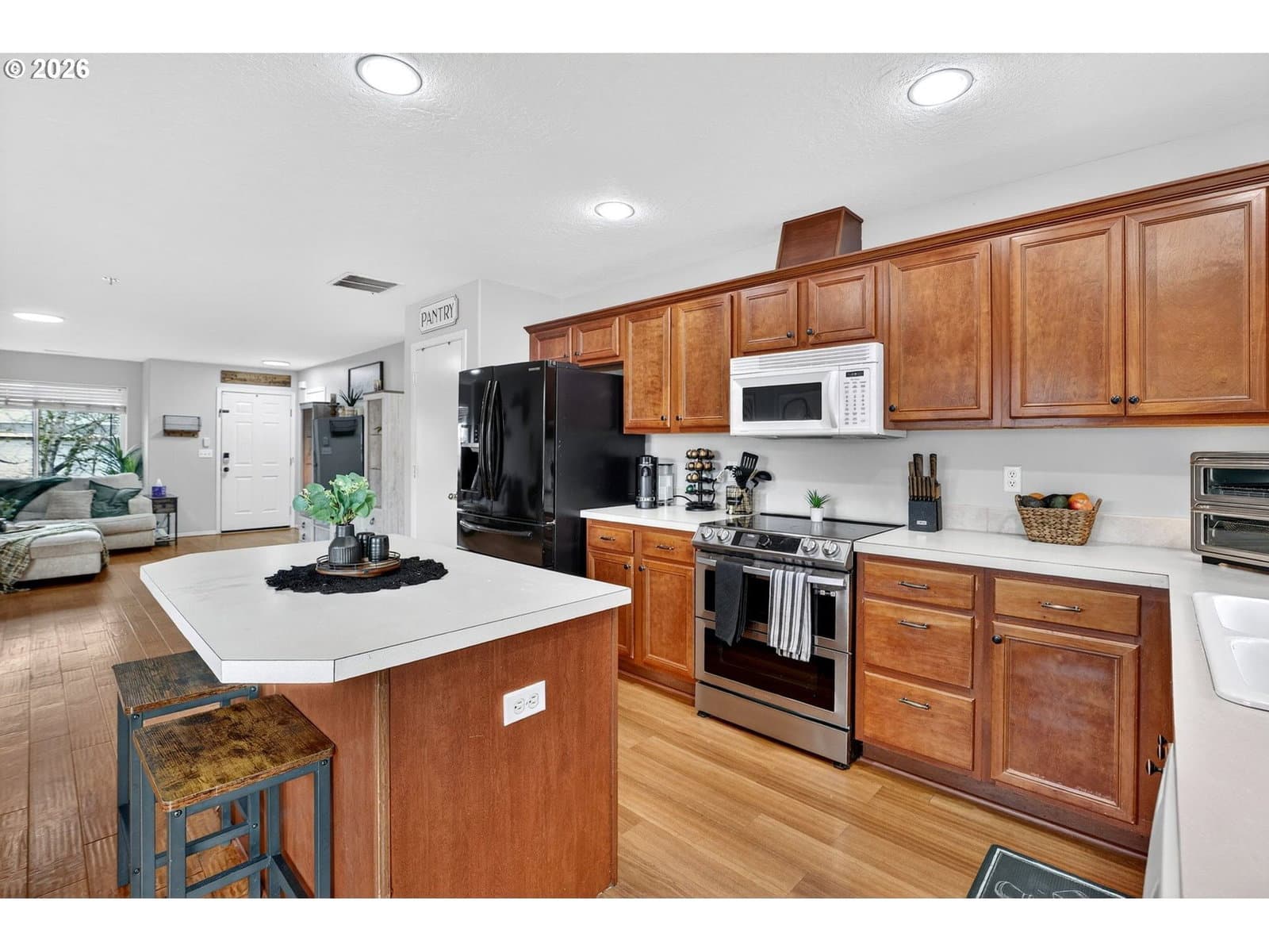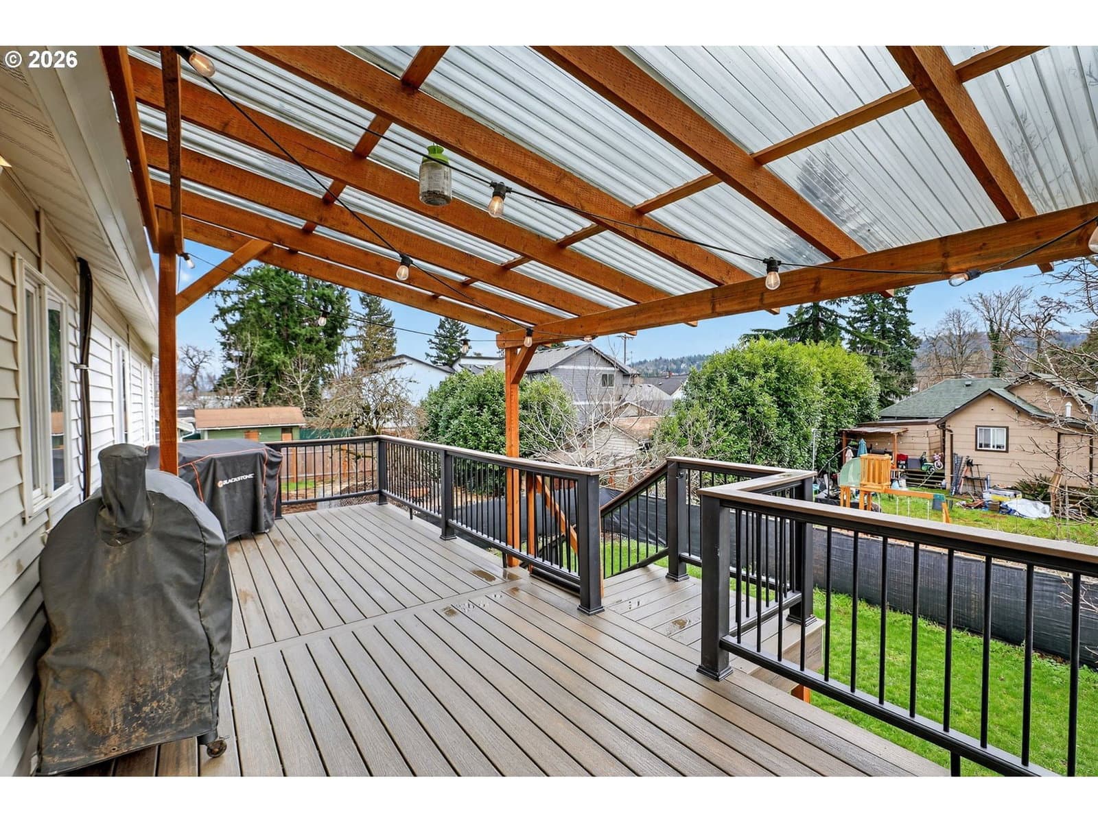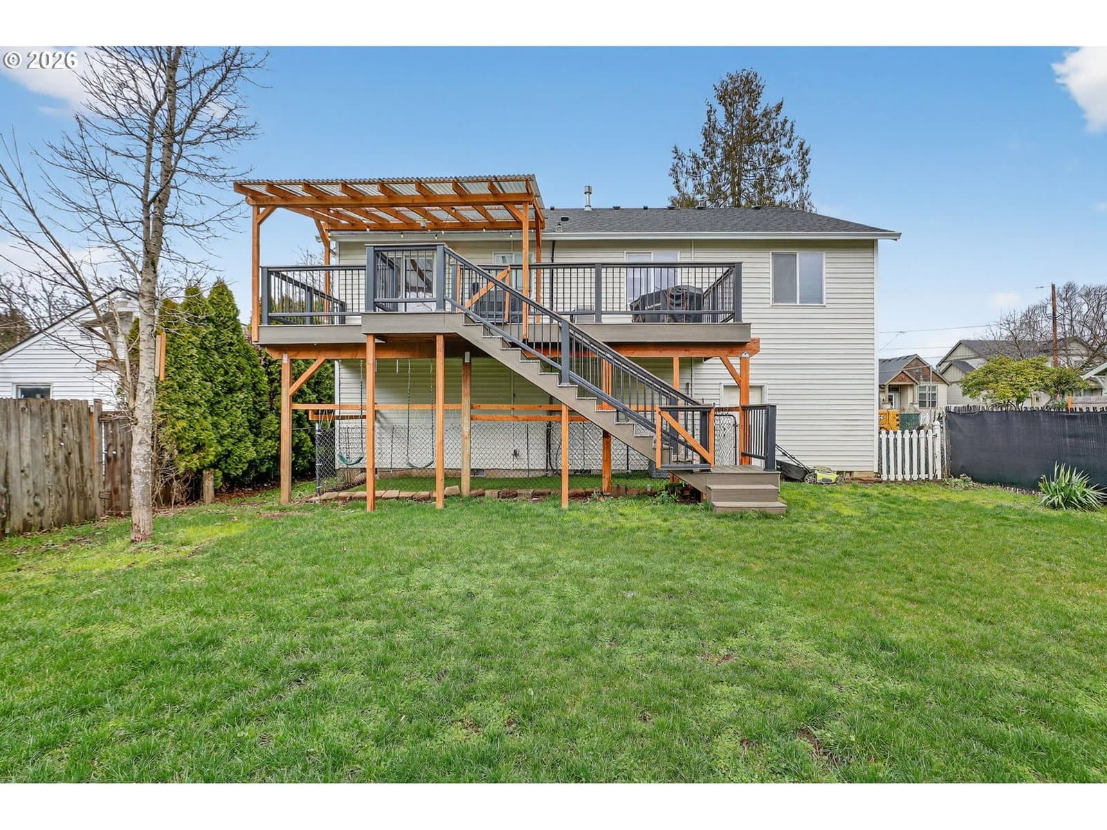 Well-maintained and move-in ready, this inviting home offers comfortable living now with outstanding potential to expand. The main level features an open, light-filled layout, ideal for both everyday living and entertaining. The primary suite includes a walk-in closet and private bath, complemented by two additional bedrooms, a full bath, and convenient laundry on the main floor. Below, an oversized 4-car garage and approx. 690 sq ft of unfinished space present a rare opportunity to add living area, create a workshop or studio, or explore future ADU potential (buyer to verify). A private deck and peaceful backyard provide space to relax or garden. Newer roof and thoughtful upkeep complete this flexible, value-forward property. [Home Energy Score = 7. HES Report at https://rpt.greenbuildingregistry.com/hes/OR10125912]