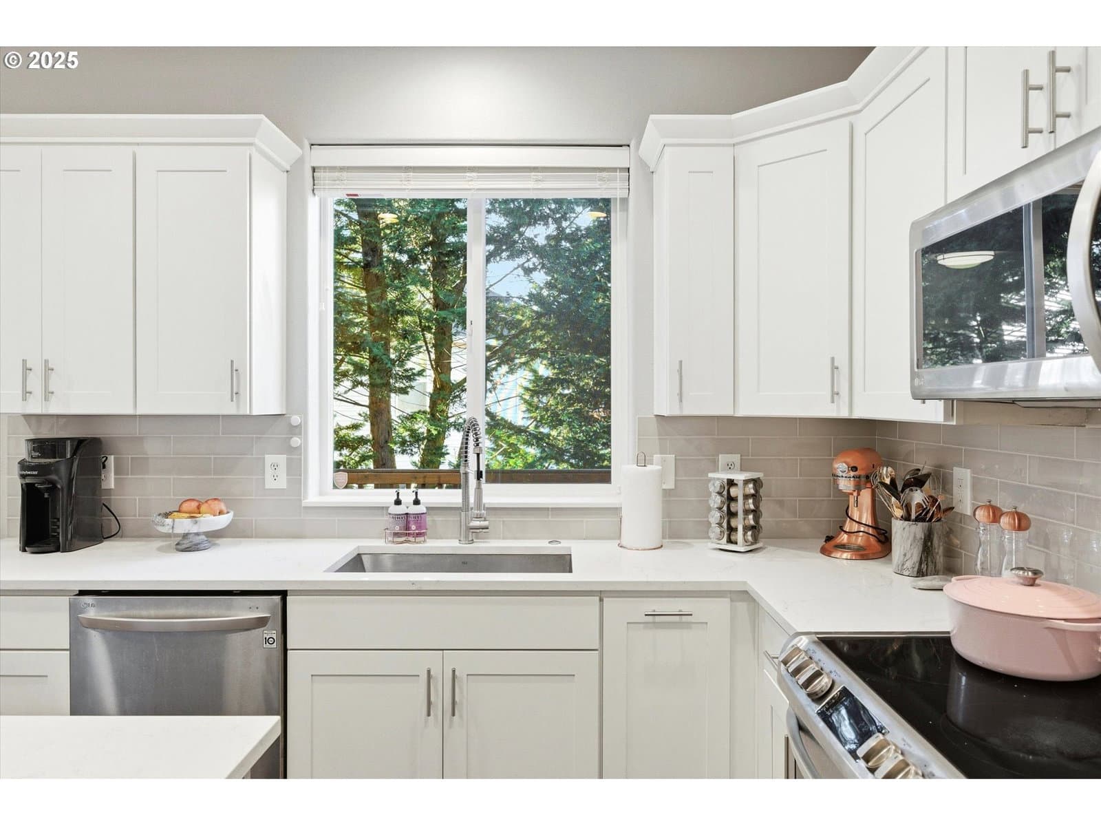 Open house Sunday, Nov. 23, 2:00 - 4:00 pm- This beautiful, luxurious 4-bedroom, 2.5-bath home offers timeless craftsmanship, quality finishes, and an inviting, light-filled layout. The main level features an expansive formal living and dining area with high ceilings, abundant windows, a gas fireplace, and seamless flow into the gourmet island kitchen. Quartz counters, stainless steel appliances, a gas cooktop with hood, built-in oven and microwave, and a spacious dining area make the kitchen perfect for both everyday living and entertaining. Step outside to the private, fenced backyard patio surrounded by mature greenery that creates a serene, secluded setting. Upstairs, the elegant primary suite includes a spa-like bath with a freestanding soaking tub, walk-in tile shower, double quartz vanity, and a generous custom designed walk-in closet by Container Closets. Three additional bedrooms and a full bath complete the upper level, offering excellent flexibility for family, guests, or office space. Ideally located just minutes from Progress Ridge shopping, dining, and cinema—and walking distance to a neighborhood park—this home delivers an exceptional blend of quality, comfort, and convenience.