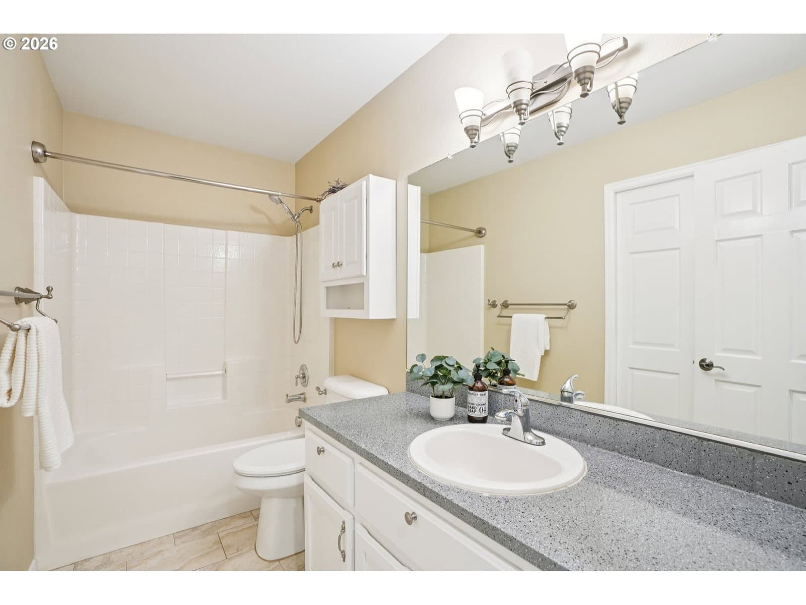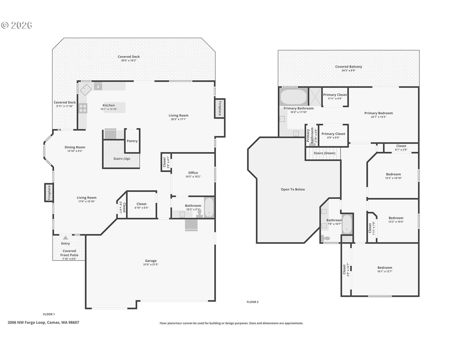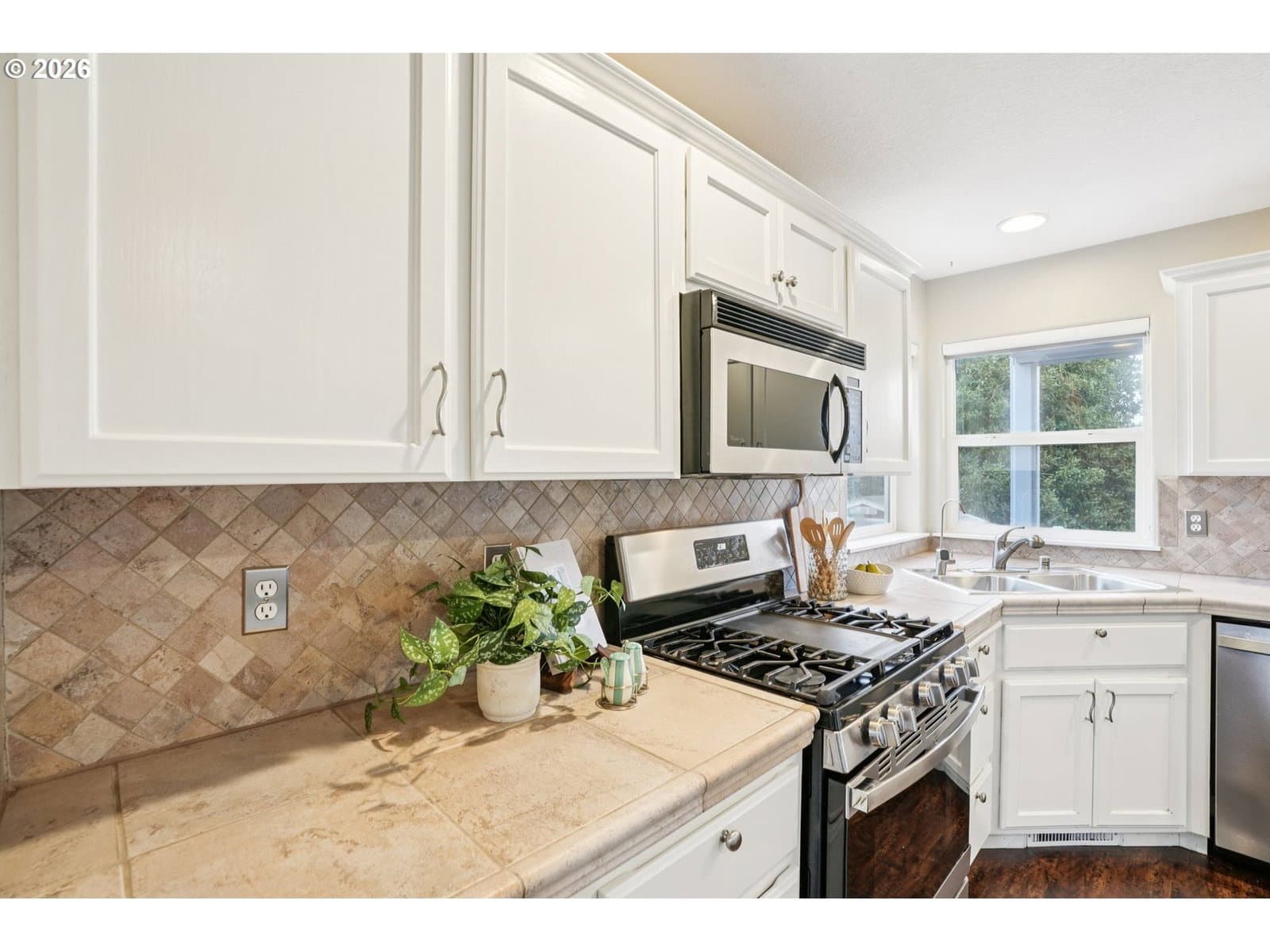 Incredible mountain and river views await in this spacious Camas gem! Nestled in a premier, established neighborhood known for top-tier schools, this home is perfectly positioned to capture magical moments from the double decks. The light and airy floor plan features soaring vaulted ceilings and a multitude of windows that fill the home with natural light. The flexible layout offers 5 bedrooms and 3 full baths, including a bedroom and full bath on the main level—ideal for guests or a home office. Designed for comfort, the home features TWO cozy gas fireplaces: one in the inviting great room and another to add warmth to the living space. The primary suite is a true retreat with vaulted ceilings and a private deck to soak in the scenery. Enjoy the low-maintenance backyard and year-round outdoor living on the expansive covered deck. Includes updated 2021 kitchen appliances and LVP flooring. Minutes to DT Camas, Lacamas Lake, Round Lake, and access to PDX. A perfect blend of view, space, and location! OFFER DEADLINE SET FOR WEDNESDAY, APRIL 22ND AT 3PM.