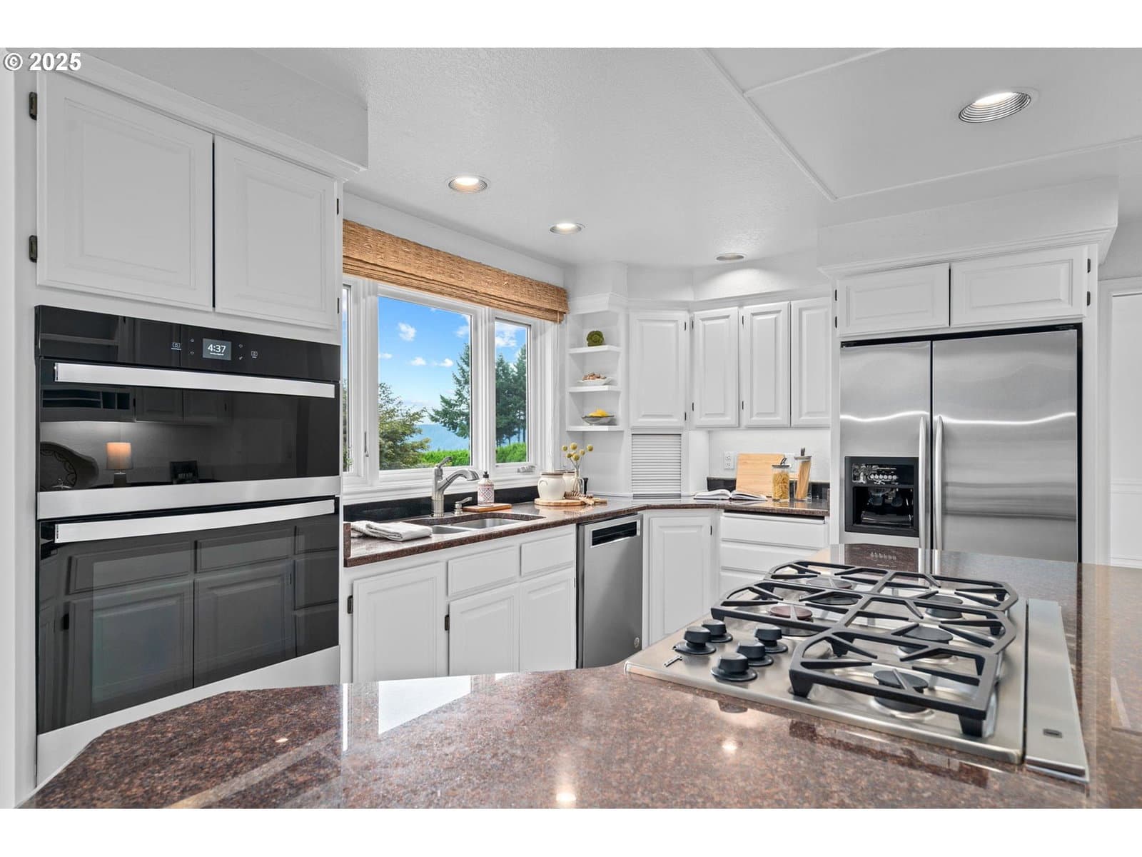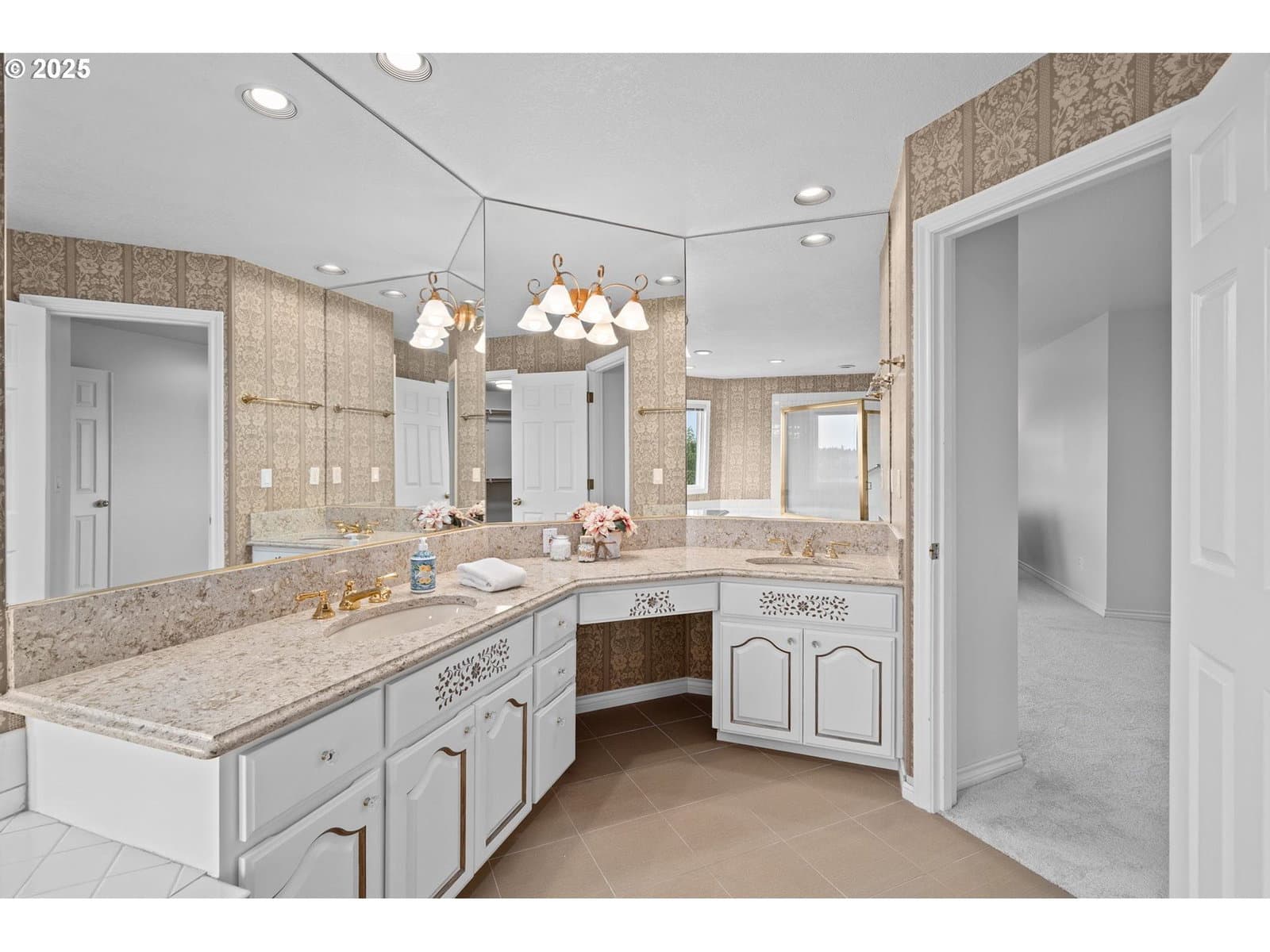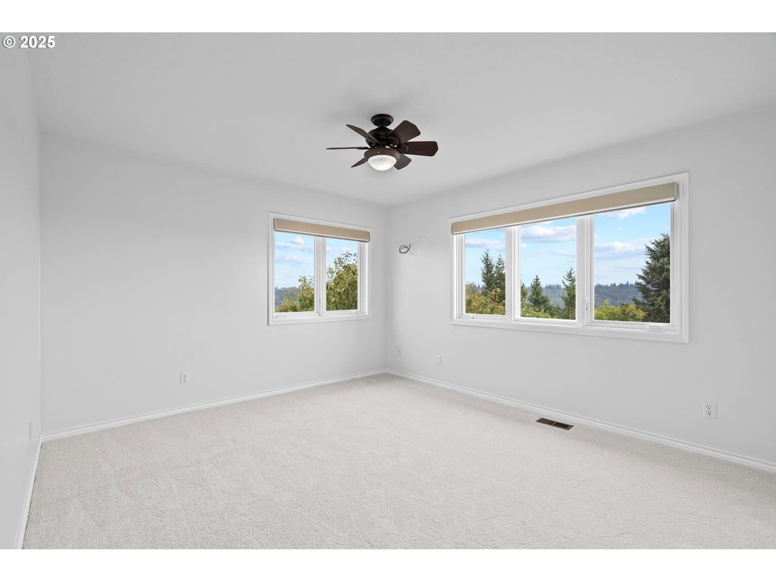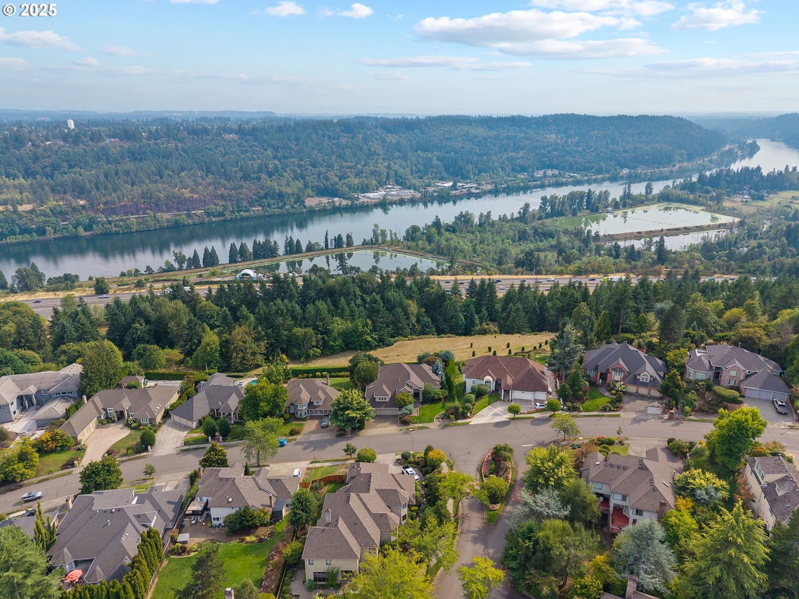 Elegant traditional with sweeping views of the Willamette River Valley and Mt. Hood. Recent updates include a newer roof, fresh interior paint, new carpet in most rooms, refinished hardwood floors, and a stunning two-level deck with a pergola to enjoy expansive vistas. Formal living room with gas fireplace, coffered ceiling in the dining room, and main floor office with soaring ceilings and abundant natural light. Sunken family room with wet bar and French doors. Bright white kitchen with updated appliances. Spacious primary suite features a walk-in closet and ensuite bath with heated tile floors. Bedrooms 2 and 3 offer Mt. Hood views. Bonus room with finished storage area and updated hall bath. Oversized three-car garage and additional built-in storage throughout provide exceptional functionality. A move-in-ready home combining timeless elegance with spectacular views.
