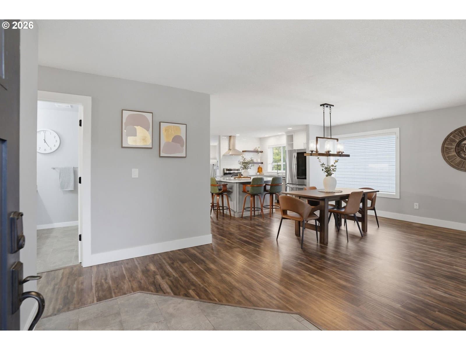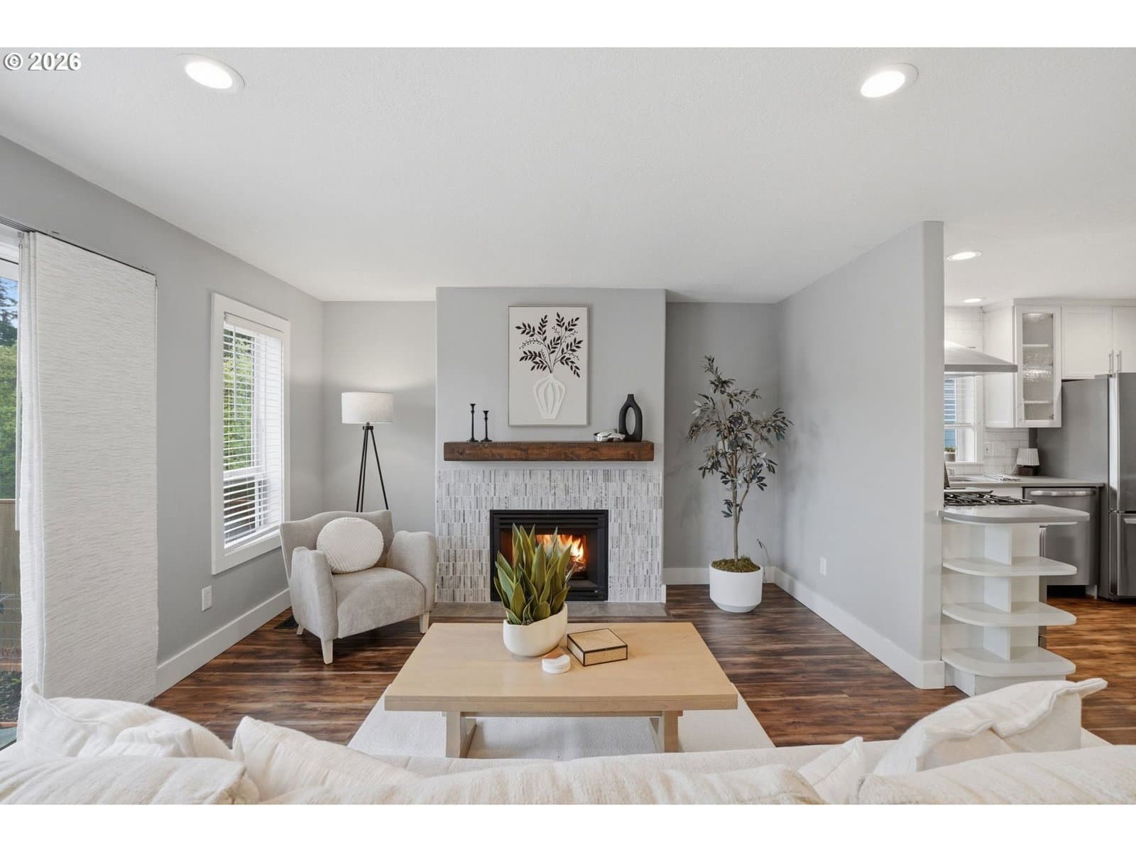 Welcome home to one of those gems you find when everything aligns...great location, lovingly maintained, thoughtful updates, all at an amazing move-in ready price! This remodeled single-level offers a brand new 30-yr roof, engineered hardwoods, and fresh interior paint. Inside, the first thing that catches your eye is the stunning kitchen space, the true heart of the home! Features include a sizable island for meal prep & entertaining, built-in features, quartz countertops, and a newer LG stainless steel appliance package. There is a real livability and flow to this house...open layout, bedrooms down a private hallway, and a front den with french doors allowing for generous office or play space. Out back provides a custom terraced patio for endless summer entertaining complete with cherry trees, blueberry bushes, lavender, and rosemary + room for planting those garden veggies. Direct access to miles of Camas city walking trails and just minutes to Dorothy Fox Elementary. This is a real must see!