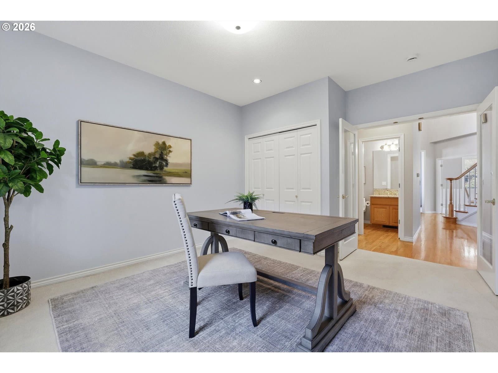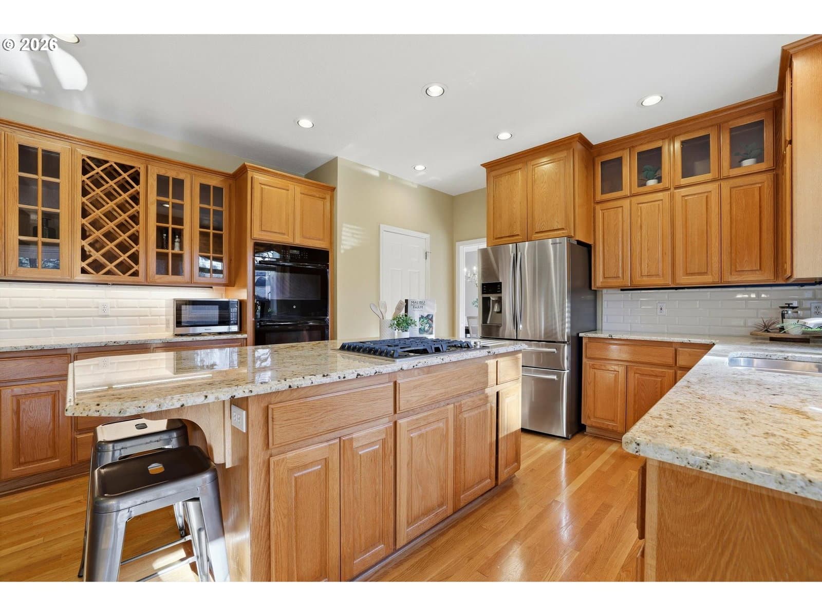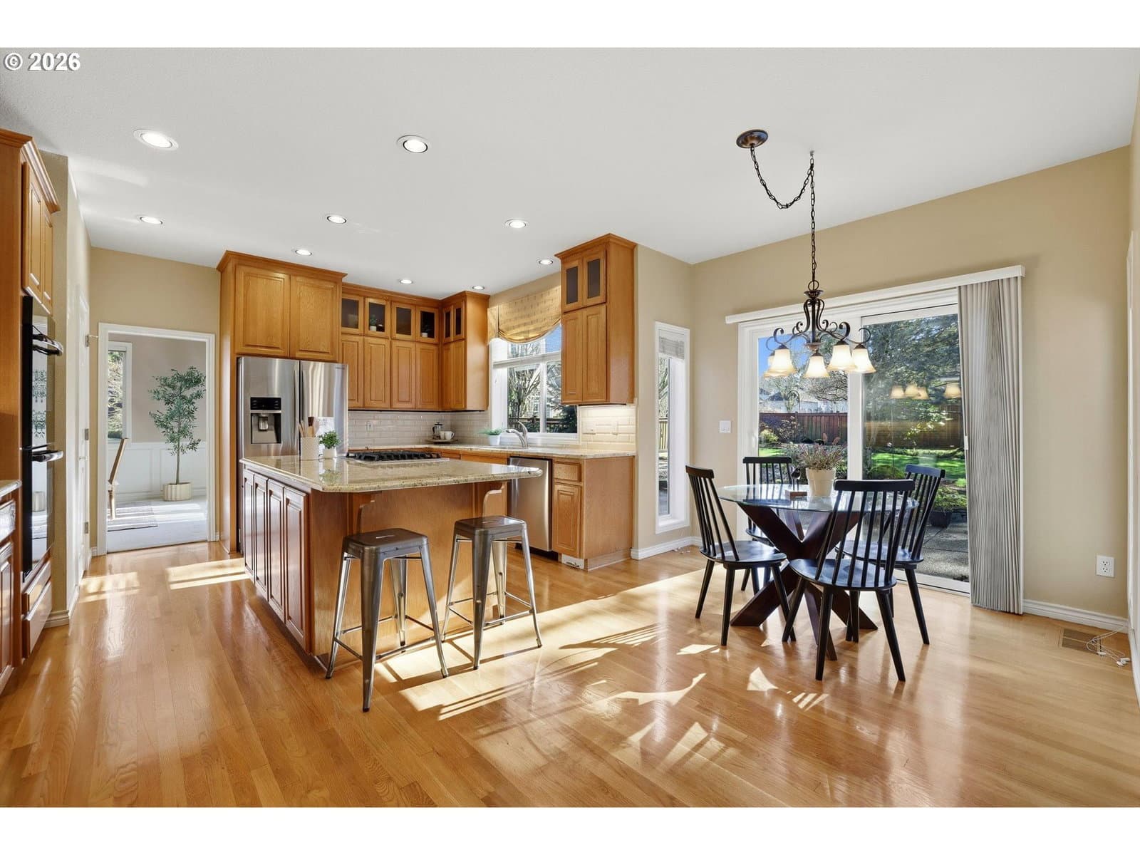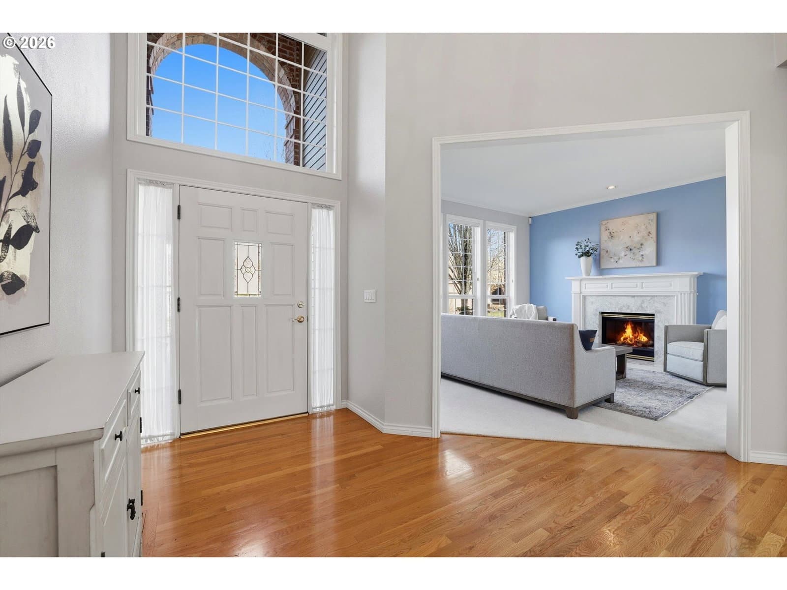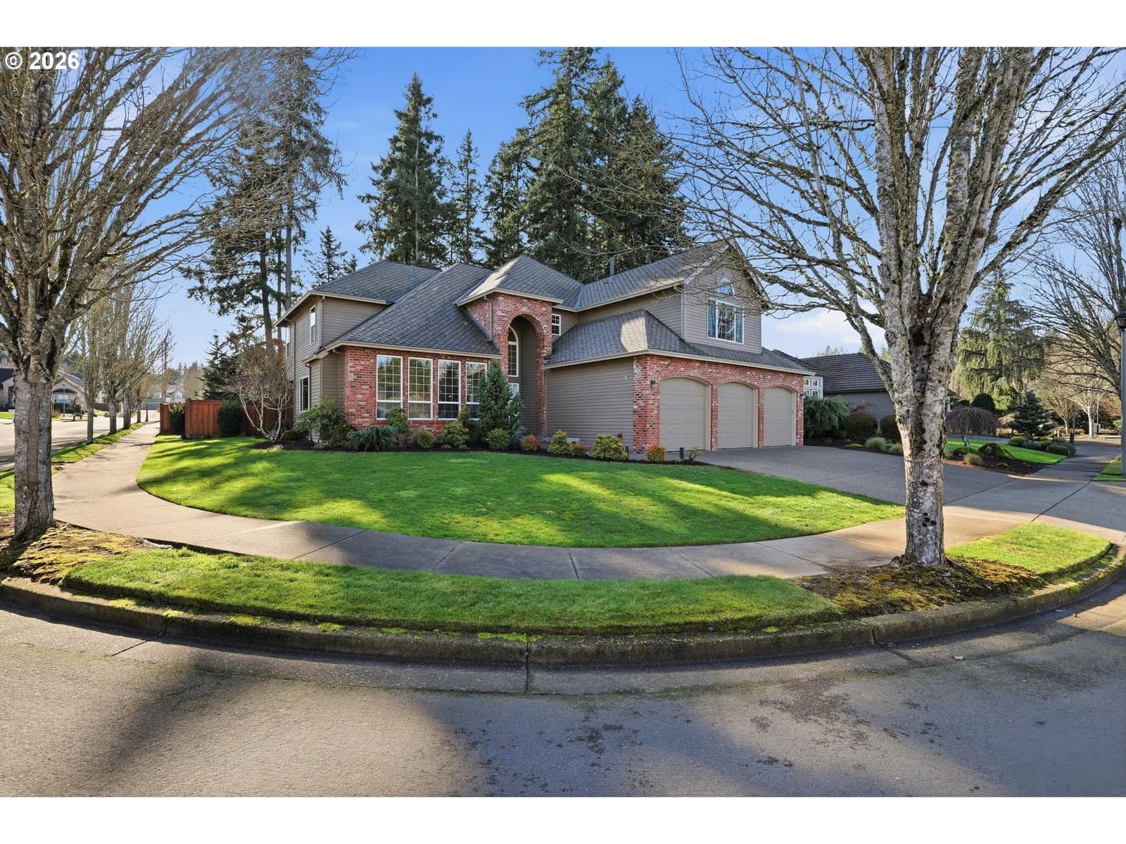 Welcome to Fuller Street, a beautifully maintained home offering generous space, timeless character, and a warm, welcoming feel throughout. The heart of the home is the spacious and functional kitchen featuring granite countertops, a gas Jenn Air cooktop, double ovens, Bosch dishwasher, custom cabinet pull outs, hardwood floors, and a sunny eat in nook that makes everyday living easy. Entertain with ease in the bright, spacious dining room with French doors that open to a covered patio and dedicated covered BBQ area, creating seamless indoor outdoor flow. The living room offers large windows, elegant ceiling molding, and a cozy gas fireplace with marble surround. The oversized primary suite is a true retreat with its own fireplace, windows on two sides for beautiful natural light, and a large walk in closet, plus a spa like bath with soaking tub, double sinks, and a dedicated makeup vanity. Two additional spacious bedrooms, a generous office with large closet, and a flexible bonus space over the garage provide room for work, play, or guests. Outside, enjoy a park like corner lot with mature landscaping, sprinkler system, and a bubbling rock water feature that draws birds and adds a peaceful touch. Three car garage and a prime location close to parks, Tualatin High School, and major commuter routes complete the picture. A home that has been lovingly cared for and ready for its next chapter.