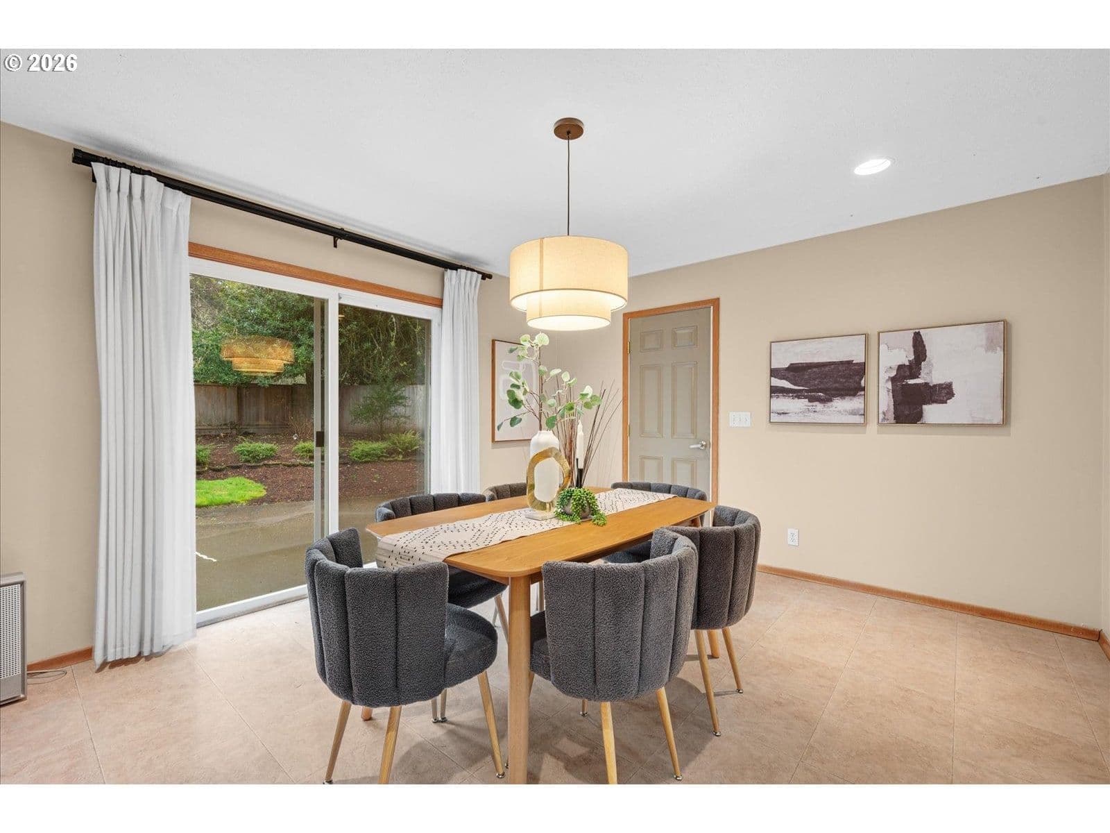 This charming one-level home offers beautiful curb appeal with mature landscaping and a fully fenced, level yard perfect for entertaining or relaxing outdoors. This beautifully maintained home has a great floor plan designed for easy living. You’ll find inviting wood floors, a wood-burning fireplace, and large picture windows that fill the home with natural light. The updated kitchen features modern shaker cabinetry, a subway tile backsplash, tile flooring, an eat-at bar, and a built-in desk for added functionality. A sliding door leads to a large patio, perfect for gatherings or quiet evenings outside.