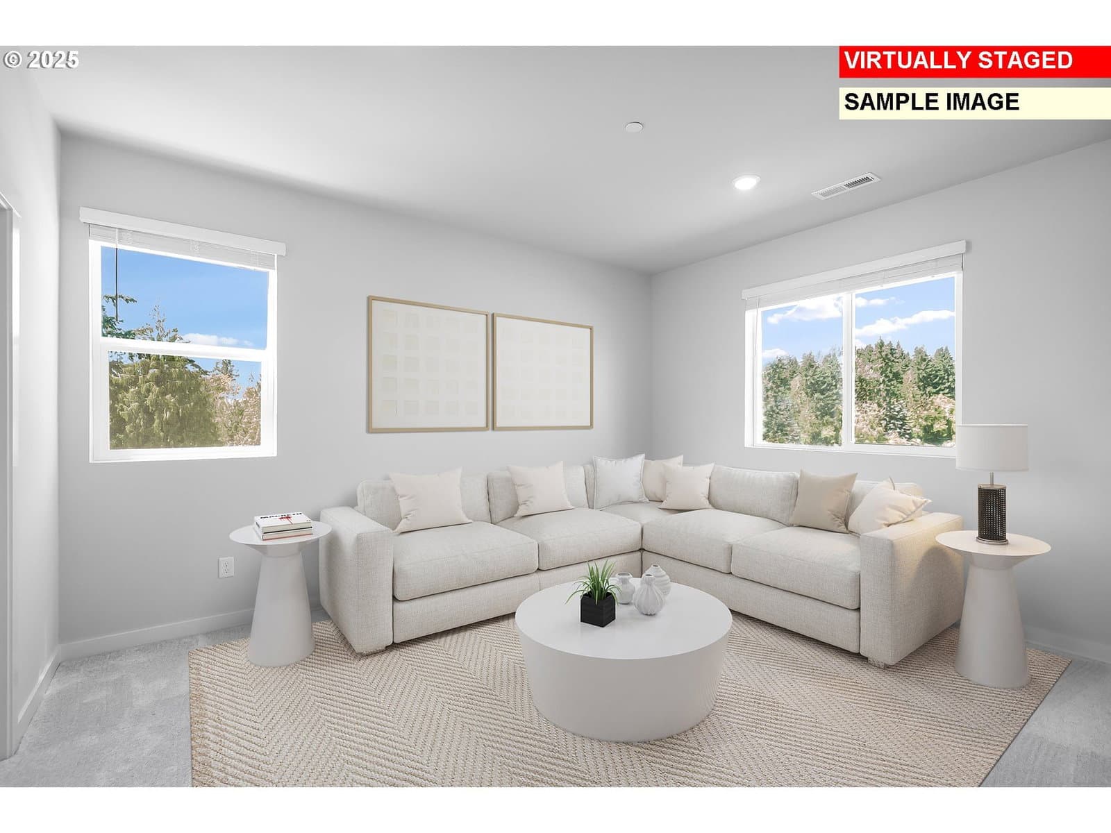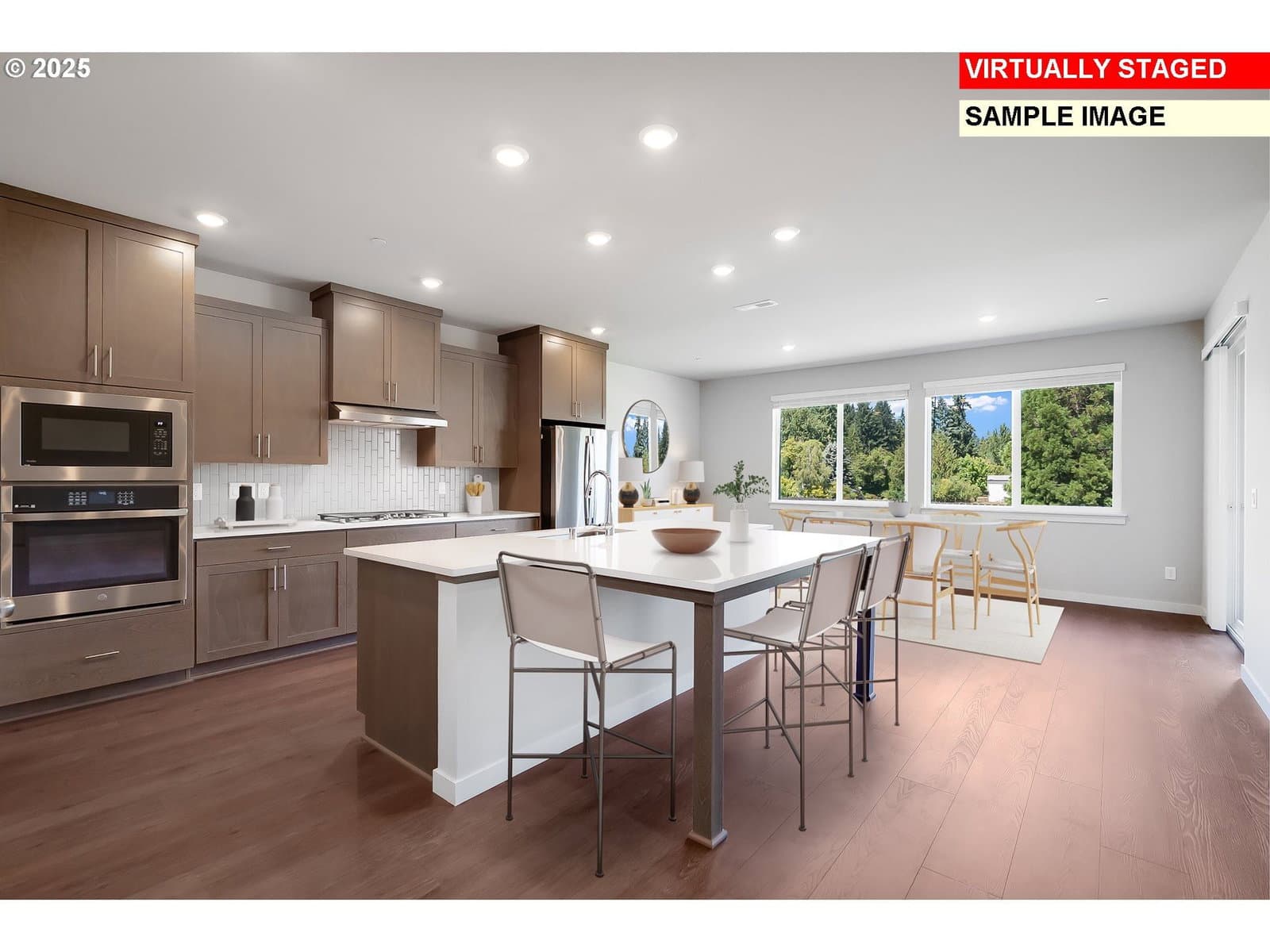 This two-story new construction corner Hammond home in Salmon Creek Ridge features a three-car garage and easy access to I-5, retail, and Salmon Creek trails. The first floor includes a den and private bedroom with bath, along with an open kitchen, dining area, and great room warmed by a fireplace. Upstairs, a loft connects three bedrooms and a primary suite with a soaking tub and walk-in closet. White cabinets, quartz countertops, and a vertical tile backsplash enhance the kitchen. LVP flooring runs through the entry and kitchen, and LVT covers baths and laundry. The primary bath includes a tiled shower with a separate tub. Wooden shelving, landscaping, and fencing complete the home. Central air conditioning, a refrigerator, washer and dryer, and blinds are included. Located on homesite 56, this home is move in ready. Rendering is artist conception only. Photos are of a similar home, features and finishes will vary. Flex credit/closing cost incentive available when financing with preferred lender! Use towards rate buydown and closing costs.