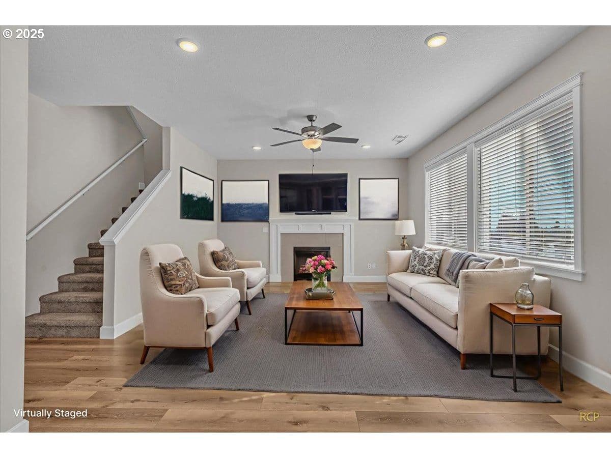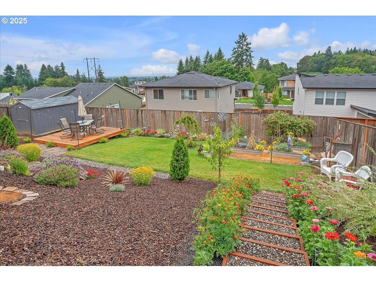 Offering exceptional quality and modern comfort, this gorgeous home showcases impeccable stewardship and thoughtful design. Bathed in natural light, it is truly move-in ready and offers abundant space for everyone with four comfortable bedrooms and a versatile main floor study. The living room features a welcoming gas fireplace and a ceiling fan for year-round comfort. The adjoining dining room has a sliding door to the covered deck, creating a seamless flow for entertaining and relaxation. The modern kitchen has a large quartz-topped island, gas range, stainless appliances, pantry, and a convenient eating bar—perfect for both everyday meals and special gatherings. The primary suite includes a ceiling fan, a spacious walk-in closet, and ensuite bath with double sinks and an oversized full tile step-in shower. The convenient upstairs utility room is equipped with built-in cabinets for storage and organization. Central air conditioning ensures comfort throughout the seasons. Beautifully landscaped grounds include a sprinkler system, fenced backyard, sundeck that extends your outdoor living space, garden area, and a tool shed for additional storage. Ideally situated in Elk Ridge Estates-St. Helen’s premier new community with territorial views and a sought-after lifestyle and just a quick 35-minute drive to the Hi-Tech corridor and PDX.