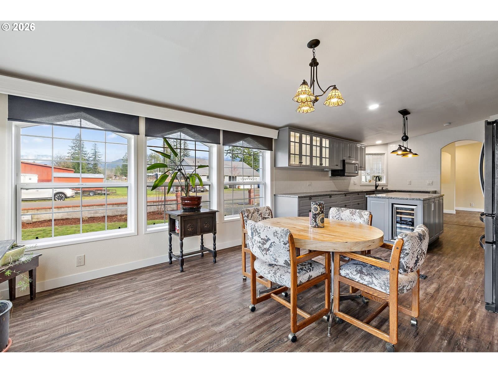 Well maintained home with large garage/shop, sunroom and garden shed. Large kitchen is updated w/granite counter tops, custom cabinetry, wine fridge and SS appliances. Home has vinyl laminate throughout, propane stove in LR, newer heat pump, new metal roof & septic pump and wired for generator. Primary bath with tile shower & floors and custom cabinetry. Yard has curbs for trim work with a total fenced back yard, raised garden beds and covered patio. Garage includes a half bath and pellet stove for comfort.