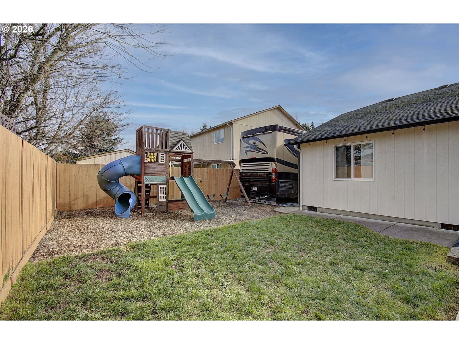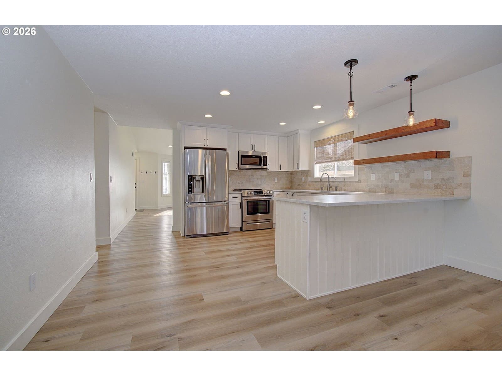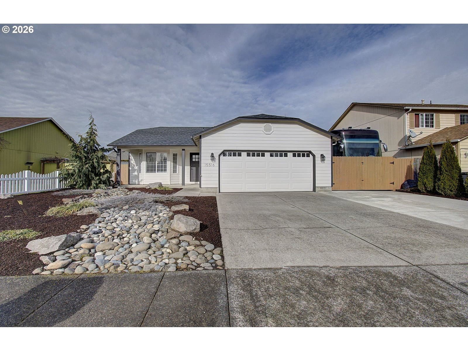Single-level 3-bedroom, 2-bath home featuring a gas fireplace, two-car attached garage, and RV parking pad. The entire home has been updated and renovated in recent years, including a newer air conditioning unit for added comfort. The primary bathroom offers a tiled shower, and the well-laid-out living spaces make this home easy to enjoy and maintain, all in a convenient, desirable location.