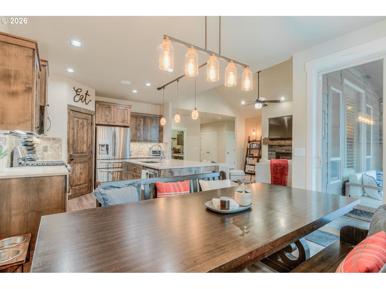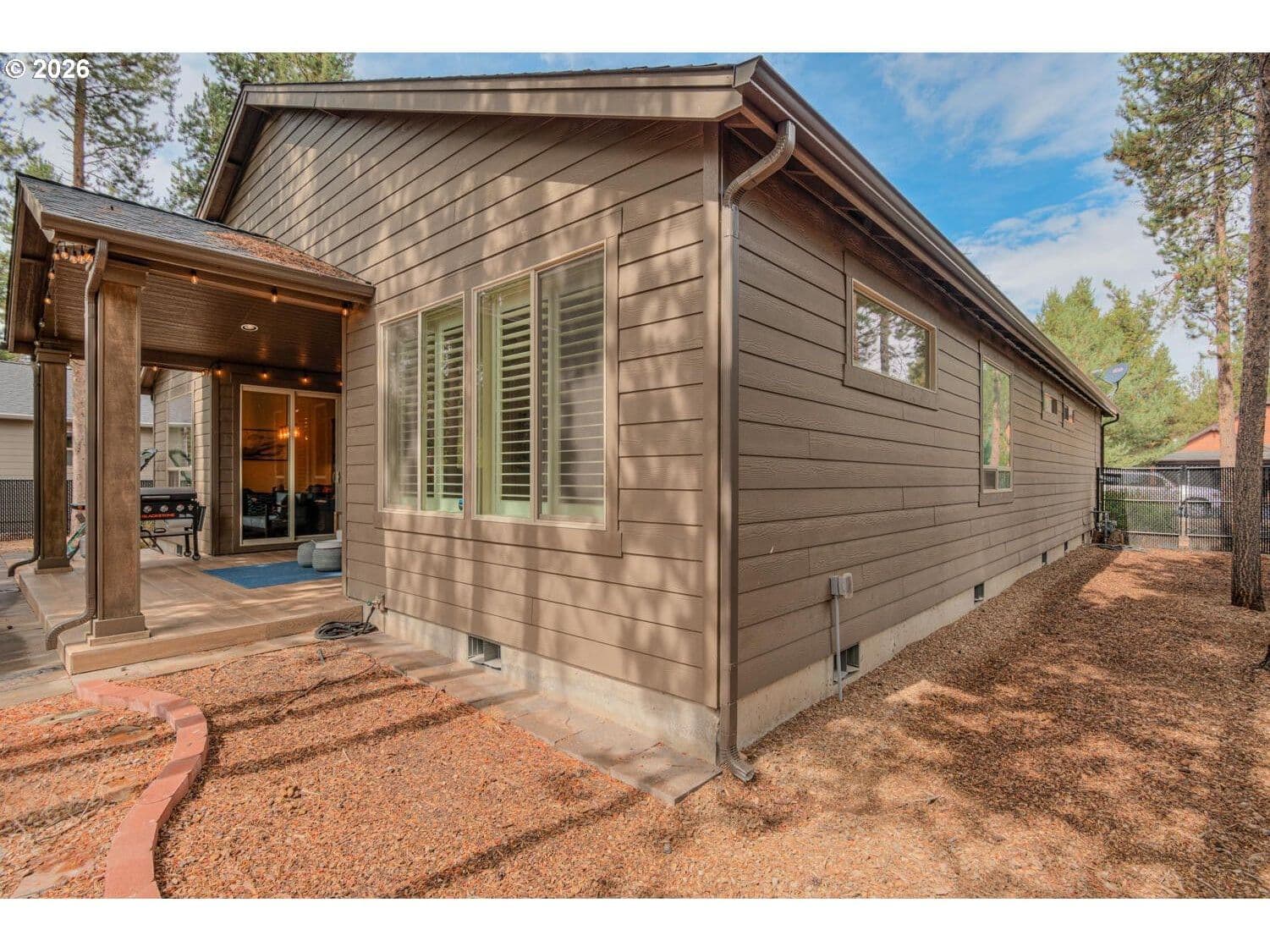 Crescent Creek living at its best! This well-maintained single-story home sits on a larger lot and features a triple-car garage with an epoxy floor and built-in storage. The open floor plan, vaulted ceilings, fireplace, and well-kept finishes create a warm, welcoming ambiance. Sonos in-ceiling speakers and Lutron lighting elevate the kitchen space. The primary suite offers a luxurious retreat with a dual vanity, walk-in closet, soaking tub, and shower. The backyard is a private escape, featuring a covered deck with lighting and a TV, plus plenty of room for outdoor furniture. The fenced and gated yard also includes a storage shed and garden spaces, perfect for relaxing or gardening. Enjoy a vibrant community with a clubhouse, sports court, community spaces, and paved walking trails. This home offers the perfect blend of comfort, style, and community living.