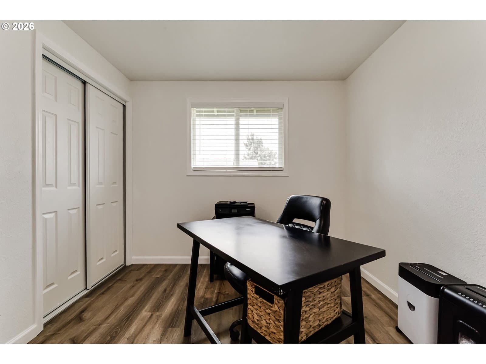 Multiple offer situation. Will review all offers Sunday at 4:00pm. Single-story home featuring an updated kitchen with a large island and seating, quartz countertops, and stainless steel appliances. The kitchen opens to the family room with french doors leading to a covered back patio—perfect for indoor/outdoor living. Cozy up to the 6-year-old wood stove on cooler evenings. Enter into a welcoming living room with laminate flooring throughout the entire home, vinyl windows, and newer interior paint. The primary suite includes a private, updated bathroom, and both bathrooms have been tastefully remodeled. Roof is approximately 6 years old.