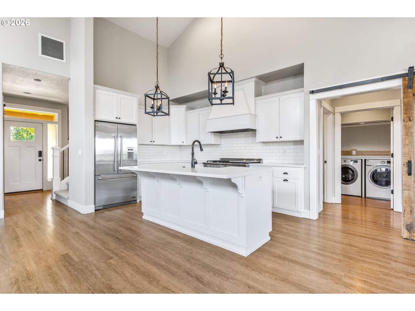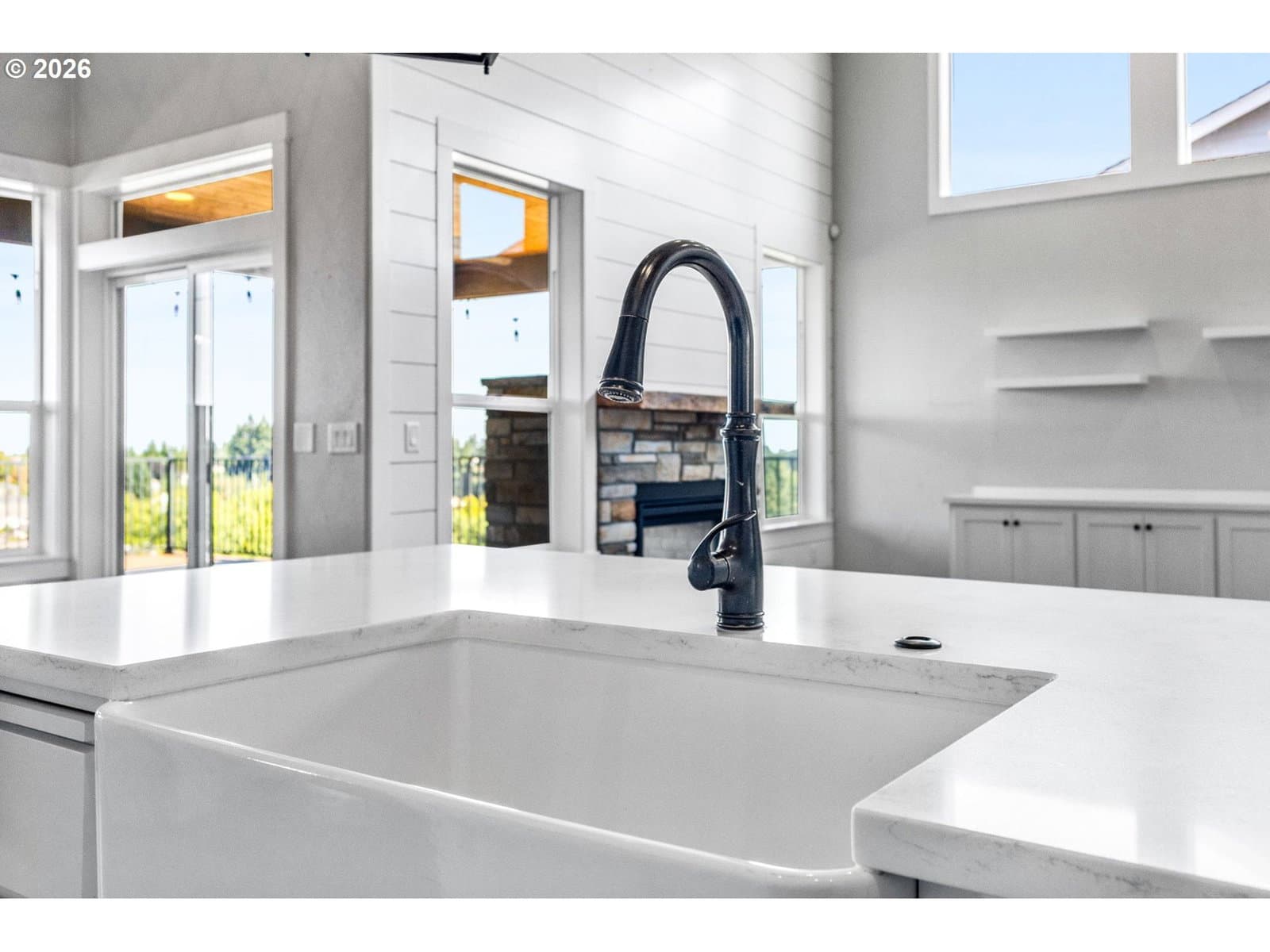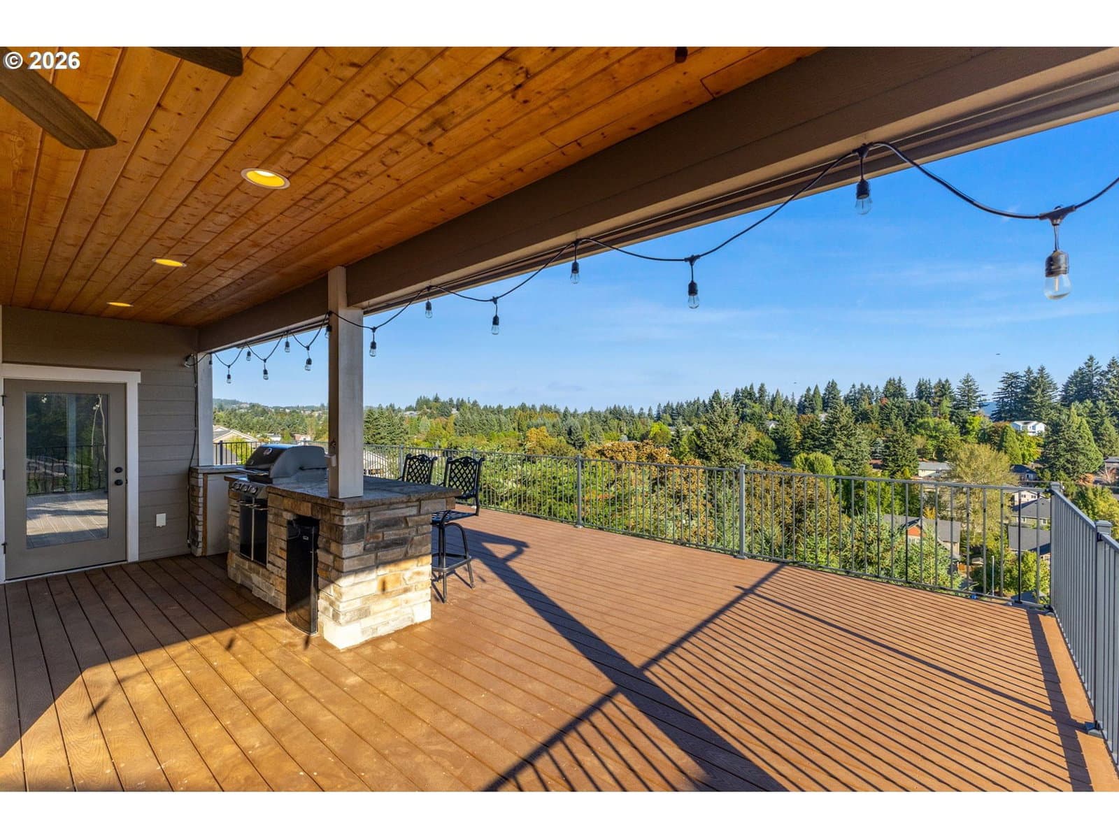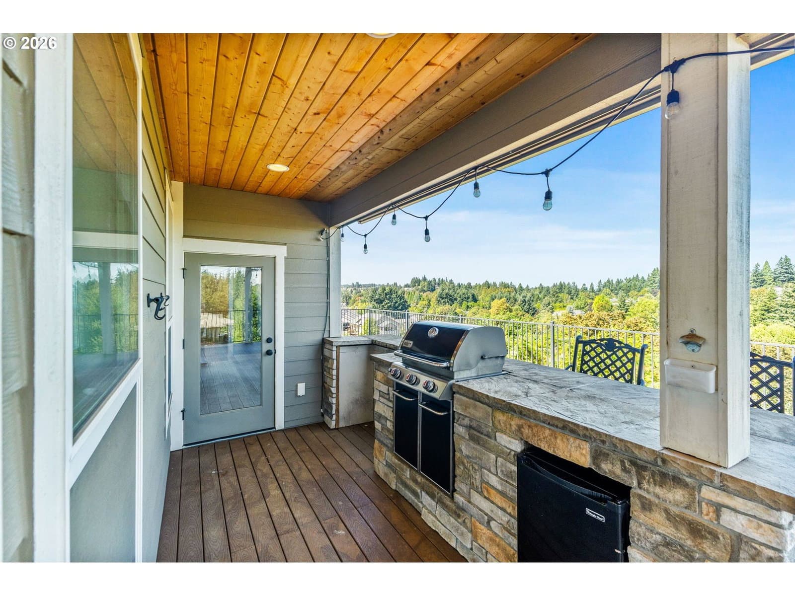 Enjoy stunning Mt. Hood views from this beautiful home designed for both comfort and entertaining. The main level offers a generous primary suite with a large walk-in closet and spa-style en-suite bath, plus a second bedroom and a chef-inspired kitchen that opens to a light-filled great room. An expansive deck captures breathtaking sunrise-to-sunset scenery. A dual-sided fireplace seamlessly connects the indoor living space to a covered outdoor lounge, creating an inviting indoor-outdoor flow.