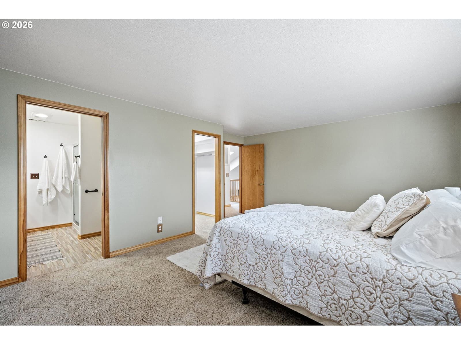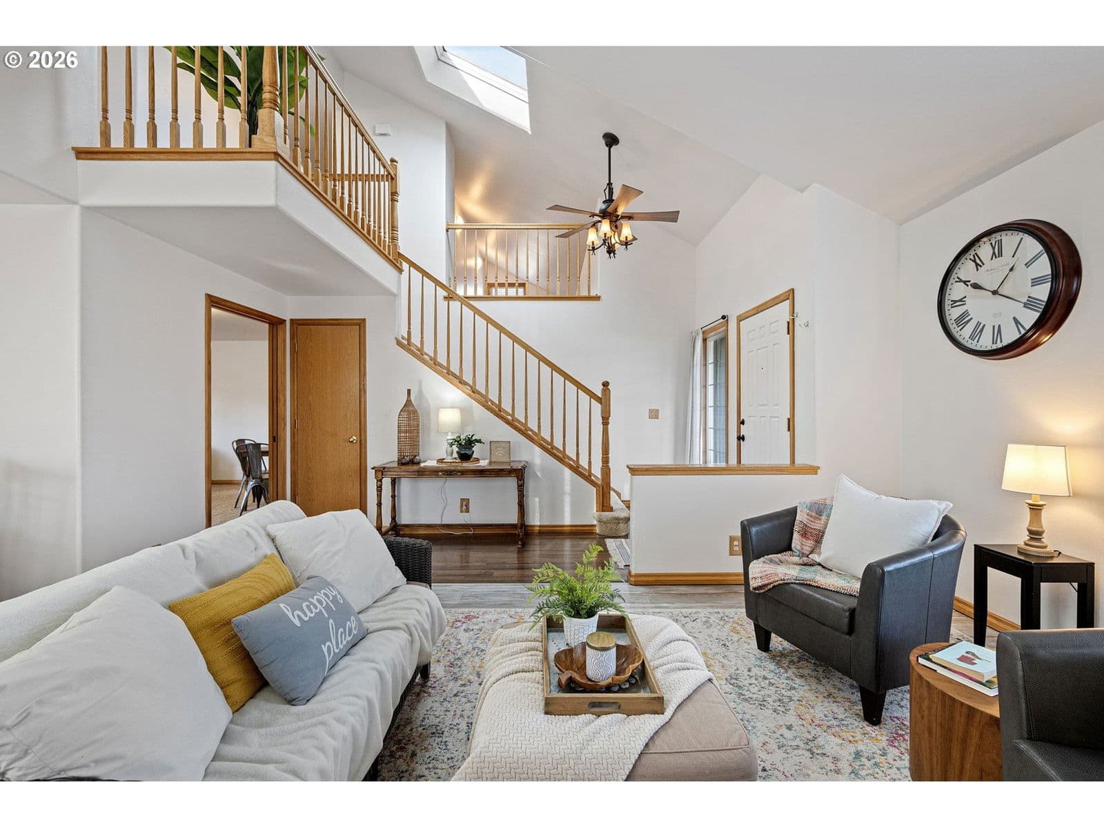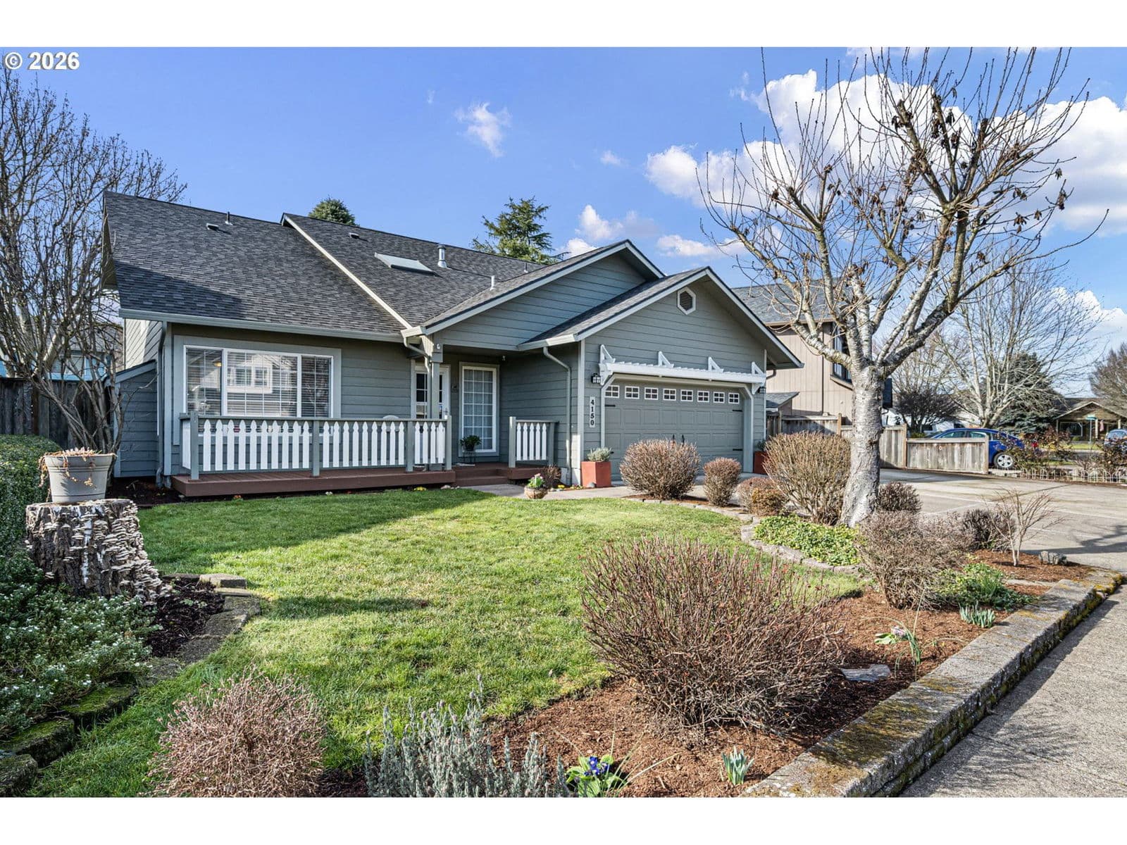 Great location and well-maintained throughout, this home welcomes you with a charming front porch. The floor plan offers flexible use of space, featuring a combined living and dining area with vaulted ceiling and lots of natural light. The kitchen opens to the family room, creating a great-room feel, with the option for the family room to serve as a larger dining space if desired. A full bedroom and adjoining bathroom are located on the main level. Upstairs includes a bonus area, a spacious primary suite with full bath and walk-in closet, and two additional well-sized bedrooms.The backyard is easy to maintain and includes a covered deck, standing raised garden beds and a tool shed. There is a large RV parking area. The roof was replaced in 2024, and the exterior was painted in 2025, water heater replaced in 2025.
