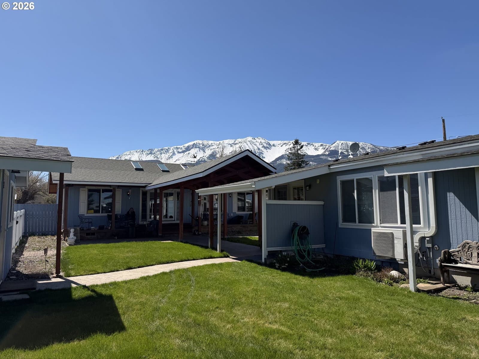 Duplex in Joseph! Discover exceptional space, flexibility, and breathtaking scenery in the heart of downtown Joseph! Situated on three city lots, this unique property offers room to live, create, and invest — all just minutes from Wallowa Lake and surrounded by stunning mountain views. The 1,885 sq. ft. main home features 3 bedrooms, 2 baths, plus an office — perfect for remote work or creative pursuits. Warm and welcoming, the home offers comfortable living spaces designed for both everyday life and entertaining. Connected by a covered breezeway with stamped concrete and porch, you’ll find an impressive 1,056 sq. ft. studio/guest house with its own separate utilities. This versatile space includes a half bath, kitchenette, daybed area, vaulted ceilings, skylights, and French doors that open to the porch. Whether you envision guest quarters, an art studio, home business, rental income opportunity, or multi-generational living, this space is ready to adapt to your needs. Car enthusiasts and hobbyists will appreciate the attached 2-car oversized garage (738 sq.ft) plus a detached 252 sq. ft. workshop equipped with both 110 and 240 volt power — ideal for tools, projects, or additional storage. Outdoors, the expansive triple-lot setting offers a garden area with underground irrigation front and back, and garden shed, providing plenty of space to grow your own produce, flowers, or simply relax and take in the scenery. With ample room to expand, entertain, or enjoy privacy of the fenced back yard. Located in vibrant downtown Joseph, you’re close to local shops, dining, galleries, and community events — while still enjoying quick access to Wallowa Lake, hiking trails, and endless outdoor recreation. This is more than a home — it’s a lifestyle opportunity combining flexibility, location, and panoramic mountain views. Whether you're seeking full-time living, creative space, or income potential, this property delivers it all in one extraordinary package.