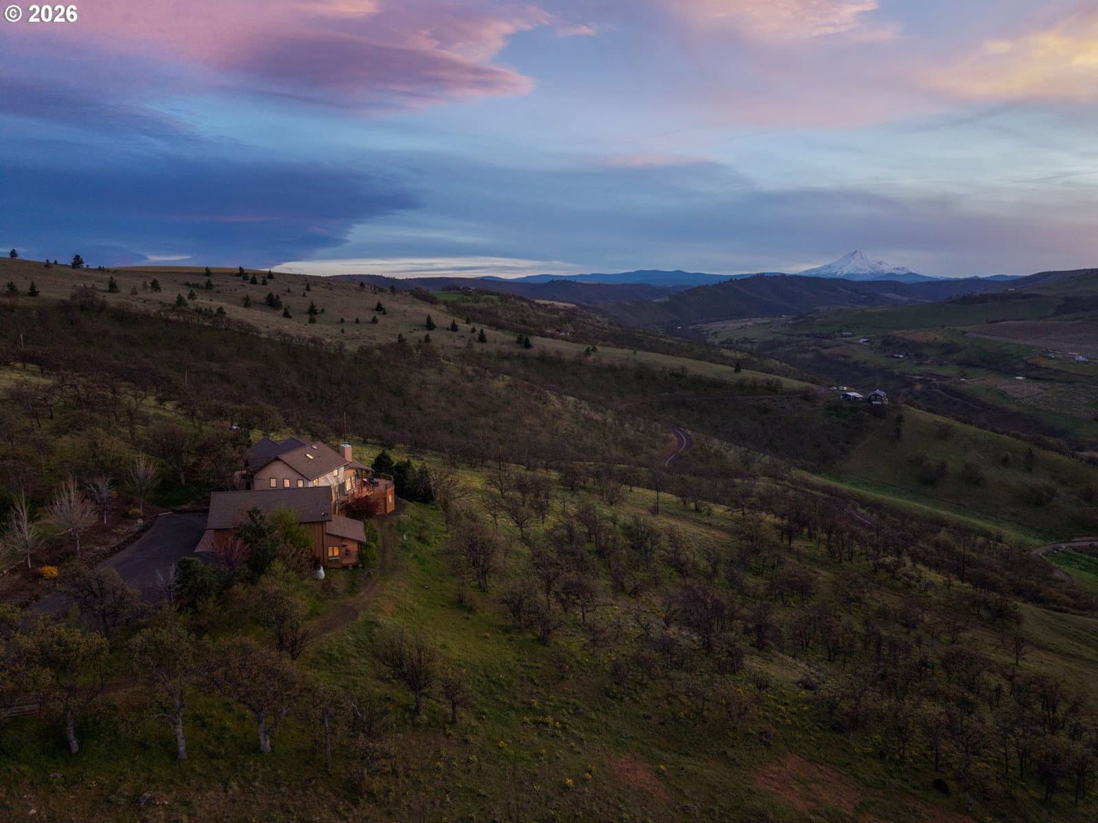 Private Columbia Gorge Luxury Estate on 9 acres with million dollar views! Unparalleled access to world-class kiteboarding, windsurfing, scenic hiking trails, and renowned salmon fishing just moments from your doorstep. Perfectly positioned to embrace the very best of the Gorge’s outdoor lifestyle, this property delivers a rare combination of adventure, privacy, and natural beauty.This custom-built Columbia Gorge estate showcases breathtaking vistas of the Columbia Gorge valley, Mt. Hood, Mt. Adams, surrounding orchards and vineyards, and the Columbia River. Designed in a Northwest contemporary style, the home features a gourmet kitchen, a luxurious primary suite on the main level, and detached guest quarters—ideal for hosting or multi-generational living.An oversized two-car garage with dedicated workspace and an additional shop provide ample room for hobbies, storage, or creative pursuits. Throughout the home, you’ll find detailed high-end craftsmanship and thoughtful design elements that elevate everyday living. The exquisite architecture paired with the natural beauty of the setting creates a truly inspiring retreat—where privacy, luxury, and the outdoors come together seamlessly.