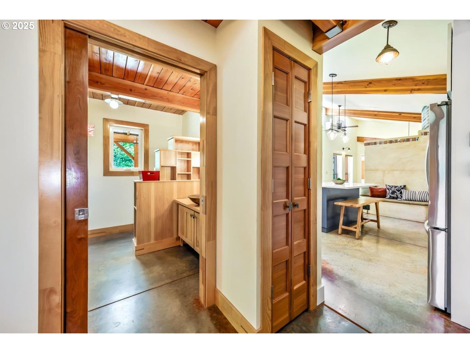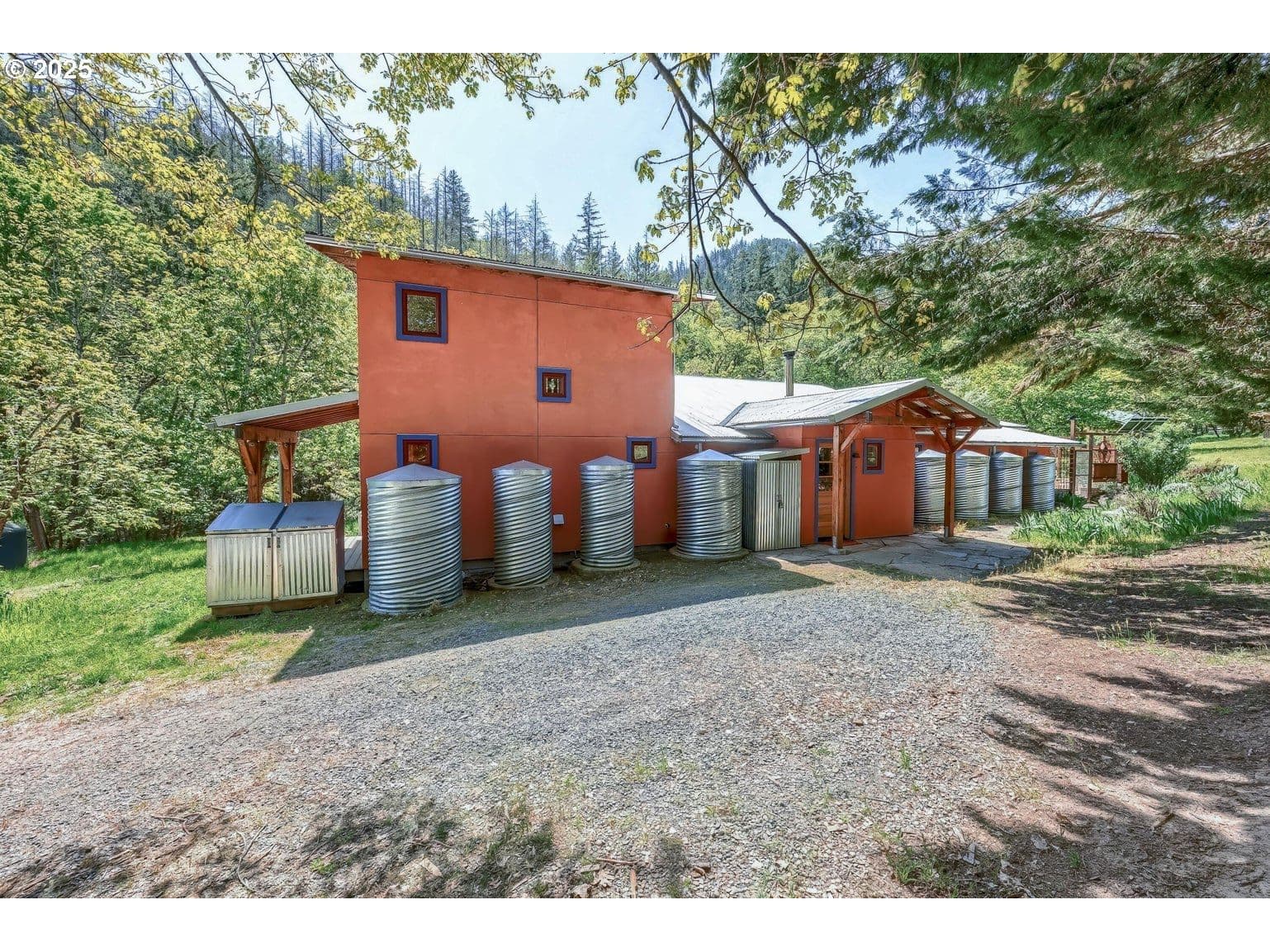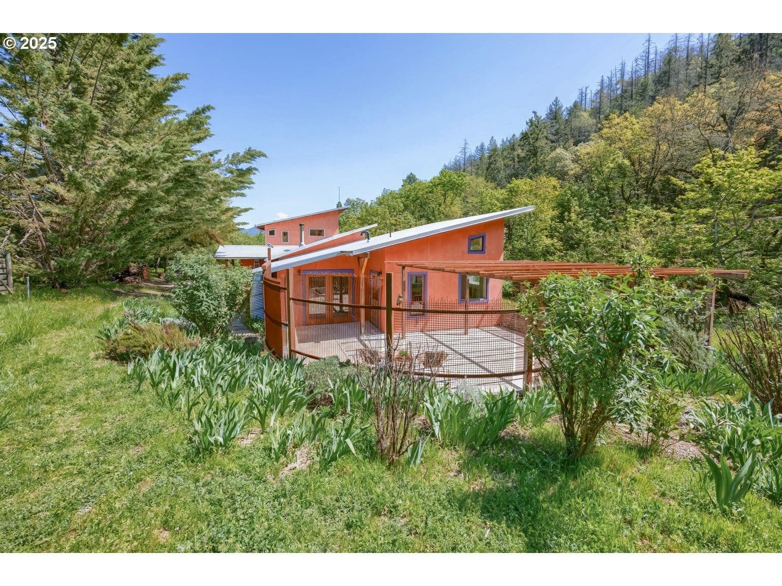 Discover this bright and modern home tucked away on 5 private acres, just minutes from Talent and Ashland. Expansive, sun-drenched fields are surrounded by mature oaks and conifers. Already in place are two fenced gardens, raised beds, a generous workshop, and thriving fruit trees. This property boasts extensive water resources for hobby farming and animals, including a seasonal creek, rainwater collection, and 43,000 gallons of storage. Inside, a custom-built masonry heater anchors the living space, complemented by large south-facing windows that invite warmth and natural light. The primary suite, renovated in 2023, offers a relaxing, airy retreat with scenic views and a luxurious shower. Two versatile second-floor bedrooms, ideal as home offices, overlook the valley. Superior thermal performance is provided by insulated SIP panel framing. A versatile bonus cabin is ready for your creative projects or personal retreat. Enjoy the best of urban convenience and rural tranquility.