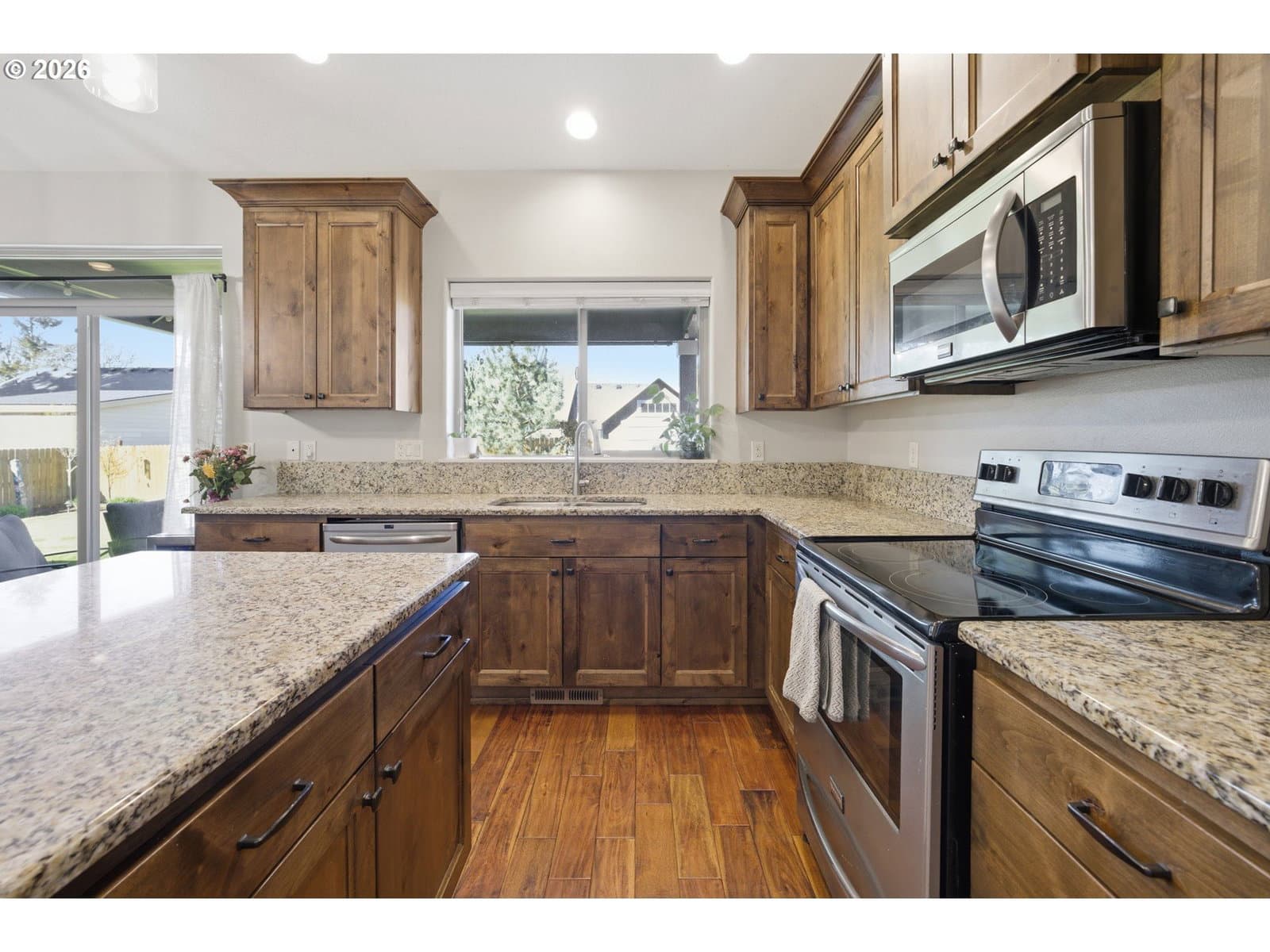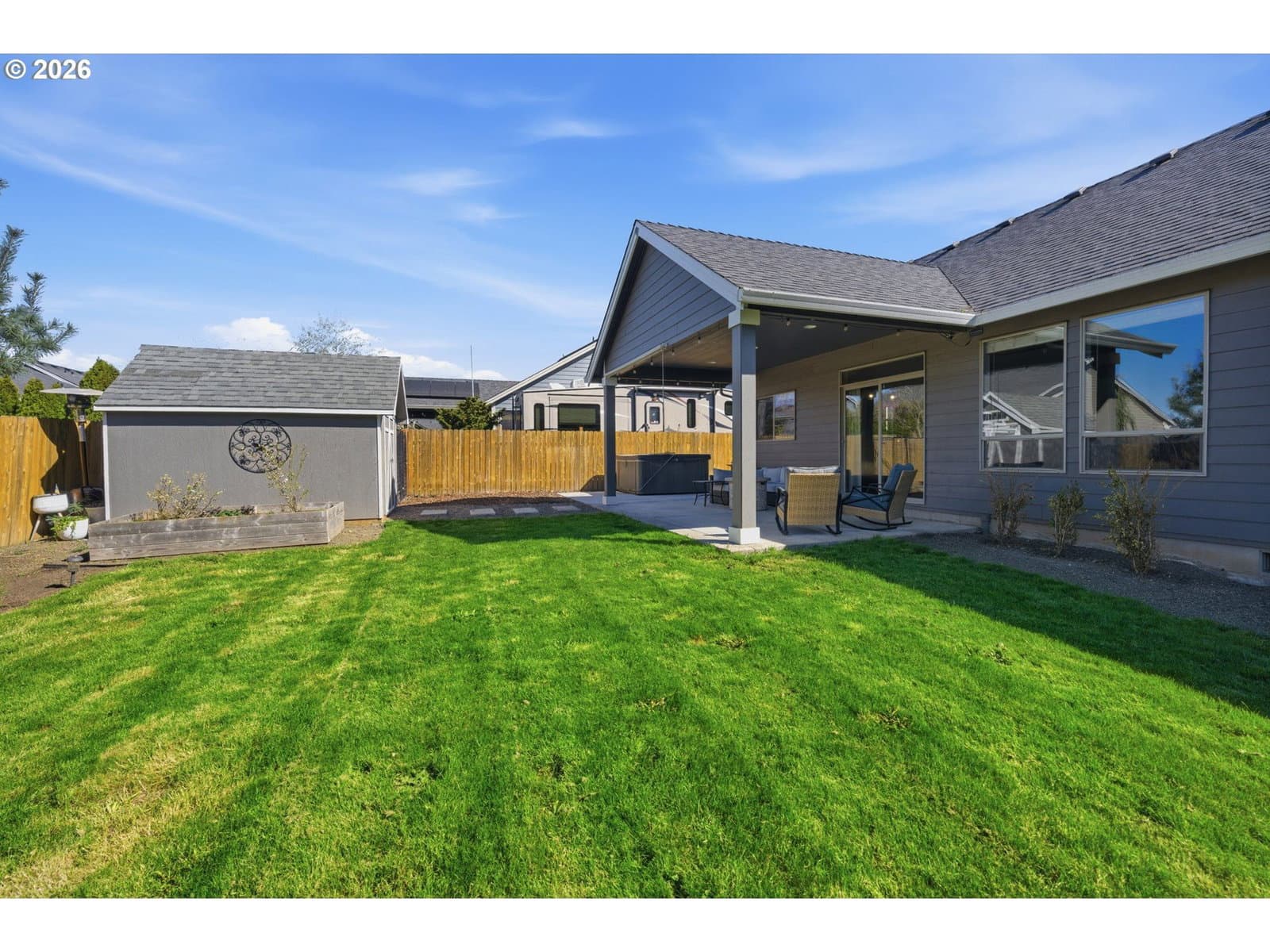 Nestled in the heart of quaint Carlton, this beautifully maintained single-level home on a hard to find 8321sf lot lives larger than its footprint and offers an inviting blend of comfort and style. The great room floor plan is both functional and comfortable - perfect for everyday living, featuring soaring, vaulted ceilings complemented by an abundance of natural light. The recently updated bathrooms add a touch of modern elegance with stunning luxury vinyl tile, upscale countertops and handsome cabinets. The kitchen offers an XL pantry, a good sized island, stainless steel appliances, warm/rich hardwood floors and beautiful countertops. All of the bedrooms are generous in size and are vaulted. An exceptionally spacious fenced backyard has a lot to offer - a roomy covered patio, a freestanding hot, a fenced dog run, a tool shed, a great space for parking of a boat or trailer and mature landscaping. From the moment you arrive, the charming curb appeal sets the tone for what awaits inside. This lovingly cared for home is truly move-in ready and a standout in desirable Carlton.