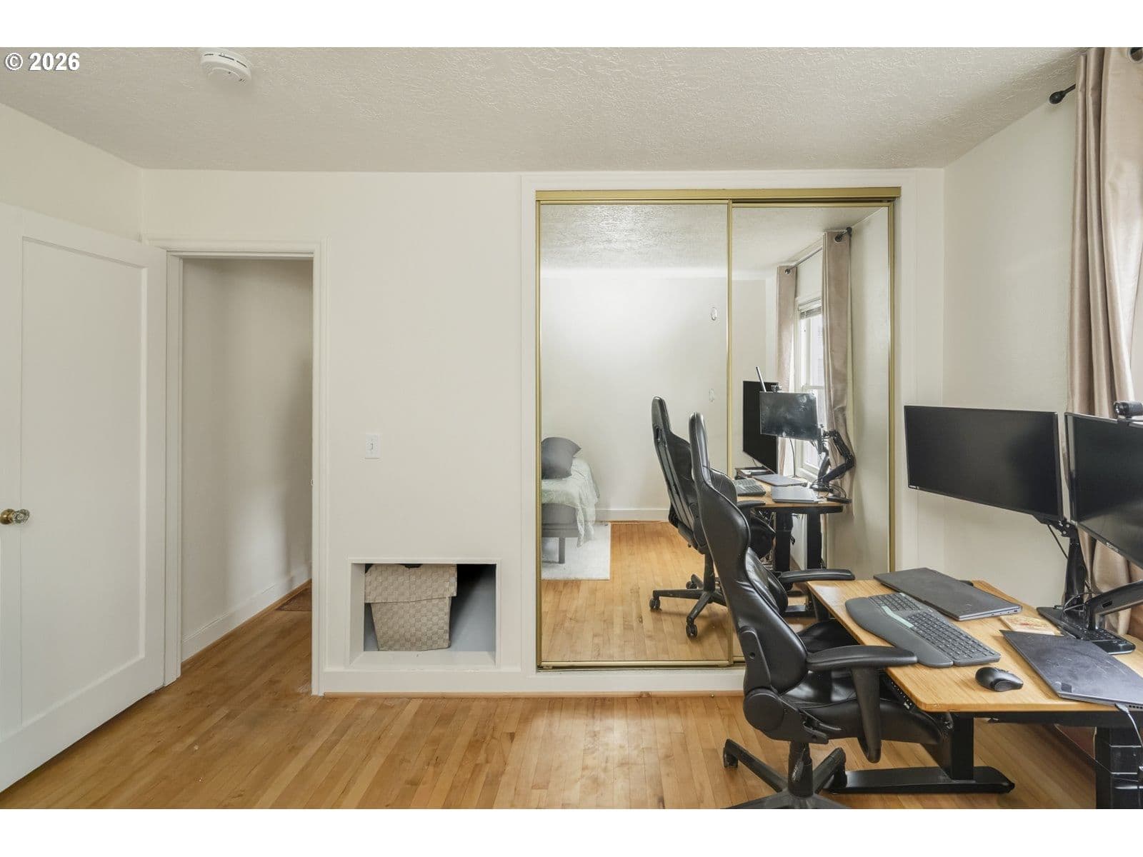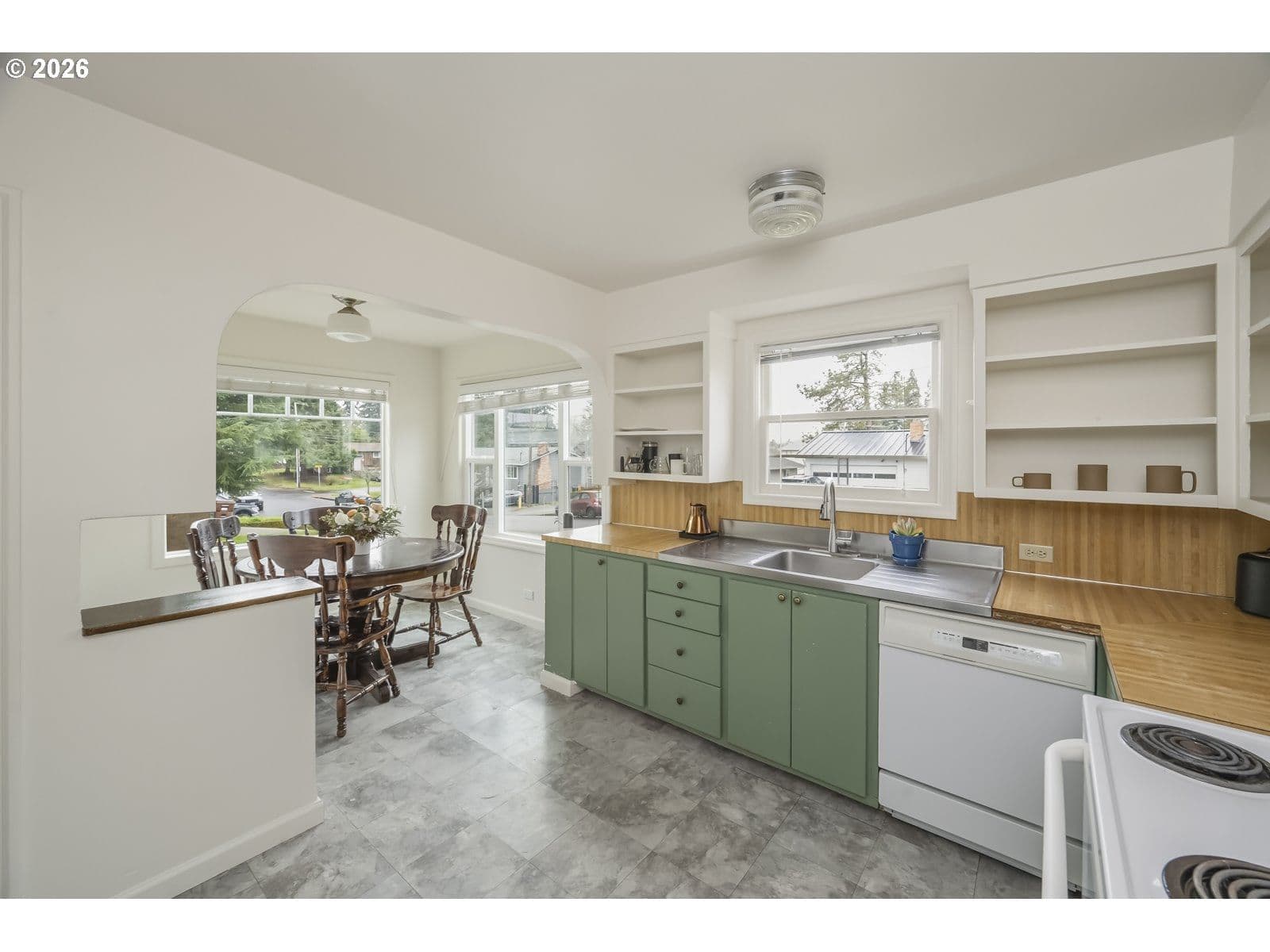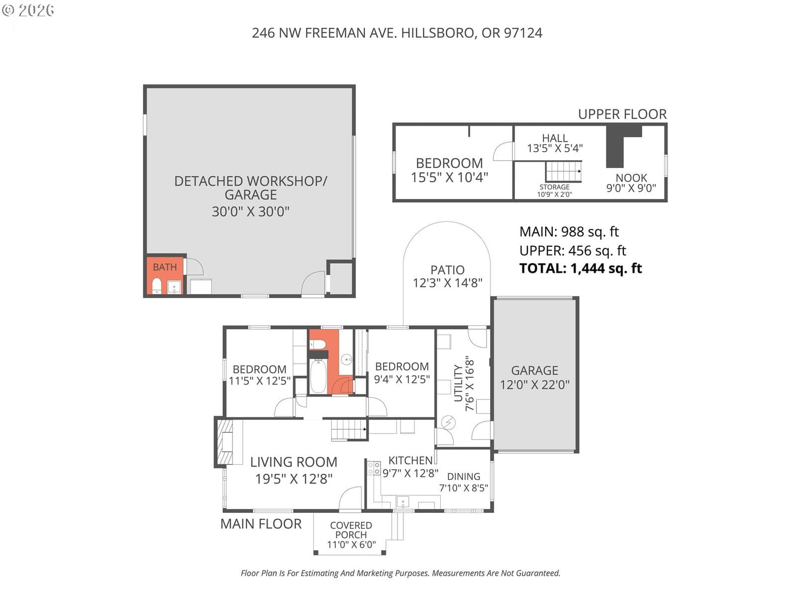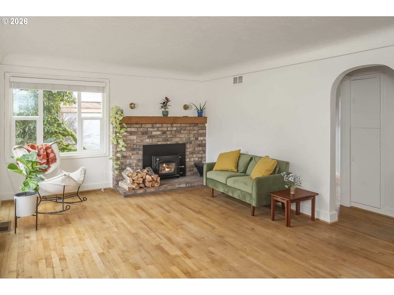 Welcome home to this darling 40's bungalow, with charming archways, coved ceilings, and updated corner windows that fill the home with light. Relax in your private backyard or get to work tinkering in the permitted 30X30 workshop with the half bathroom. The attached garage passes through to the backyard for easy access, as well as the alleyway behind! The fireplace chimney has been recently tuck pointed, and the new woodstove makes for cozy evenings in the living room. The home comes equipped with a high efficiency furnace, newer gas water heater, stackable washer and dryer, and newer 200amp electrical panel. Nearby to parks, golf course, downtown Hillsboro amenities, and public transportation. Roof, gutters, and furnace were just cleaned and serviced, and the interior was freshly painted so you can move right in! [Home Energy Score = 2. HES Report at https://rpt.greenbuildingregistry.com/hes/OR10243390]
