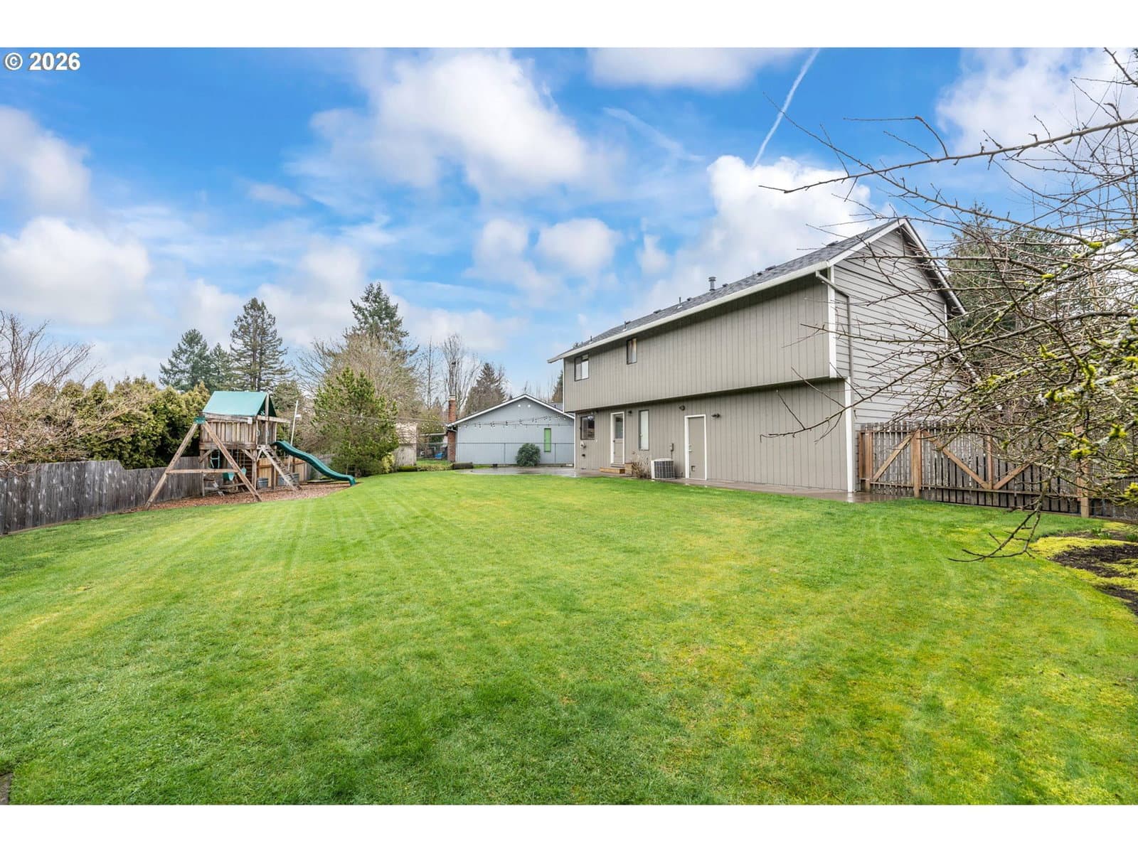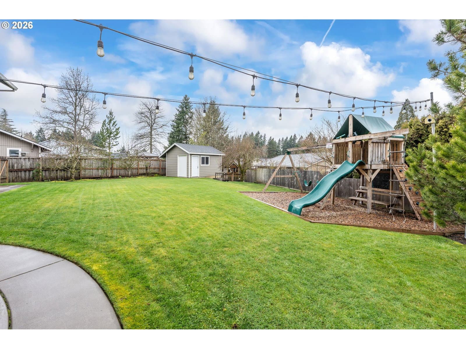 Open Sun 02/22, 1:00-4:00pm* Desirable Tualatin location in a wonderful neighborhood! This move-in ready home sits on a large, level lot with a beautifully maintained backyard perfect for relaxing or entertaining. Recent updates include brand-new carpet, fresh interior paint in the main living areas, a newer roof (2020), newer kitchen appliances, and updated Hardie Plank siding on the front and sides. Many vinyl windows have also been updated. Enjoy year-round comfort with central A/C and forced air gas heat. Hardwood floors enhance the kitchen, dining, and entry areas. The living room welcomes you with vaulted ceilings and a cozy gas fireplace. The kitchen offers generous pantry storage, and the home features good-sized bedrooms with a functional, inviting layout. The spacious primary suite includes a walk-in closet and private bath with step-in shower. A separate laundry room adds convenience. Outside, the stunning backyard boasts a large patio and deck, newer play structure, mature landscaping, and a 12x16 tool shed with concrete pad. Ideally located near schools, parks, shopping, restaurants, and easy I-5 access. No HOA!