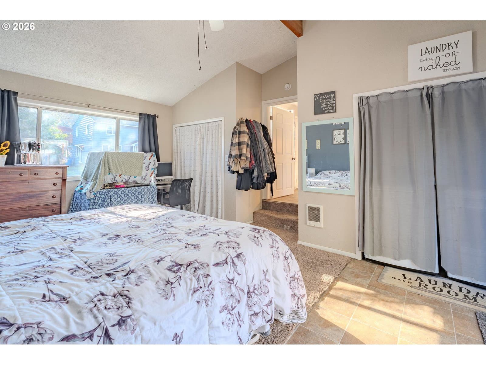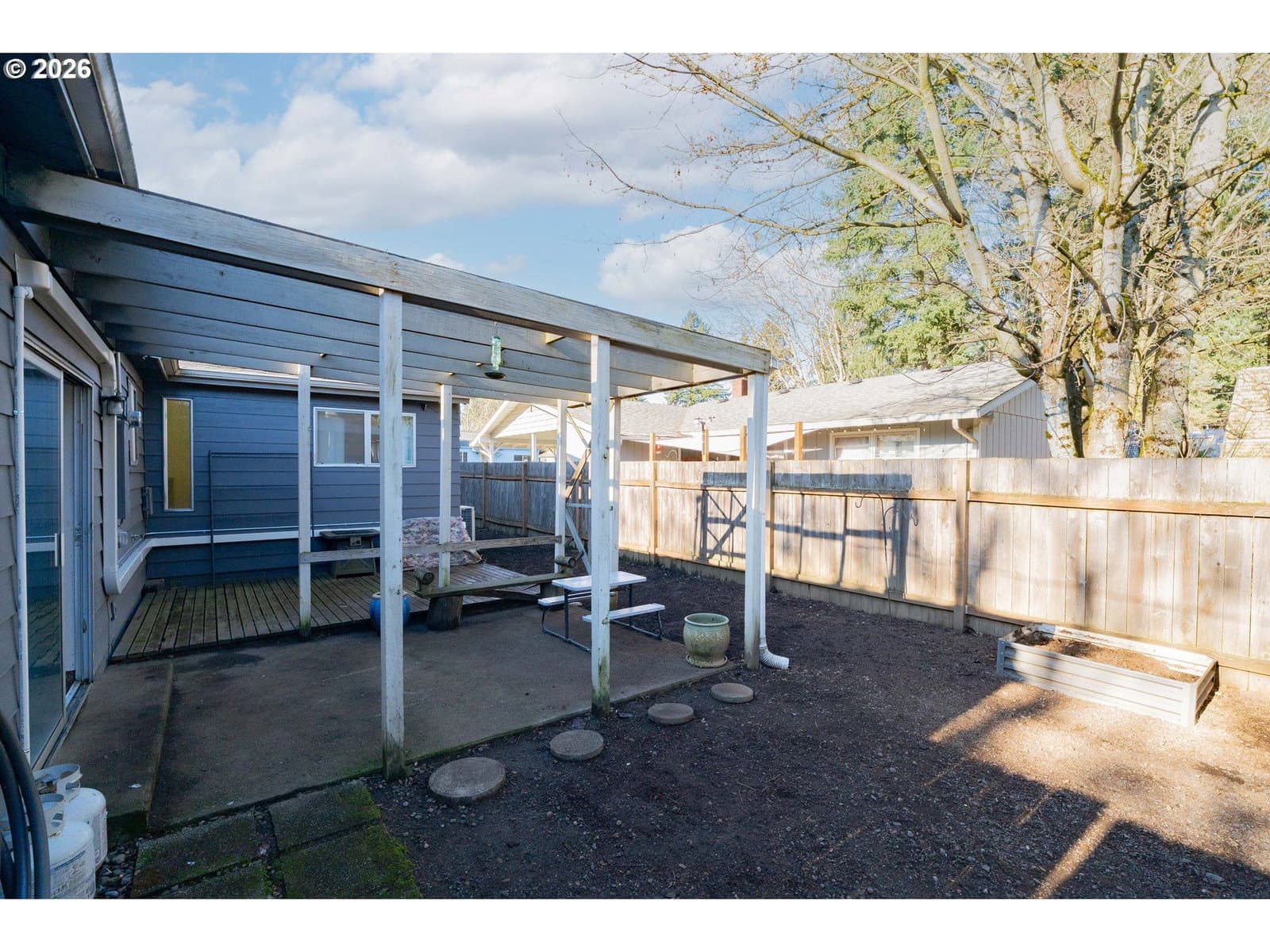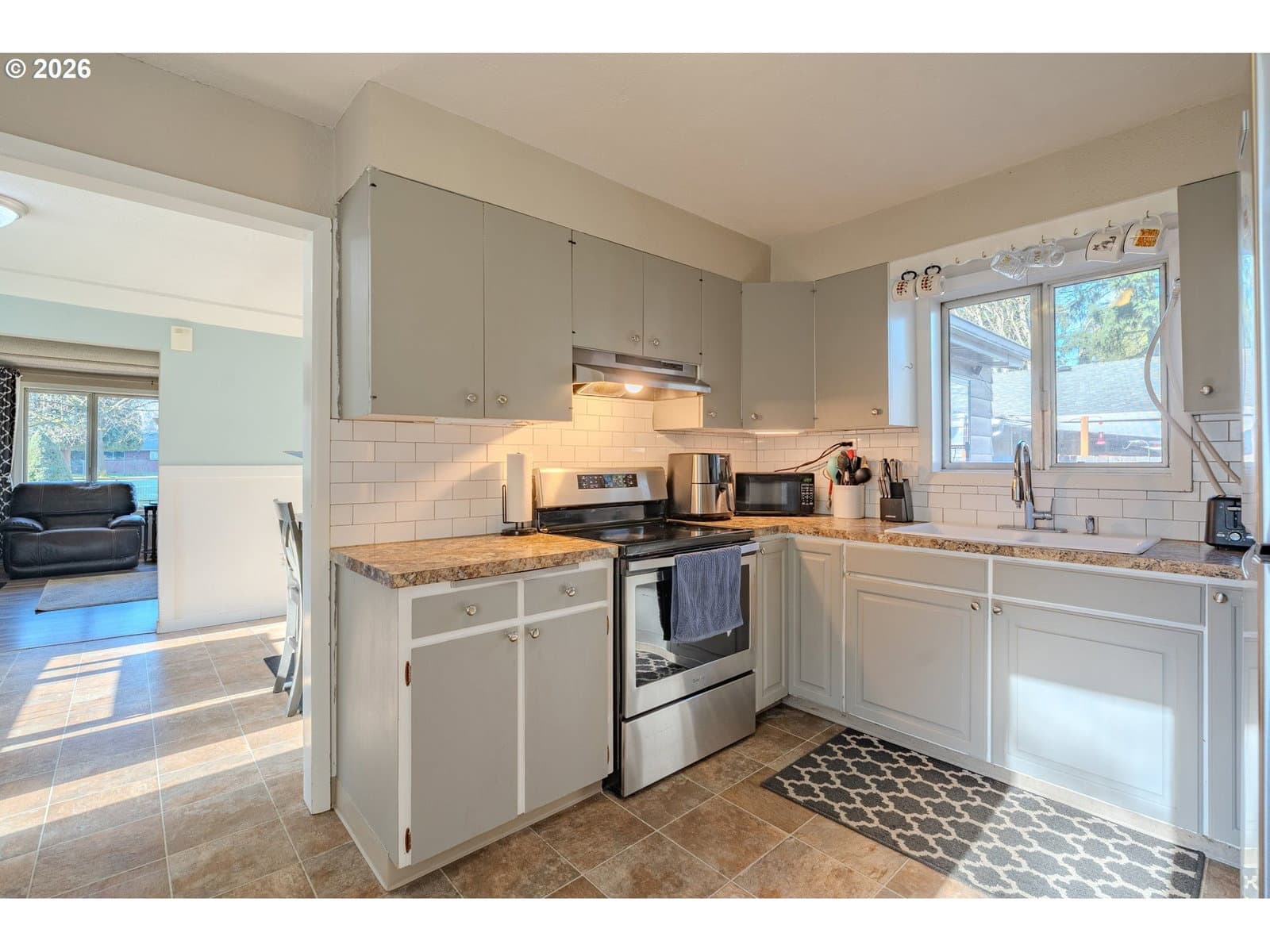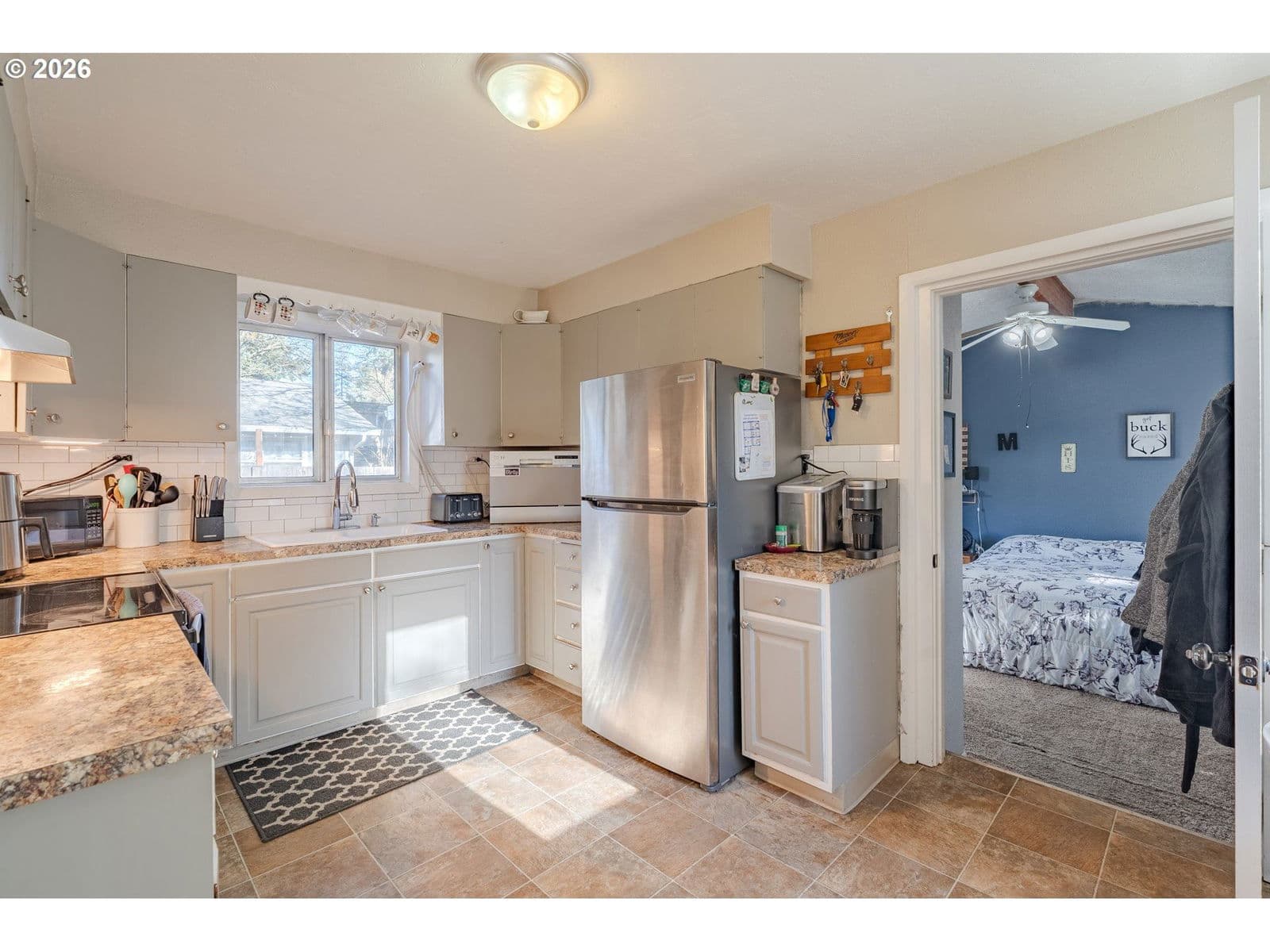 DOWNPAYMENT AND CLOSING COST HELP AVAILABLE! Welcome home! This 1,210-square-foot mid-century-inspired bungalow blends vintage character with modern comfort in a way that feels effortlessly cool. The spacious living room features a classic coved ceiling, sleek laminate flooring, and a statement brick fireplace with a wood stove insert - perfect for cozy nights in. The dining room adds subtle architectural interest with wainscoting and a coved ceiling, while the kitchen delivers everyday style with solid surface counters, a full tile backsplash, and stainless appliances. The vaulted owner’s suite feels light and airy with an exposed beam ceiling, a convenient laundry closet, and direct access to the patio. Brand-new ductless heating and cooling add year-round comfort and energy efficiency and a newer roof and complete house repipe will add additional peace of mind! Set on a generous corner lot, the fully fenced front and back yards offer space to garden, relax, or host friends, with a deck, covered patio, and large shed for added storage. Centrally located near Clark College, multiple parks, the VA Hospital, downtown, shopping, dining, and more, this home offers a smart blend of character, comfort, and city convenience.