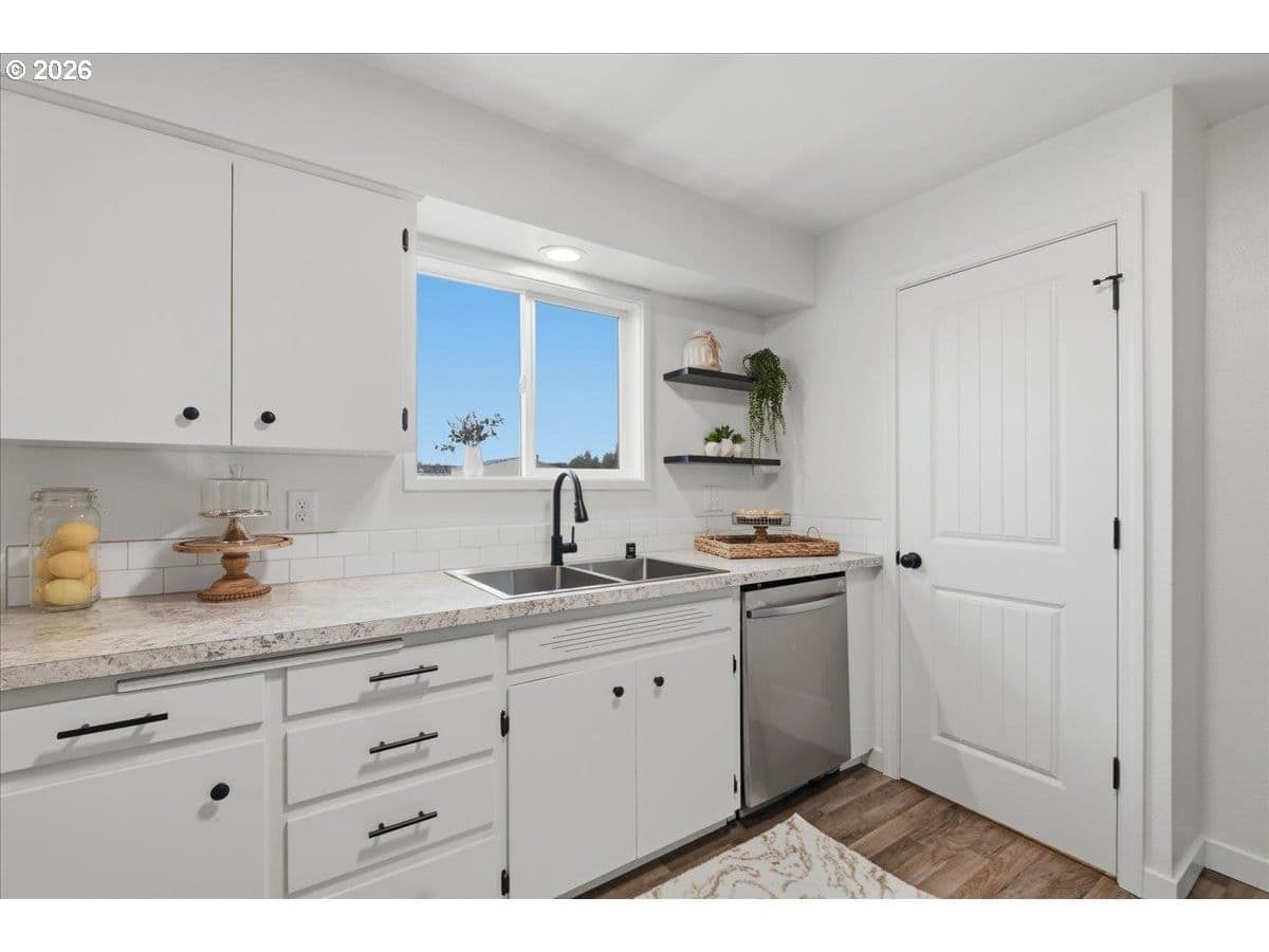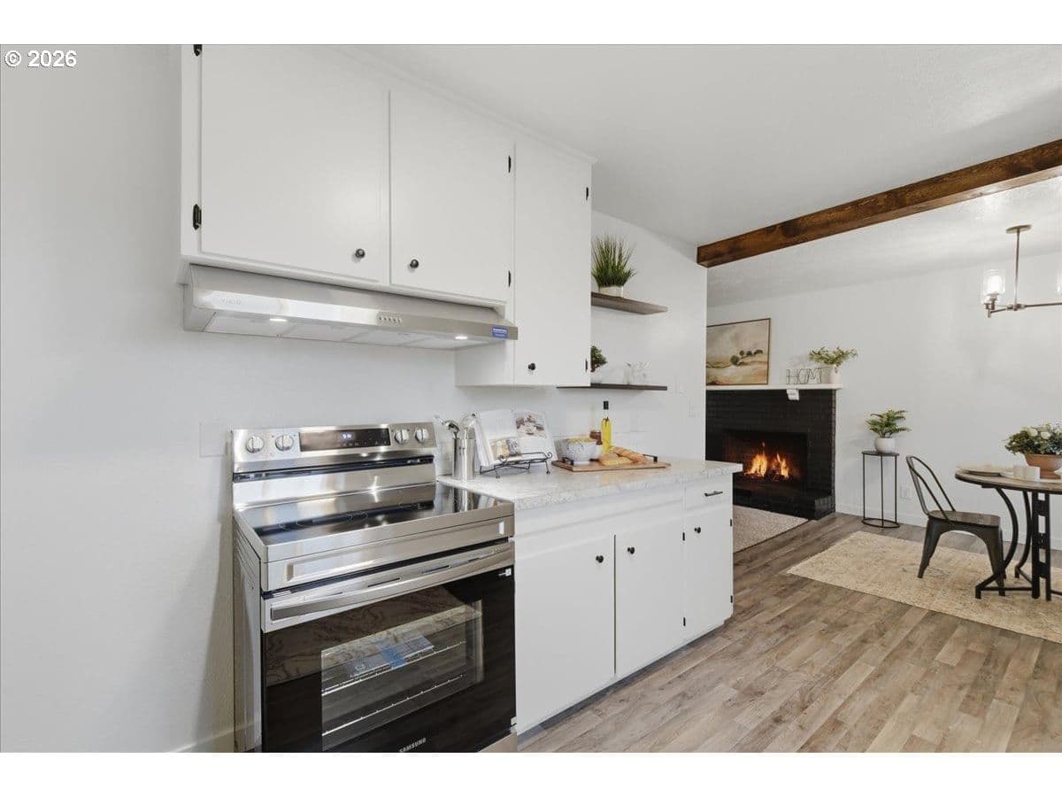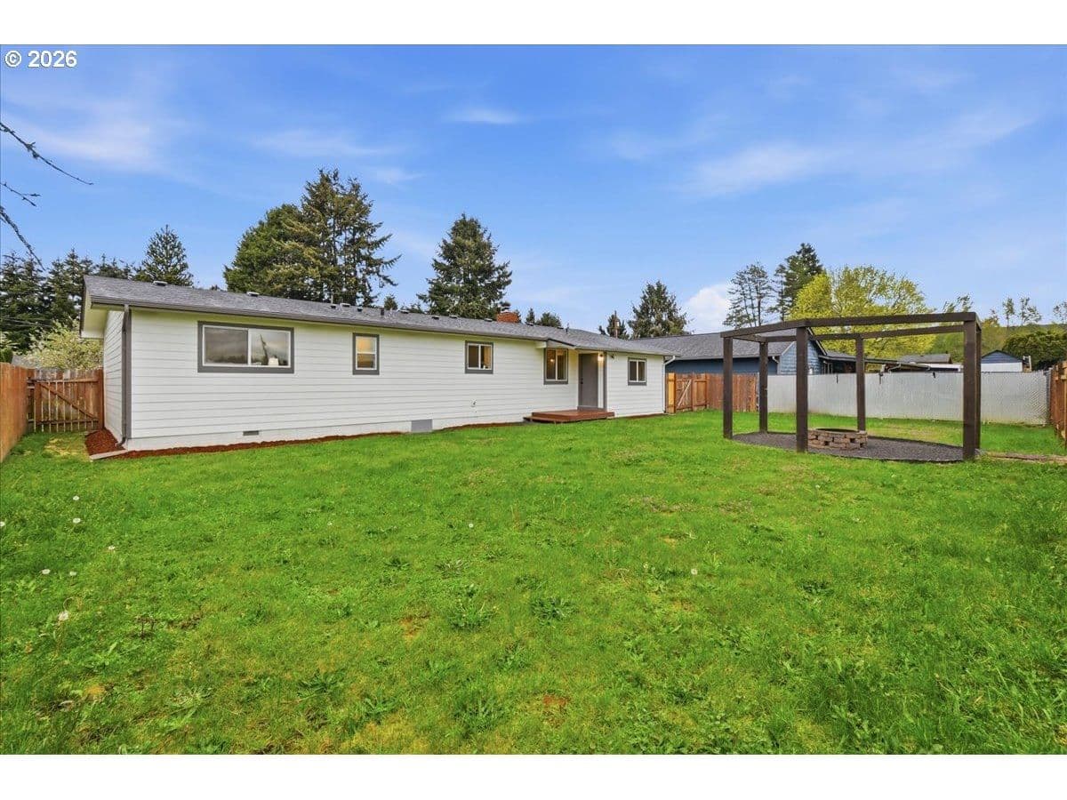 Completely remodeled single-level home offering 1,200 SF of stylish, move-in ready living. Bright and open living room features a classic brick wood-burning fireplace and abundant natural light. Updates include new luxury vinyl plank flooring, new carpet, fresh interior and exterior paint. The spacious remodeled kitchen showcases new stainless appliances, New counters, floating shelves, pantry, Updated bathrooms, Flexible bonus/utility room provides added functionality. Outside enjoy a large fenced yard with a fire pit ideal for entertaining or relaxing, all backing to a peaceful green space for added privacy. RV parking and a quiet dead-end street location just minutes to town! Must see!