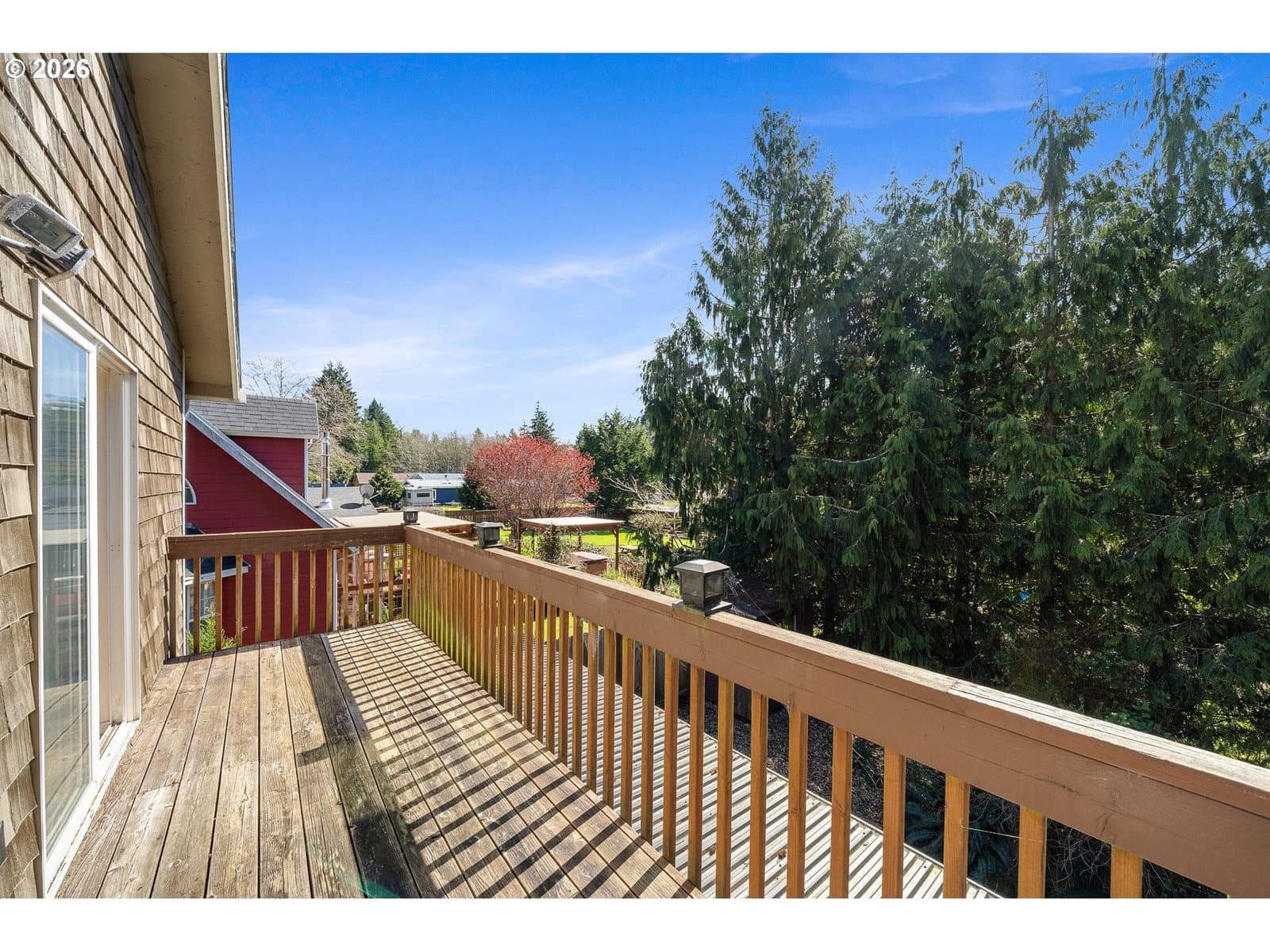 Modern Rustic Retreat at the End of the Road! Nestled at the end of a quiet, wooded lane in Bay City, this charming coastal retreat offers a warm and inviting escape. The heart of the home is an open-concept living area that flows naturally into the kitchen and dining space, where a glass door leads out to a covered patio—perfect for listening to the rain with a hot cup of coffee or dining alfresco amidst the enchanting backyard greenery. Upstairs, two sun-drenched bedrooms and two full baths provide a peaceful sanctuary, including a primary suite with its own private deck for quiet moments under the trees. New carpet on the stairs and new laminate flooring. Perfectly situated near the bay and local shops yet tucked away for ultimate privacy, this freshly updated gem is a true "end-of-the-road" find for those seeking a tranquil, move-in-ready lifestyle on the Oregon Coast. Come take a look!