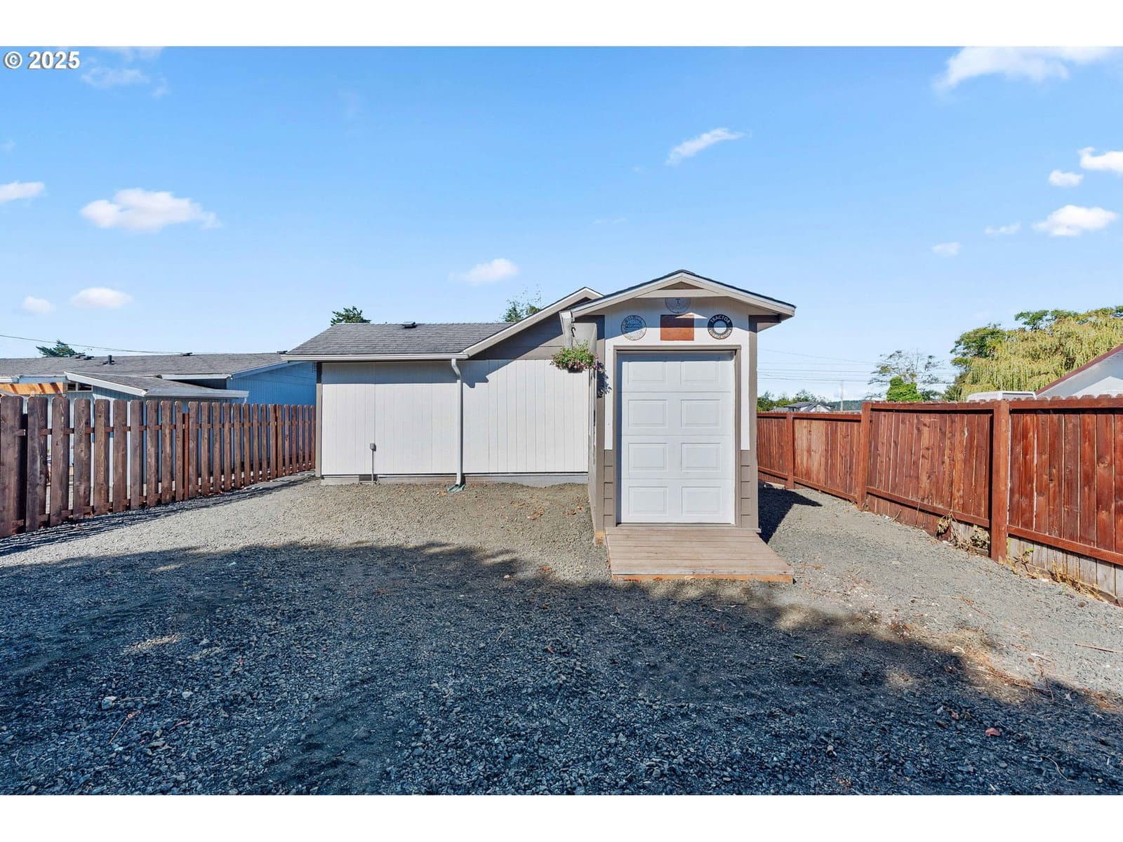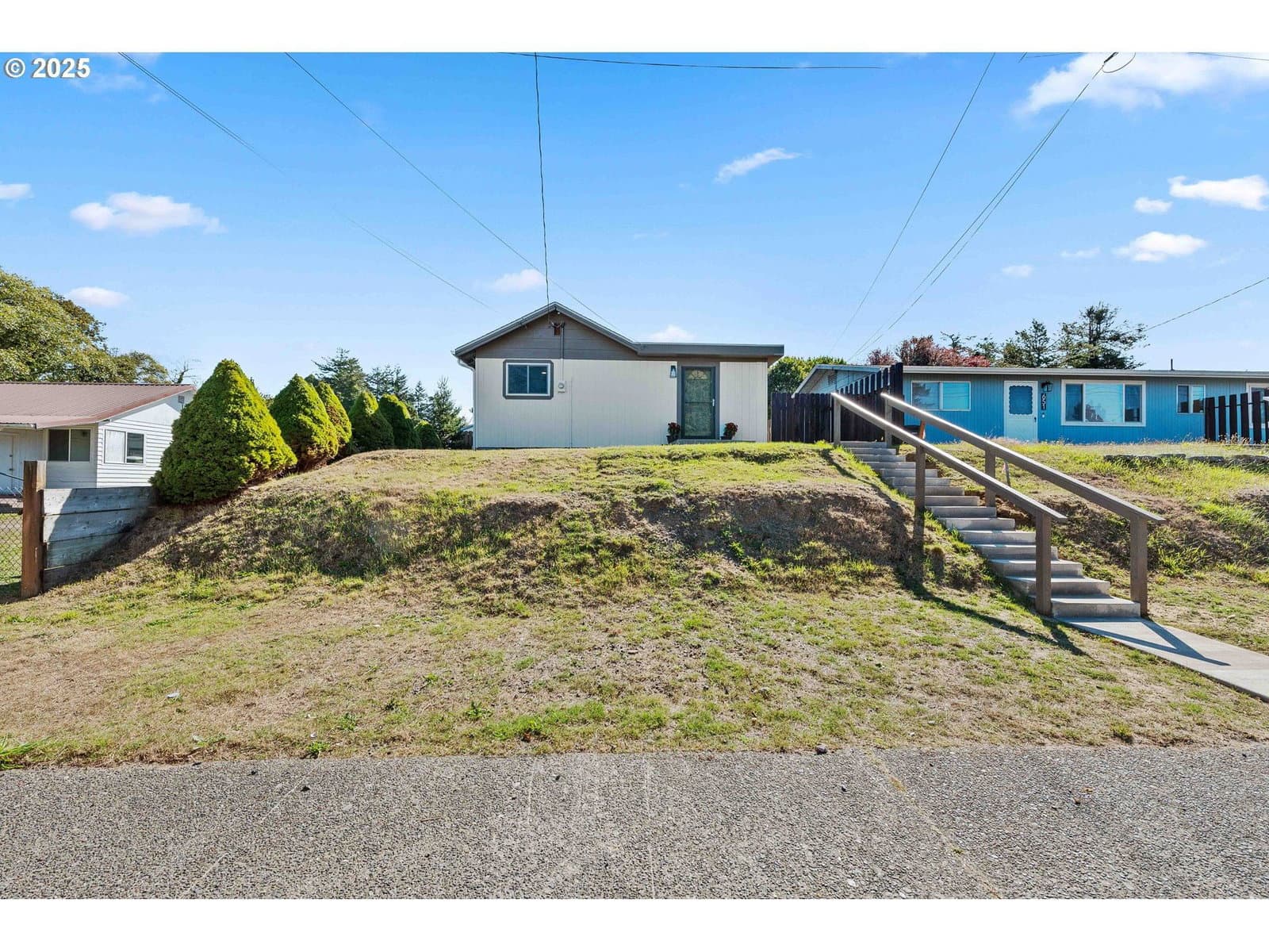 Welcome to this carefully updated three-bedroom home, blending fresh style with everyday comfort in Coos Bay. The open kitchen is beautifully redone with tile backsplash, modern finishes, and new stainless steel appliances. The home is complemented by new flooring, carpet, paint, and lighting throughout. Large windows and top of the hill location bring in plenty of natural light, and from the kitchen you’ll even catch a peek of the bay. The spacious updated bathroom has a double vanity and laundry hookups. The exterior has its own features, with on street-parking in front and gated parking in back via alley access with a storage shed and small garage featuring an automatic roll-up door. All of this only minutes from the area's restaurants, coffee shops, and local amenities. A short drive to numerous beaches and trails, and even the airport for quick regional connections. With the work already done, this home is move-in ready! Come take a look at this bright, practical space in a convenient spot on the Oregon Coast.