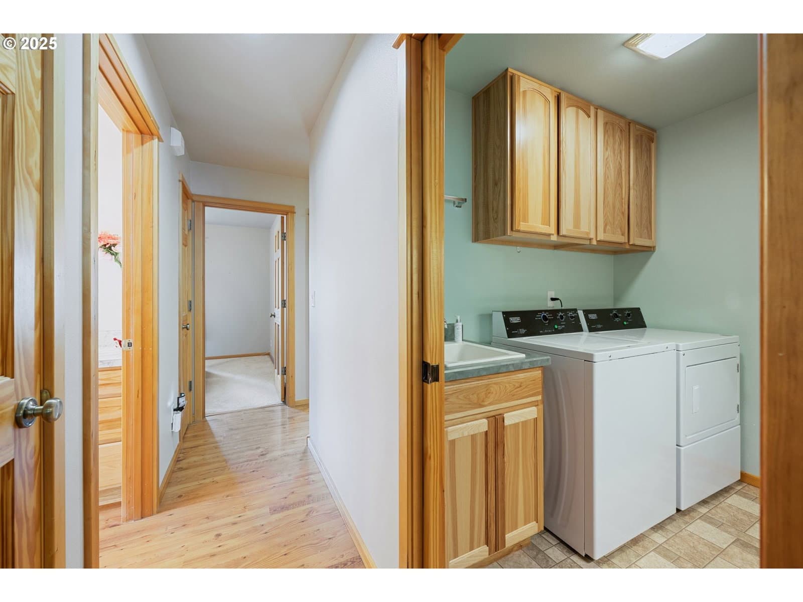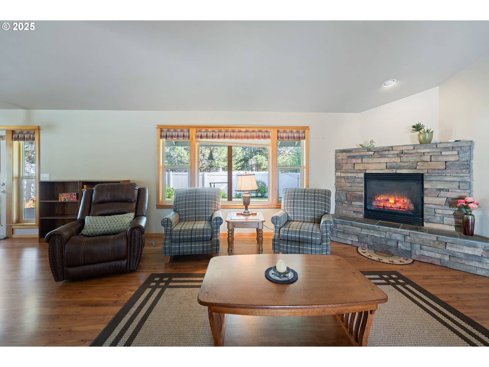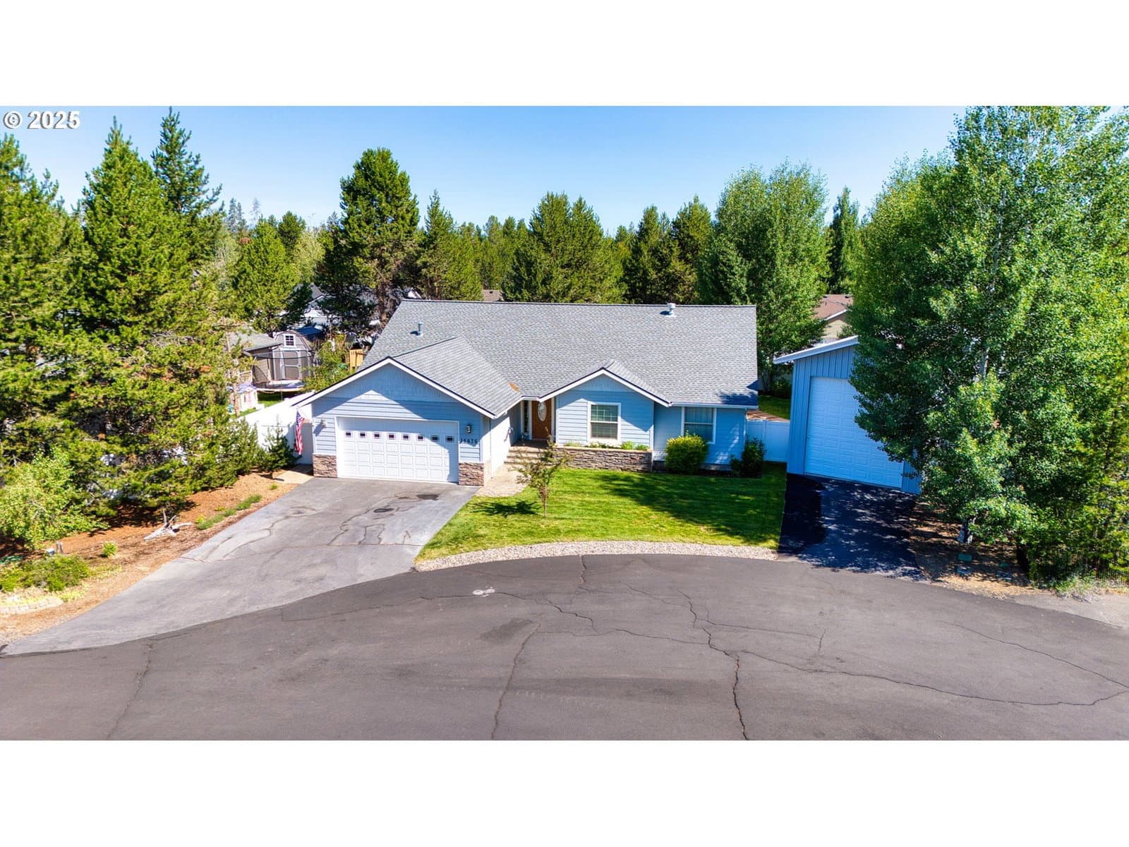 Charming Custom Perry Walters home in La Pine City Limits! Welcome to this rare & beautifully maintained spacious 3 bedroom home w/attached garage & 35 ft Shop perfectly situated within La Pine. Offering exceptional comfort & thoughtful upgrades. The exterior boasts fresh exterior paint with new porch & handrails. Inside you will discover an inviting layout. Throughout the home you'll find laminate flooring with carpeting in each spacious bedroom. The heart of the home is in the kitchen designed for convenience. Enjoy a never been used Maytag refrigerator and stove, sparkling backsplash and ample cabinetry with some pull out shelves for easy access. Pantry offers abundant storage. Gas Fireplace in the Living Room help keep you warm on cold winter nights! All 3 bedrooms are generously sized, featuring large closets. The primary suite offers a walk-in closet outfitted with shelves & private door to covered back deck. Linen closed in hallway & solid wood doors throughout. Step out to a nicely landscaped, fenced yard that offers both privacy & tranquility. Walkway leads directly to the shop. Shop has electric, cement floor & automatic garage door opener. Perfect for hobbies, extra storage or even a small workshop.