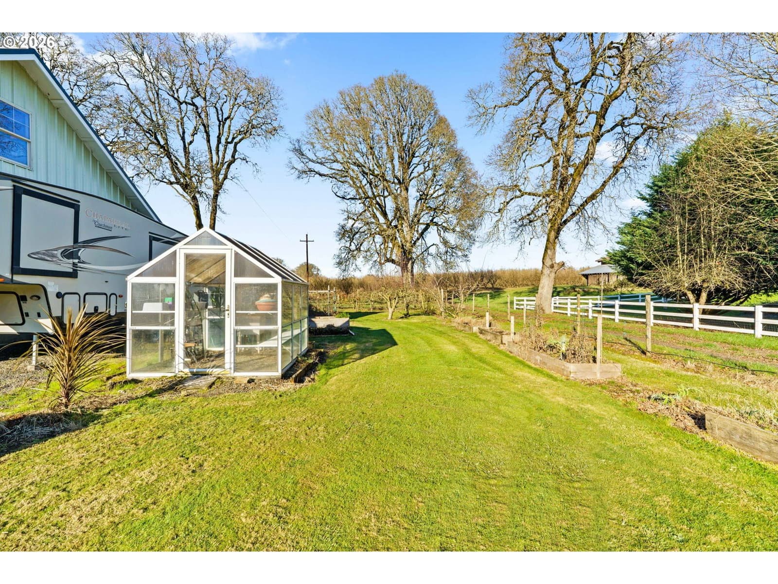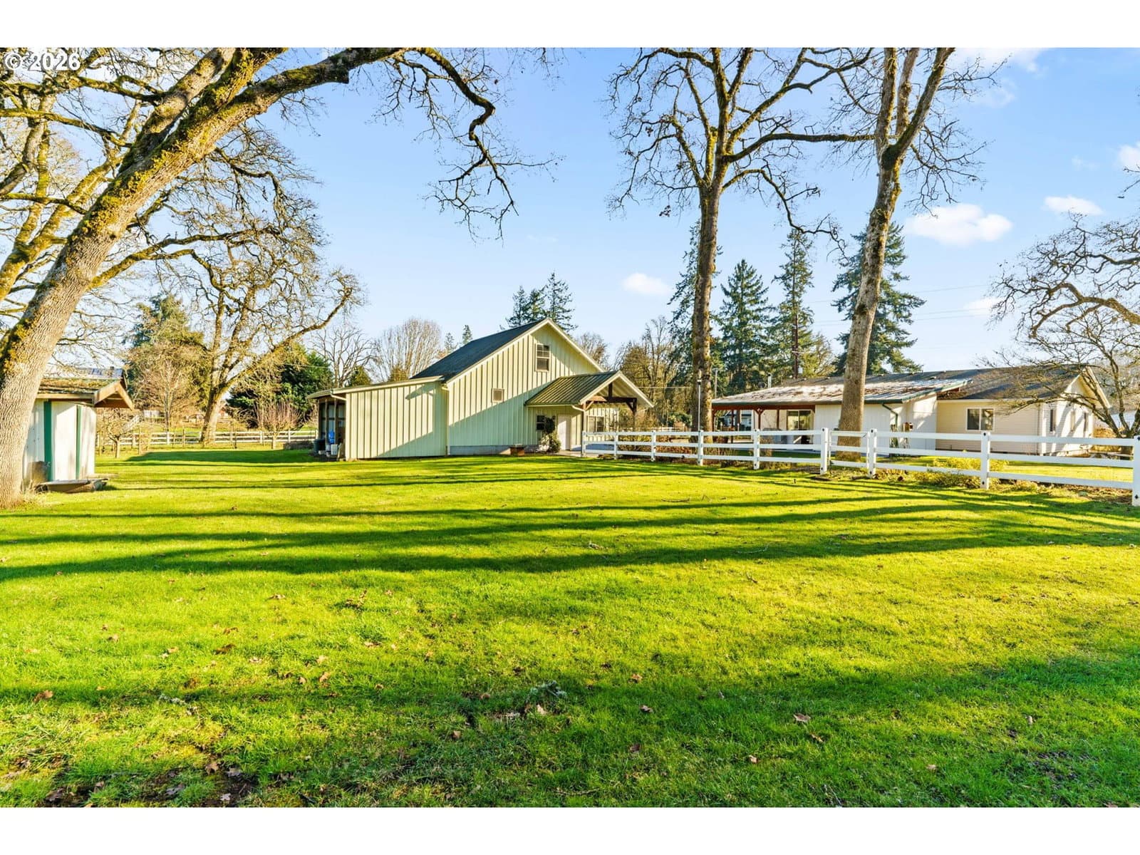 Welcome to 28779 Jager Ln, a meticulously maintained residence on a pristine one-acre parcel in rural Junction City's coveted farm country. This exceptional property offers the perfect blend of country tranquility and modern convenience, surrounded by picturesque orchards and distinguished neighboring homes. Properties here rarely become available, making this a truly unique opportunity to secure your place in one of Oregon's most desirable communities. The thoughtfully designed 3-bedroom, 2-bathroom home features both a welcoming living room and comfortable family room, providing versatile spaces for entertaining and everyday living. The attached 2-car garage offers convenient access while the expansive covered patio creates an ideal outdoor retreat for year-round enjoyment. The detached shop has been transformed into a functional workspace complete with a finished office area and full bathroom, plus additional finished storage on the upper level, perfect for hobbies, projects, or a home-based business. The property includes a greenhouse for gardening enthusiasts and established raised garden beds for cultivating fresh produce. With generous parking accommodating RVs, boats, and multiple vehicles, this property seamlessly blends comfortable living with practical amenities. The 1 acre property provides spaciousness and privacy while remaining manageable, with room for children and pets to play freely. The Junction City location offers genuine country living with convenient access to Eugene's amenities. Don't miss this rare chance to own a well-cared-for home in a location where opportunities like this seldom arise. Every detail reflects pride of ownership and commitment to excellence, delivering a turnkey property where you can simply move in and start enjoying everything this remarkable home has to offer.